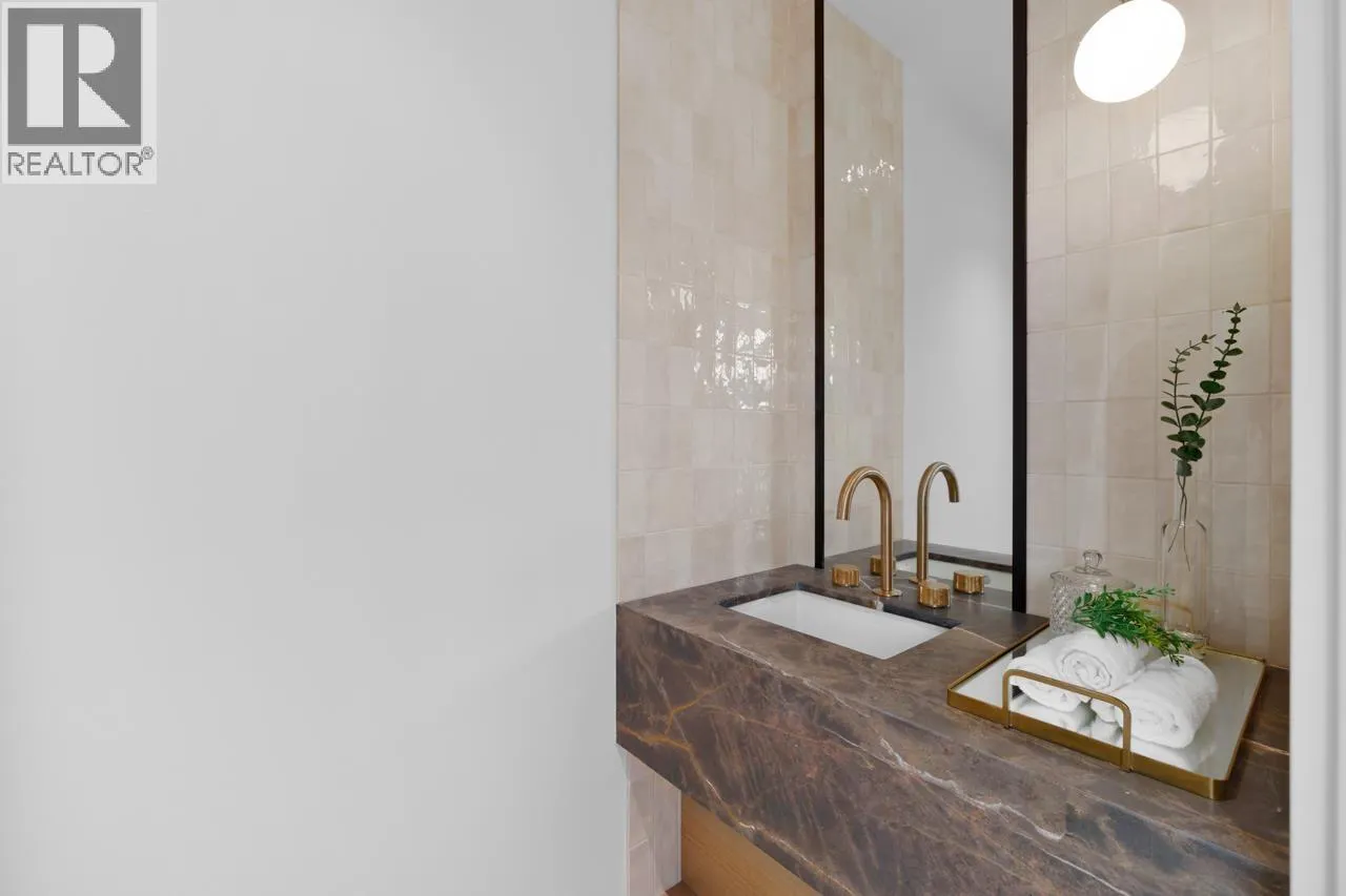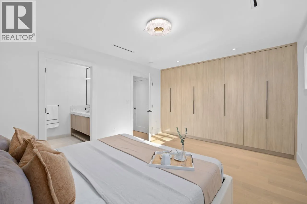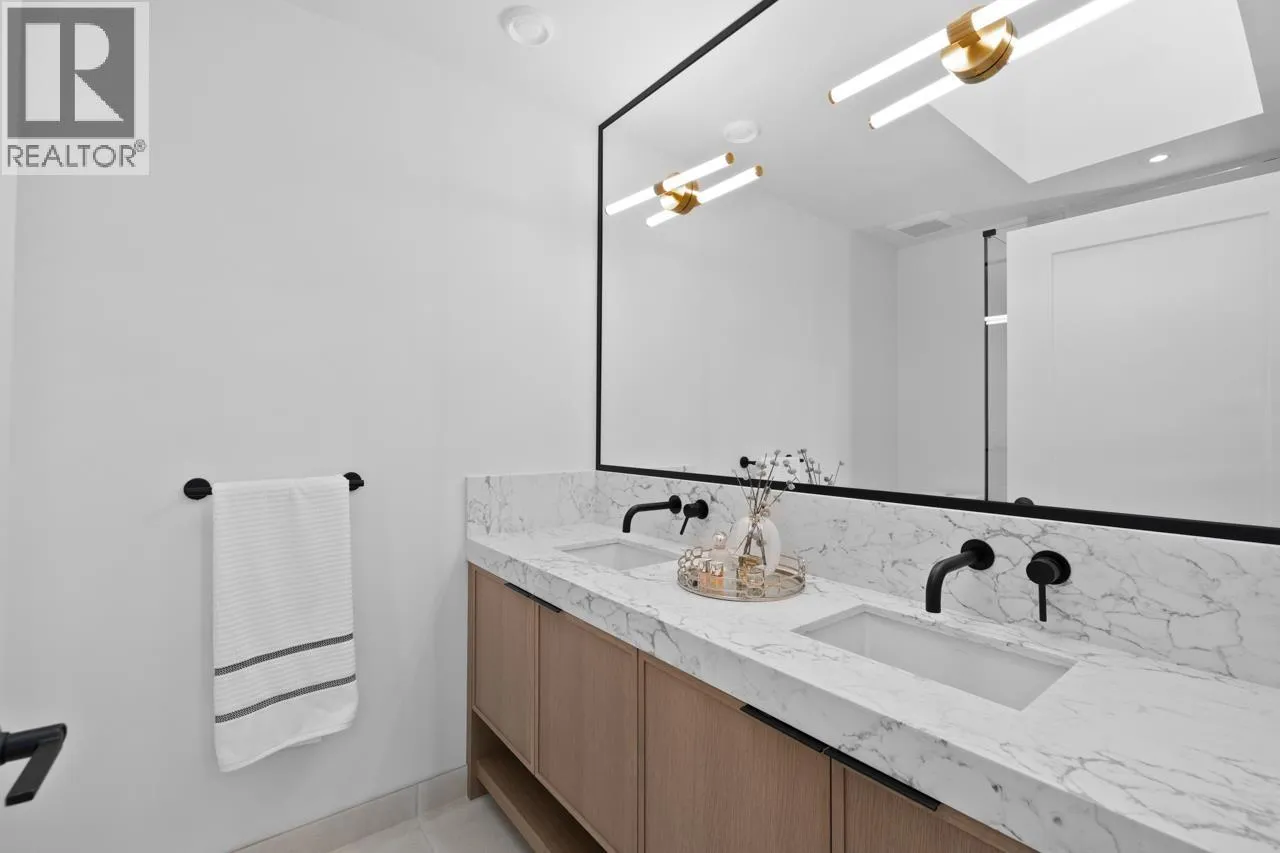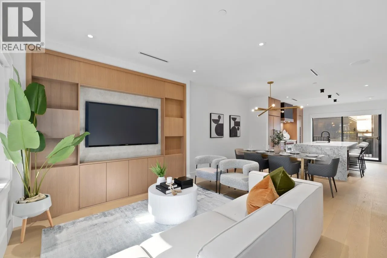 "The Heights" by Crossmark Projects offers this 3-bed+Den, 3.5-bath residence spanning 3 thoughtfully designed levels. The main floor boasts a spacious living room, a dining area perfect for family gatherings, and a gourmet kitchen with a 4'x10' island, custom oak cabinetry, integrated Sub-Zero fridge, Wolf 6-burner stove, and a large pantry. The upper level is a family retreat with 3 beds+ a primary suite with hotel-inspired ensuite. The versatile lower level includes a cozy theater/rec room, bedroom/office, and flexible gym space and exterior entry. Enjoy large front and back yards, parking, ample storage, and unbeatable walkability to all of Kerrisdale's amenities. Open House Nov 15th/16th Sat/Sun 2-4pm (id:27476)