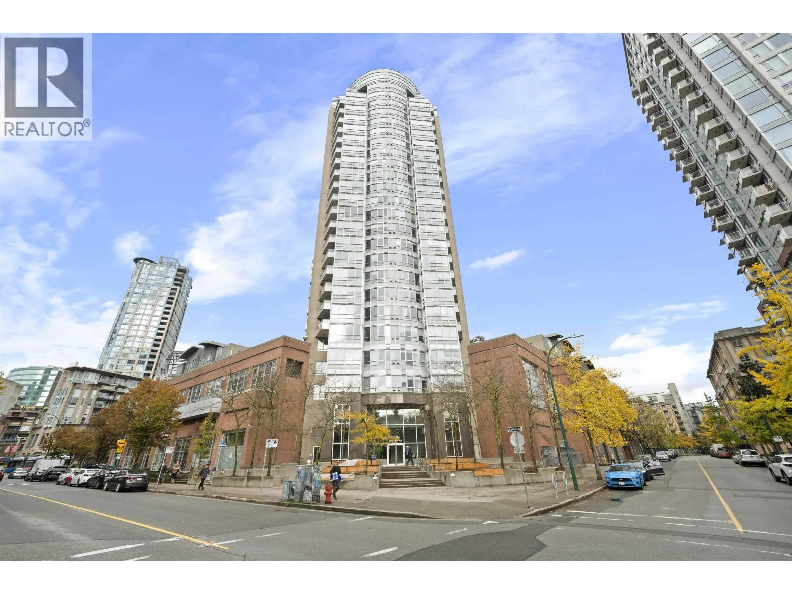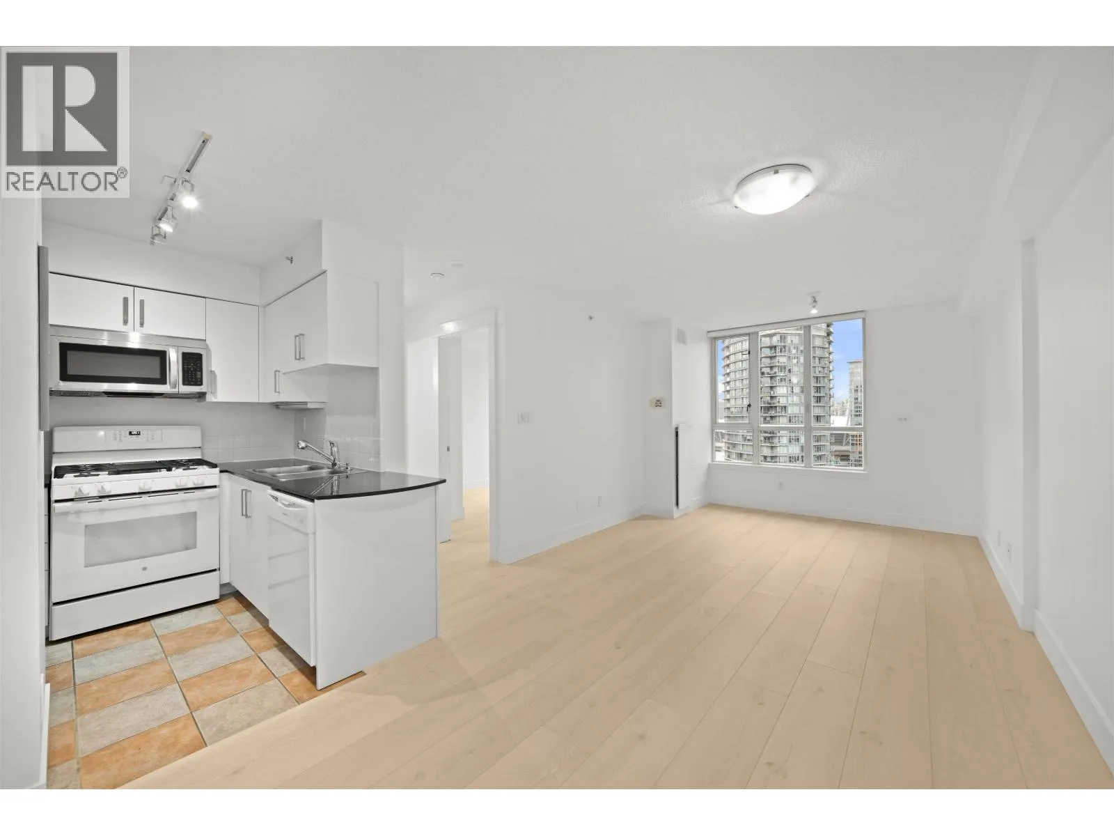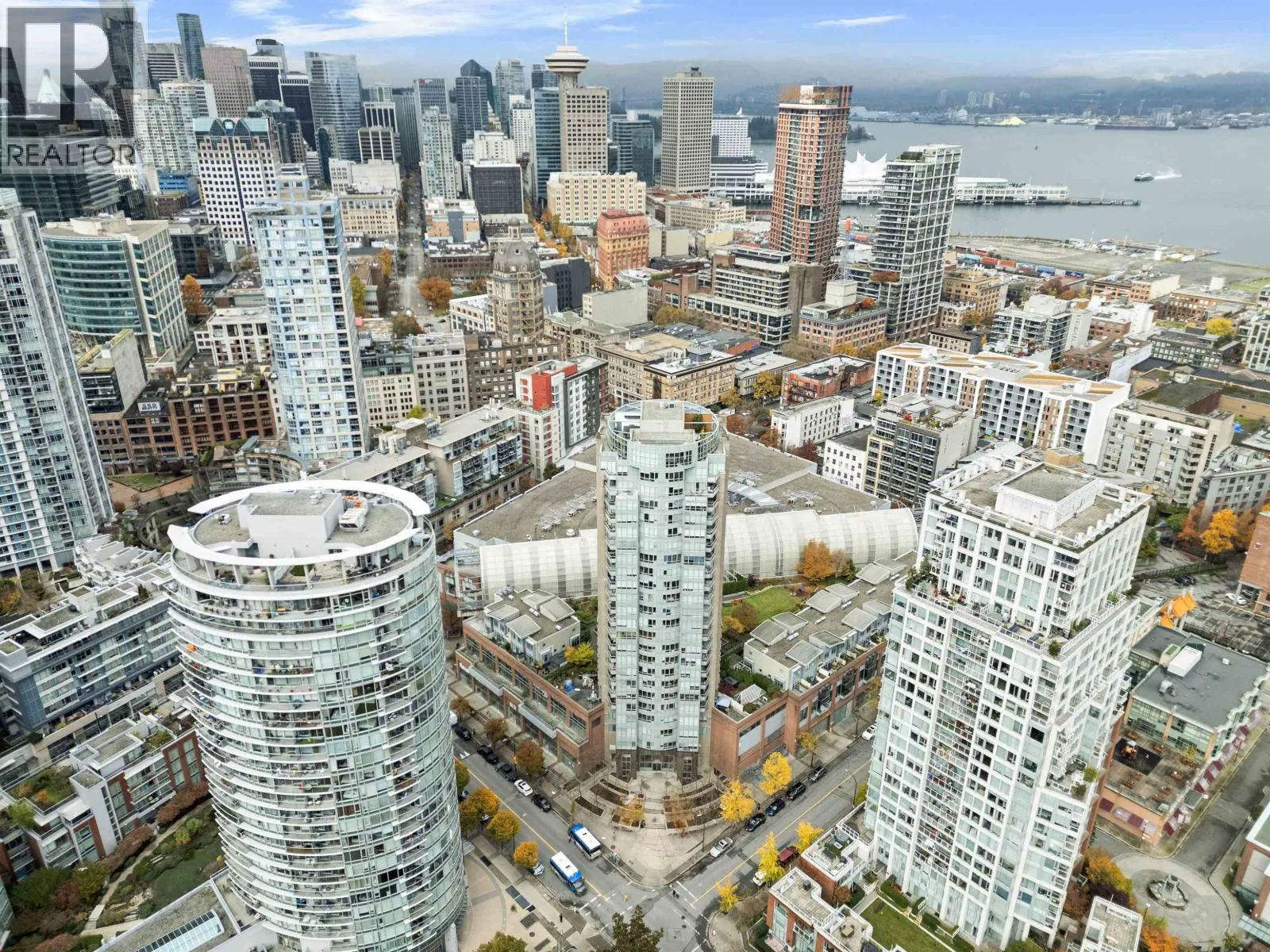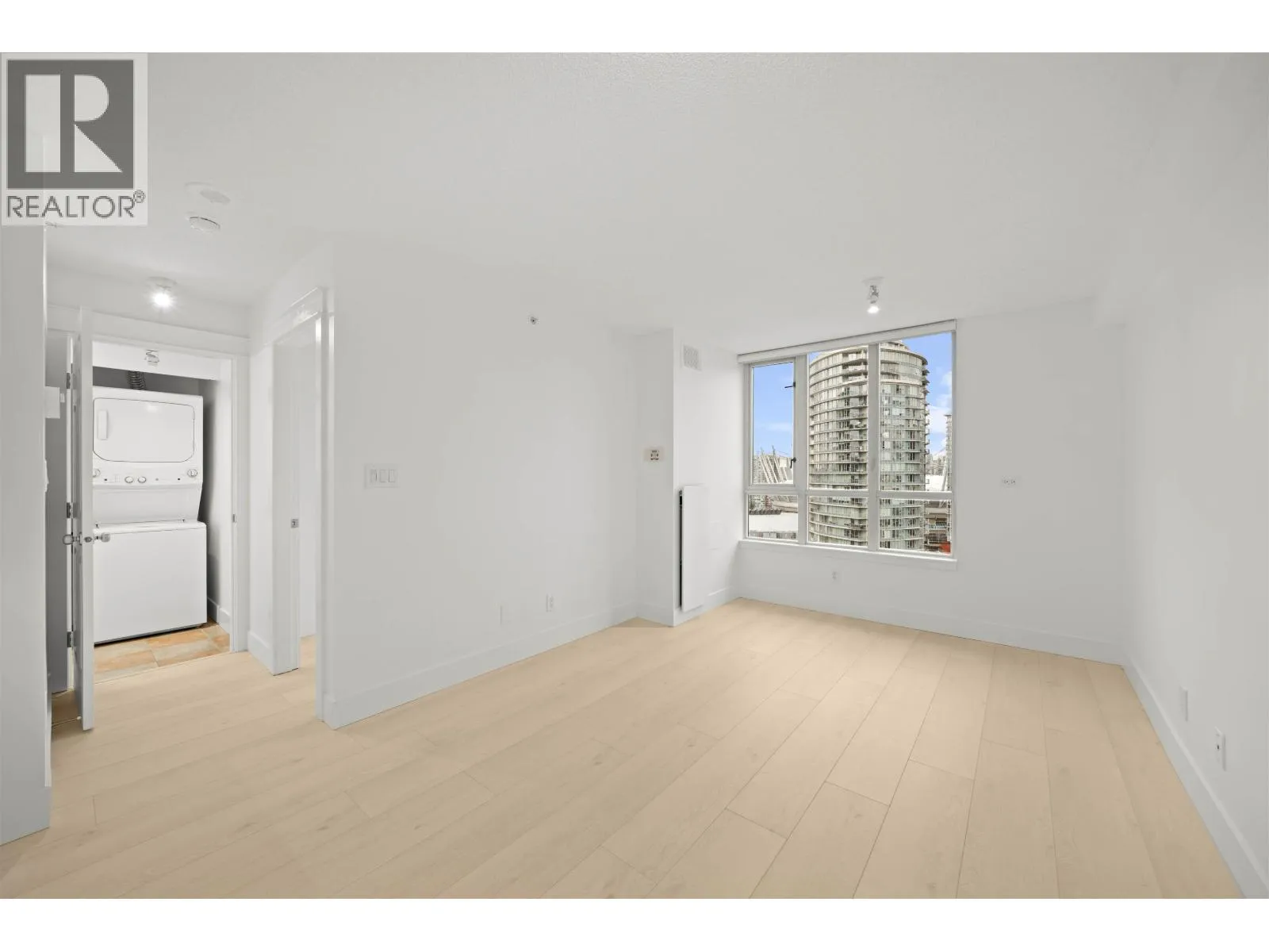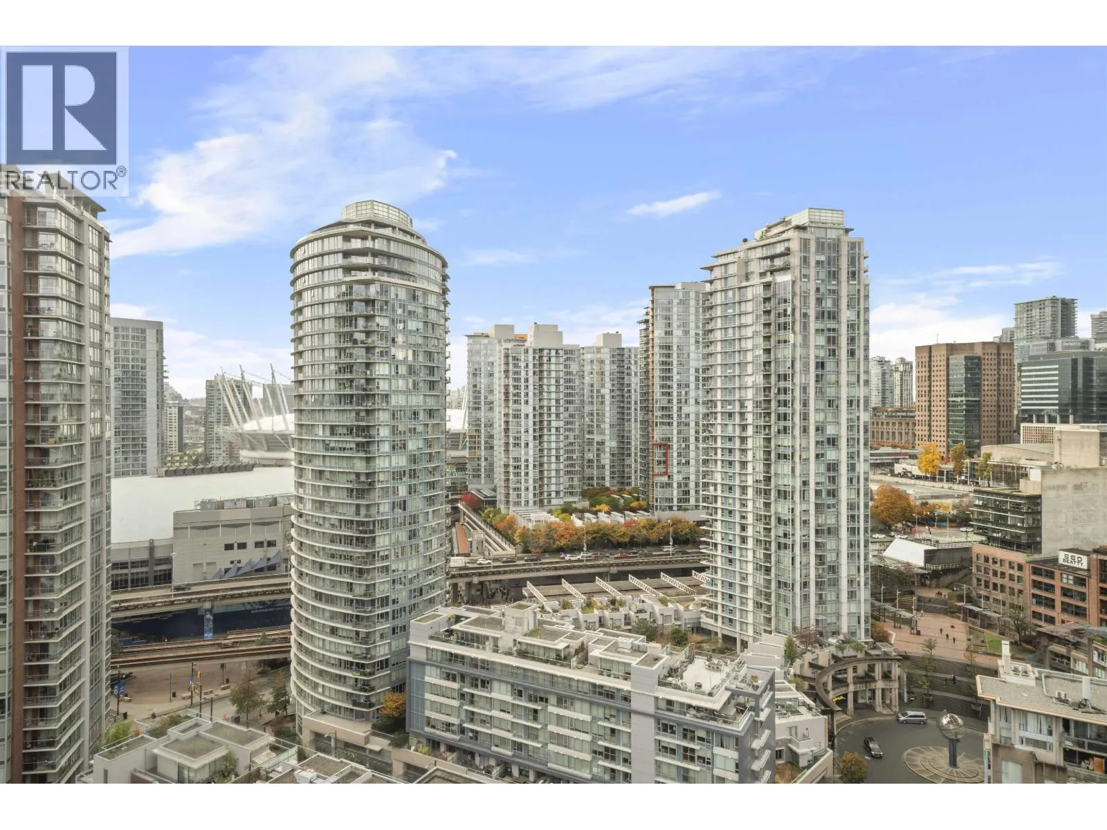Recently renovated and ideally situated near the top floor, this elegant suite offers stunning Southwest-facing water views in Downtown. Updates include new flooring, modern blinds, and fresh paint throughout. The sleek kitchen features brand new, high-quality appliances-oven, microwave, fridge/freezer, dishwasher-plus new cabinetry and quartz countertops. The bathroom showcases a new vanity, bathtub, and tiles. Additional highlights include brand new in-suite laundry, a gas stove, central A/C, secure parking, and a storage locker. Conveniently located near Stadium Station, Rogers Arena, shops, restaurants, and fitness options. Residents enjoy premium amenities including a shared workspace, pool, jacuzzi, sauna, and gym. Schedule your private viewing today! (id:27476)