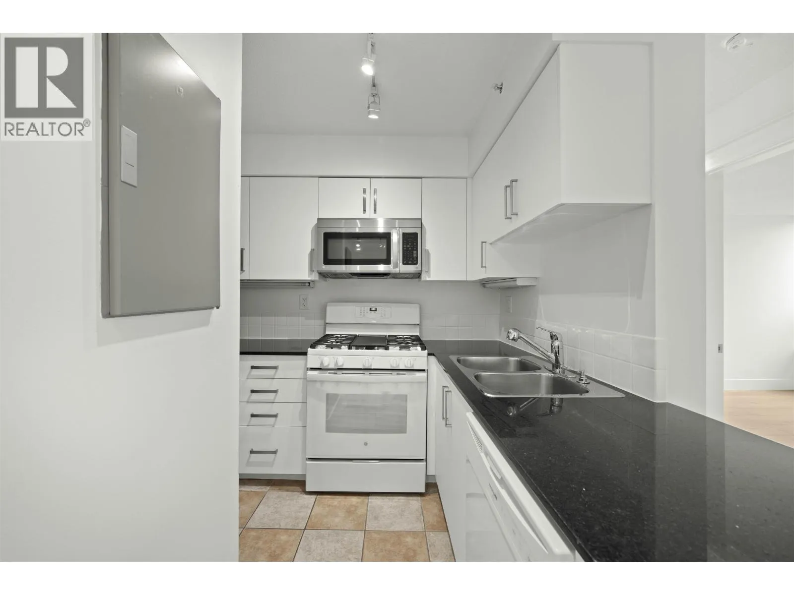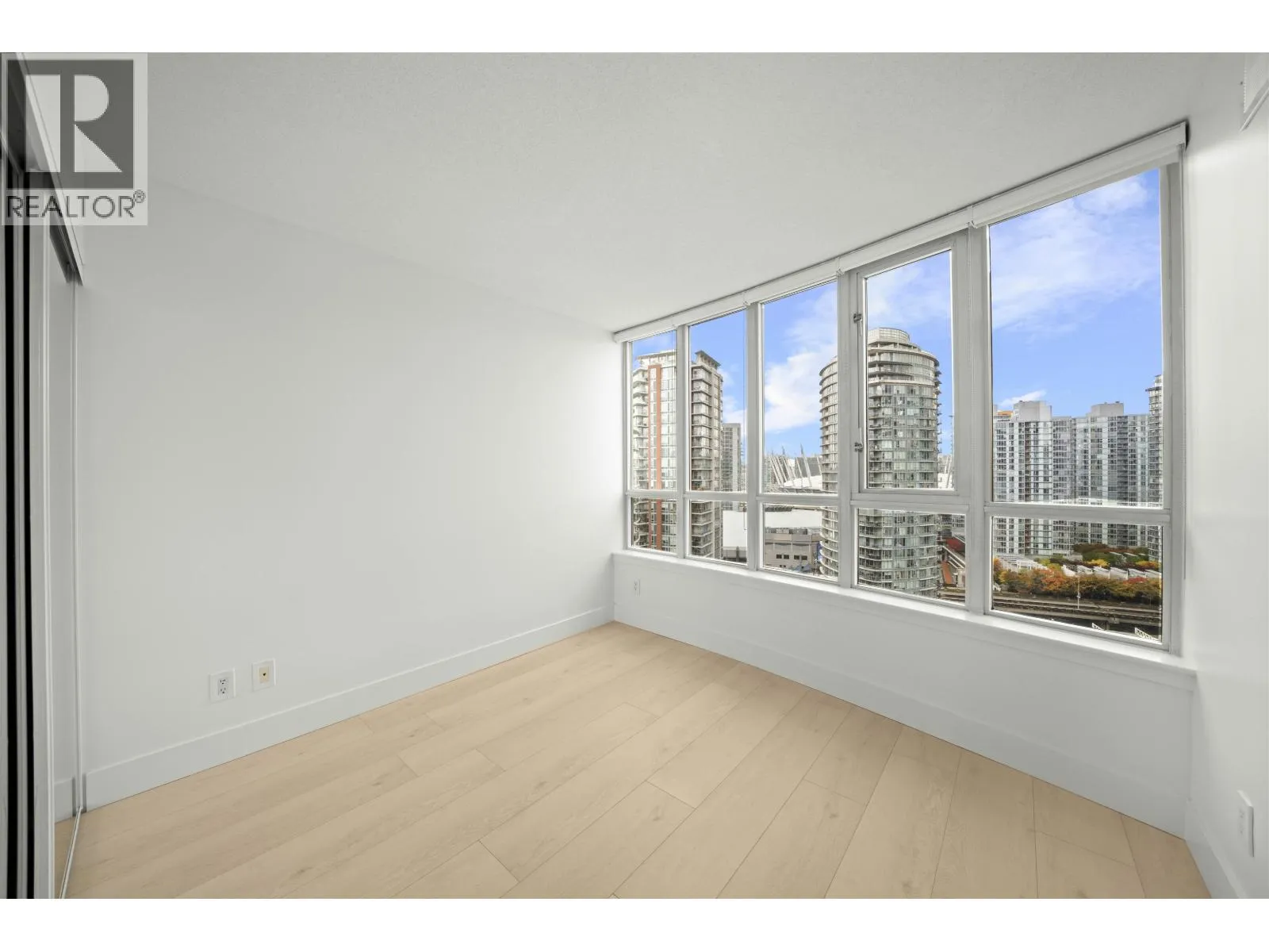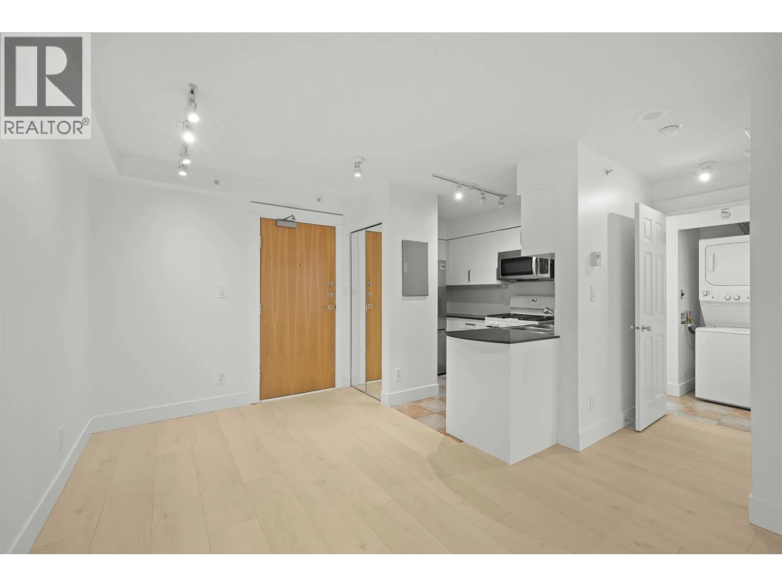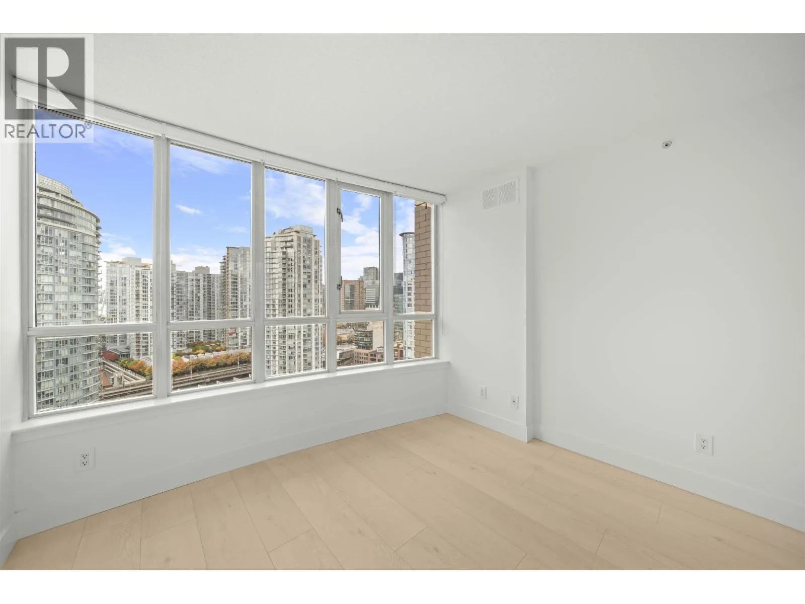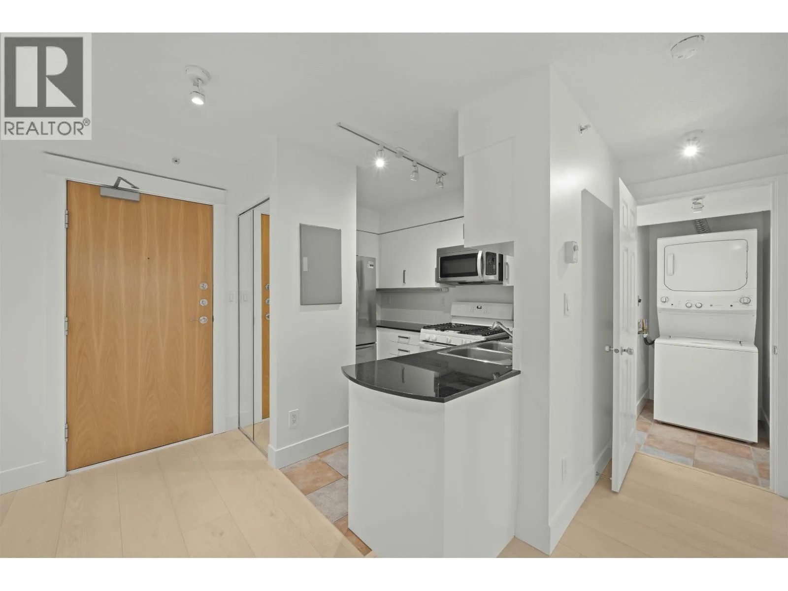 Recently renovated and ideally situated near the top floor, this elegant suite offers stunning Southwest-facing water views in Downtown. Updates include new flooring, modern blinds, and fresh paint throughout. The sleek kitchen features brand new, high-quality appliances-oven, microwave, fridge/freezer, dishwasher-plus new cabinetry and quartz countertops. The bathroom showcases a new vanity, bathtub, and tiles. Additional highlights include brand new in-suite laundry, a gas stove, central A/C, secure parking, and a storage locker. Conveniently located near Stadium Station, Rogers Arena, shops, restaurants, and fitness options. Residents enjoy premium amenities including a shared workspace, pool, jacuzzi, sauna, and gym. Schedule your private viewing today! (id:27476)