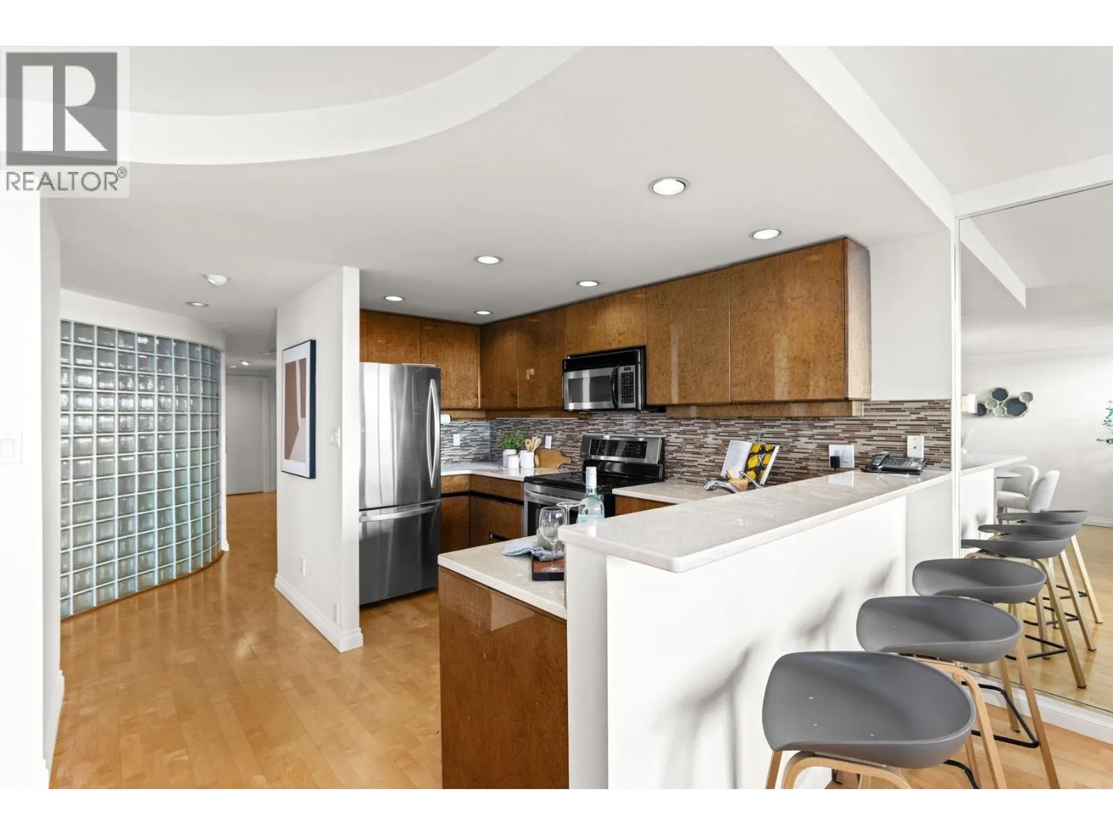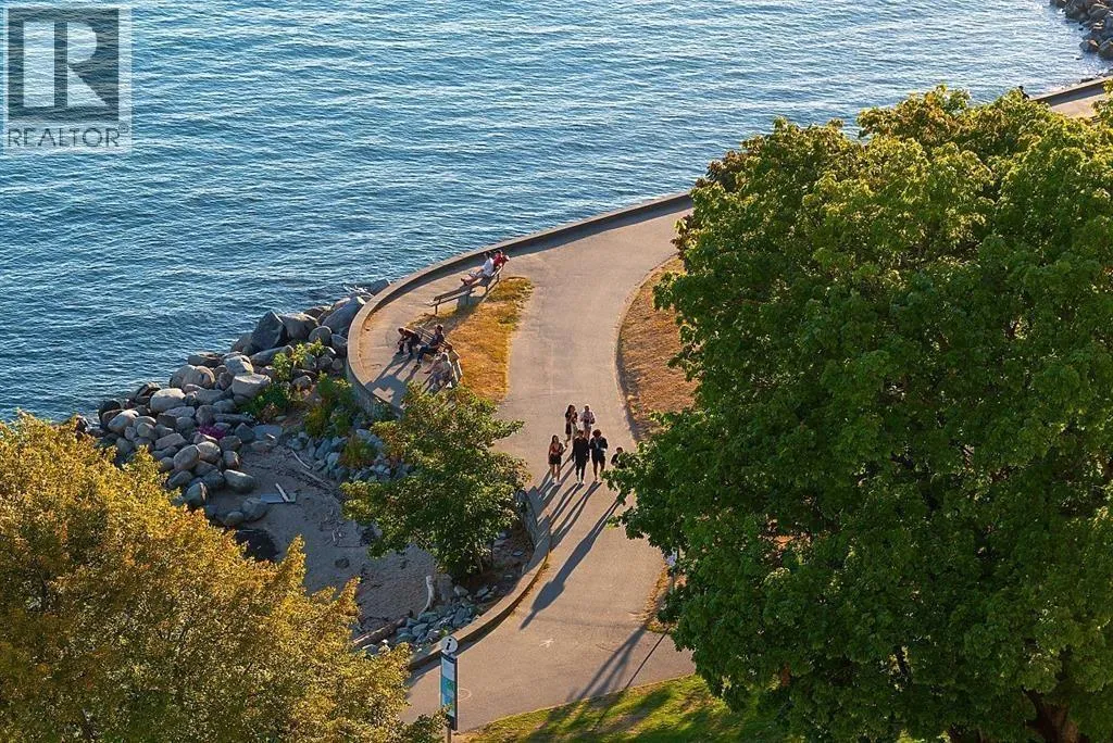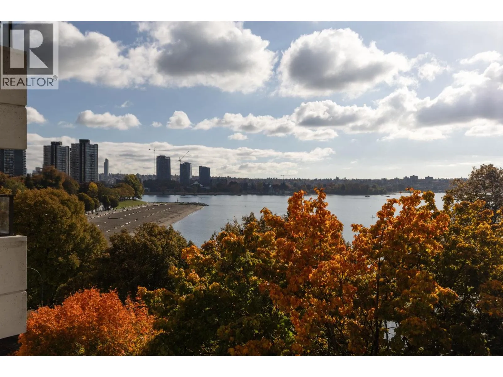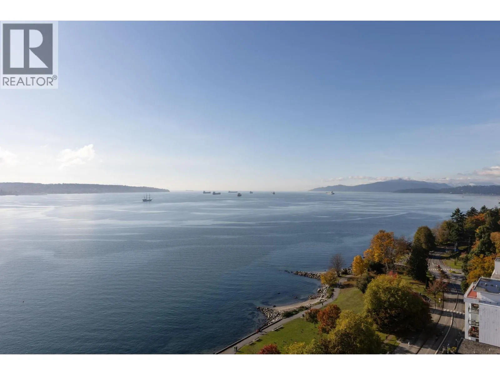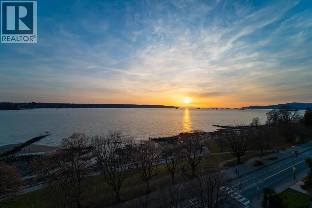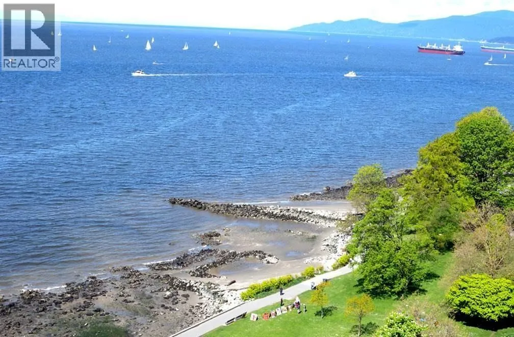 VIEW! VIEW! VIEW! Beach Ave. All views of ocean & two view balconies at prestigious Huntington West. Highest quality refinishing, 2 parking, urban sophistication at its best. West of Denman, ideal location steps to Stanley Park & Seawall. Amazing sunsets. Rock solid construction. In suite laundry & open kitchen. This concrete complex has a solid reputation for quality in the West End. The building has good management and has always taken care of all major issues. Features include: a stunning 360 degree oceanfront rooftop deck & supersized whirlpool & exercise area. Live the good life of English Bay & the coffee shops of Denman Street. Hurry! This one won't last. (id:27476)