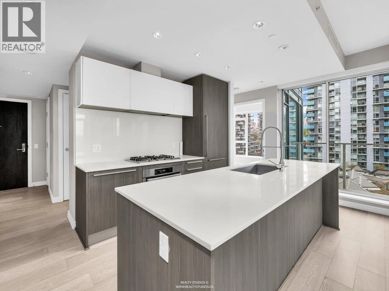 Welcome to ALEXANDRA where contemporary architecture meets modern living at the foot of English Bay! One of the most sought after buildings in downtown by Concord Pacific - GOLD LEED certified tower designed by the Henriquez Partners. Convenient location steps from the beach, restaurants, cafes, entertainment, Stanley Park, 22 km of seawall, transit, a dream place to live! This one-of-a-kind 2 bed plus den, 2 bath corner unit features ocean view, open concept layout with 9' ceilings with floor-to-ceiling windows, 205 sf wraparound balcony, engineered hardwood floors, in-suite laundry, central AC, marble-tiled bathrooms, quartz countertops & Miele appl. Enjoy exclusive private lounge with kitchen, ocean-view terrace, fitness centre, meeting room, garden plots & grand lobby with concierge. (id:27476)