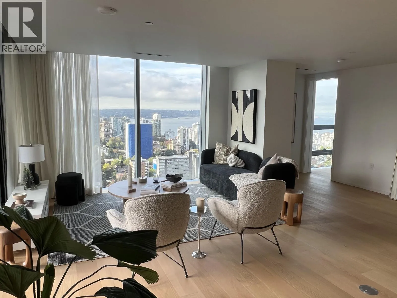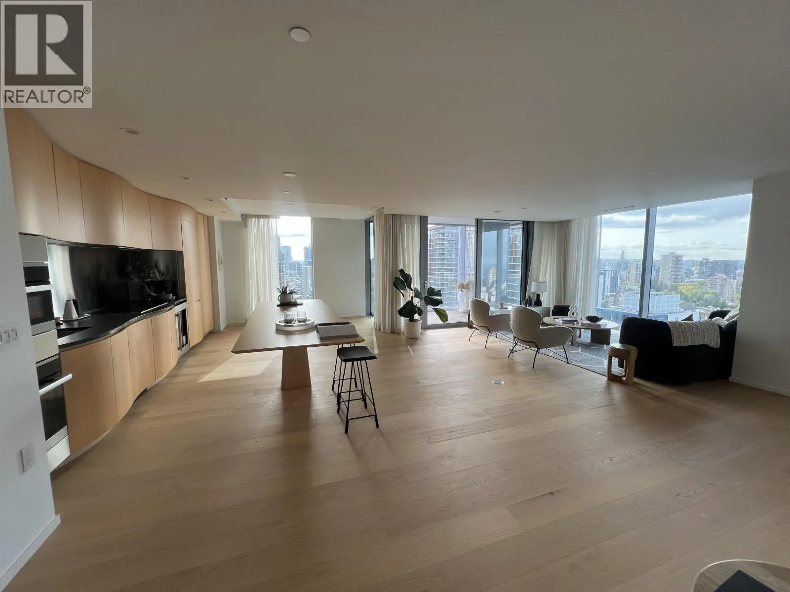 Welcome to the newest standard of Vancouver luxury: Alberni by Kengo Kuma.Imagine living in this spectacular 3 bdrm suite, where every detail has been meticulously crafted. Encompassing 2,066 sqft of refined interiors and an expansive 520+ sqft of private balcony space, this residence offers truly breathtaking, panoramic vistas spanning English Bay, Stanley Park, and the majestic North Shore mountains. Inside, the exquisite design features continue with curved wood walls, a signature of Kuma's aesthetic, complemented by top-of-the-line Miele appliances and sophisticated stone countertops.The amenities redefine opulence, including a serene Japanese moss garden, a 25-meter swimming pool, an exclusive wine room,gym,music room,fitness center,indoor pool.Included are 1 parking spot and 1 locker (id:27476)