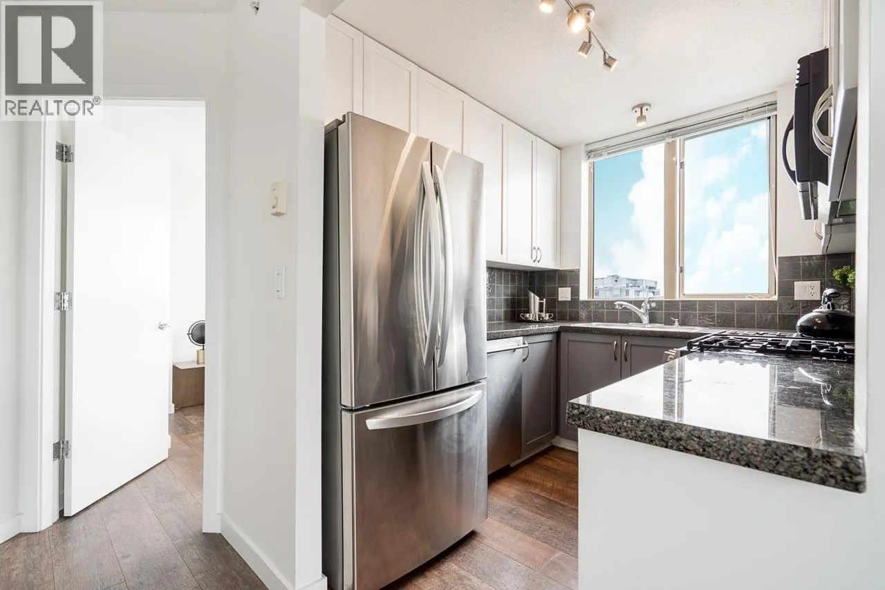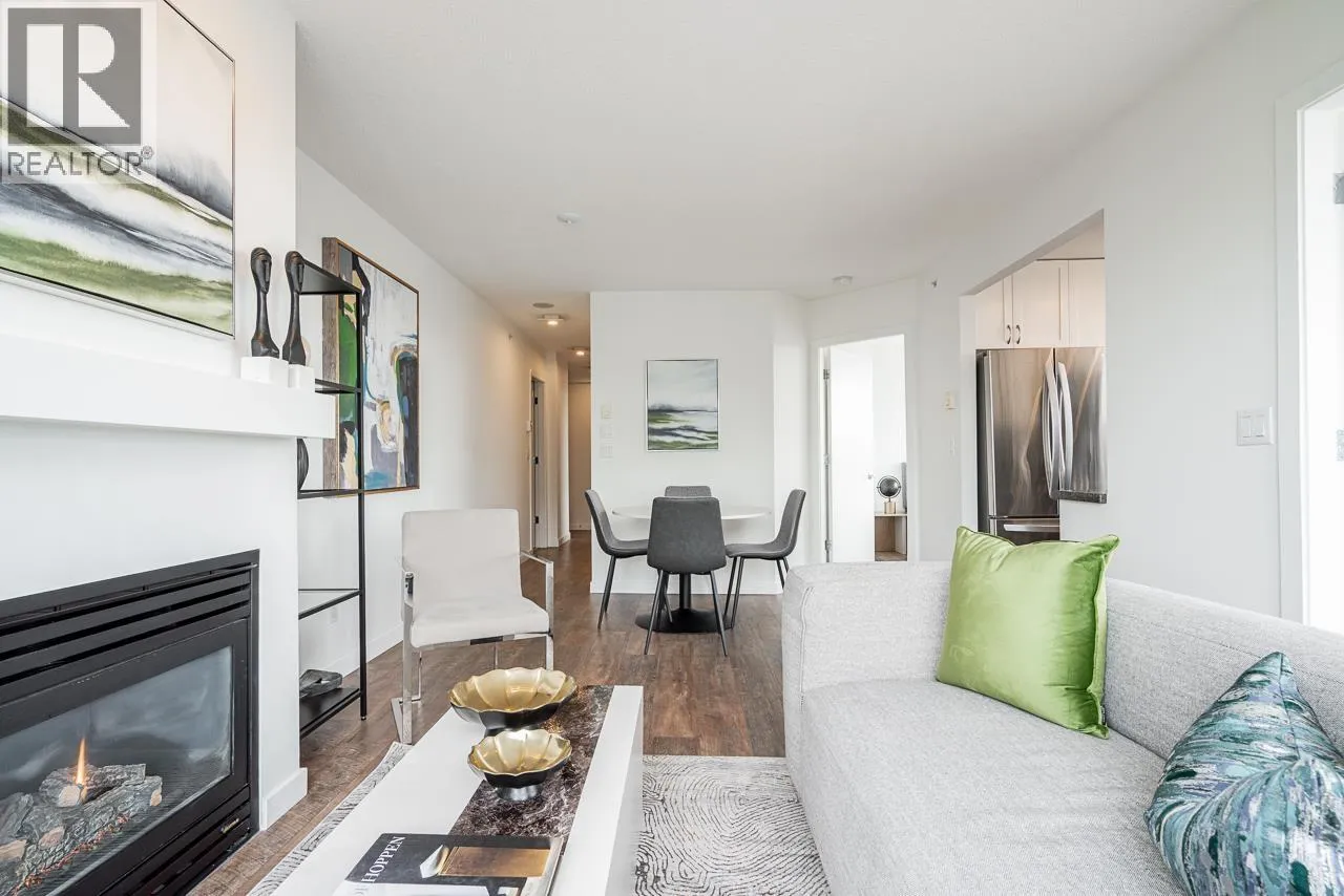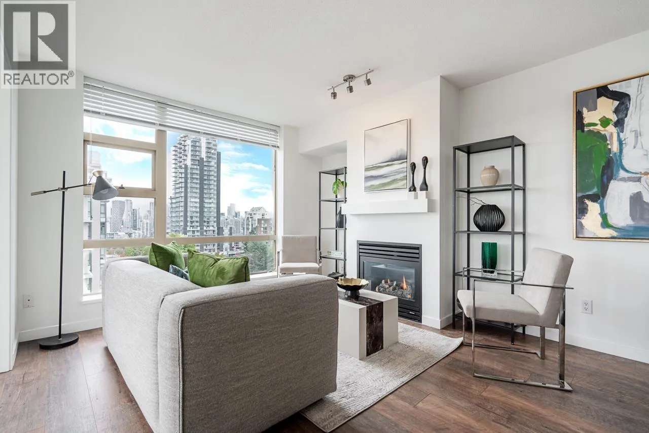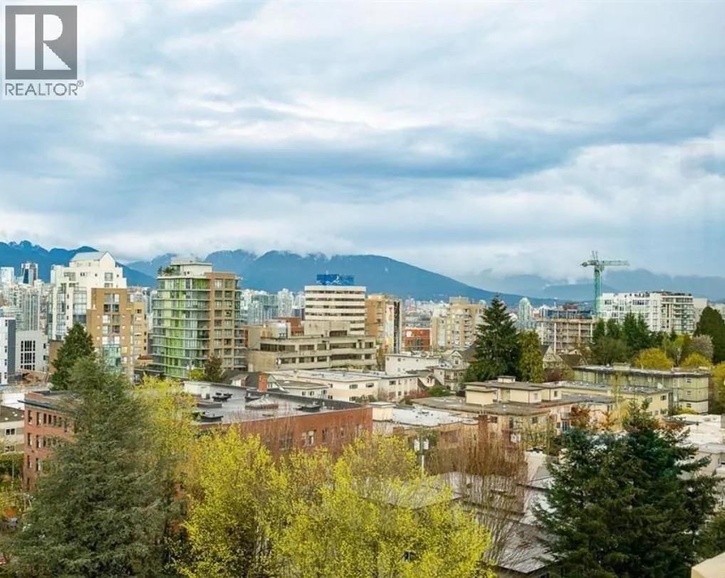 Luxury corner sub-penthouse with beautiful ocean, mountain, and city views at the posh "Compton", a high-quality, concrete Polygon building located on a quiet tree-lined street in the highly-desirable South Granville area. Great layout includes 2 spacious bedrooms (primary bedroom accommodates king bed), 2 bathrooms + den + flex room, open-concept floorplan with gas fireplace. Bright kitchen features s/s appliances and granite counters. Situated just blocks to cafes, shops, theatre, and restaurants on Granville Street, and easy stroll to Granville Island and seawall. Nearby bus stops and coming-soon subway station. 1 parking (potential EV chrg). Pets: 1 dog or 2 cats allowed. Perfect for those seeking a very elegant home in a lovely walkable neighbourhood. (id:27476)