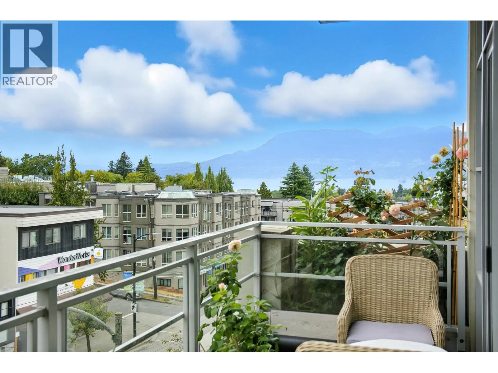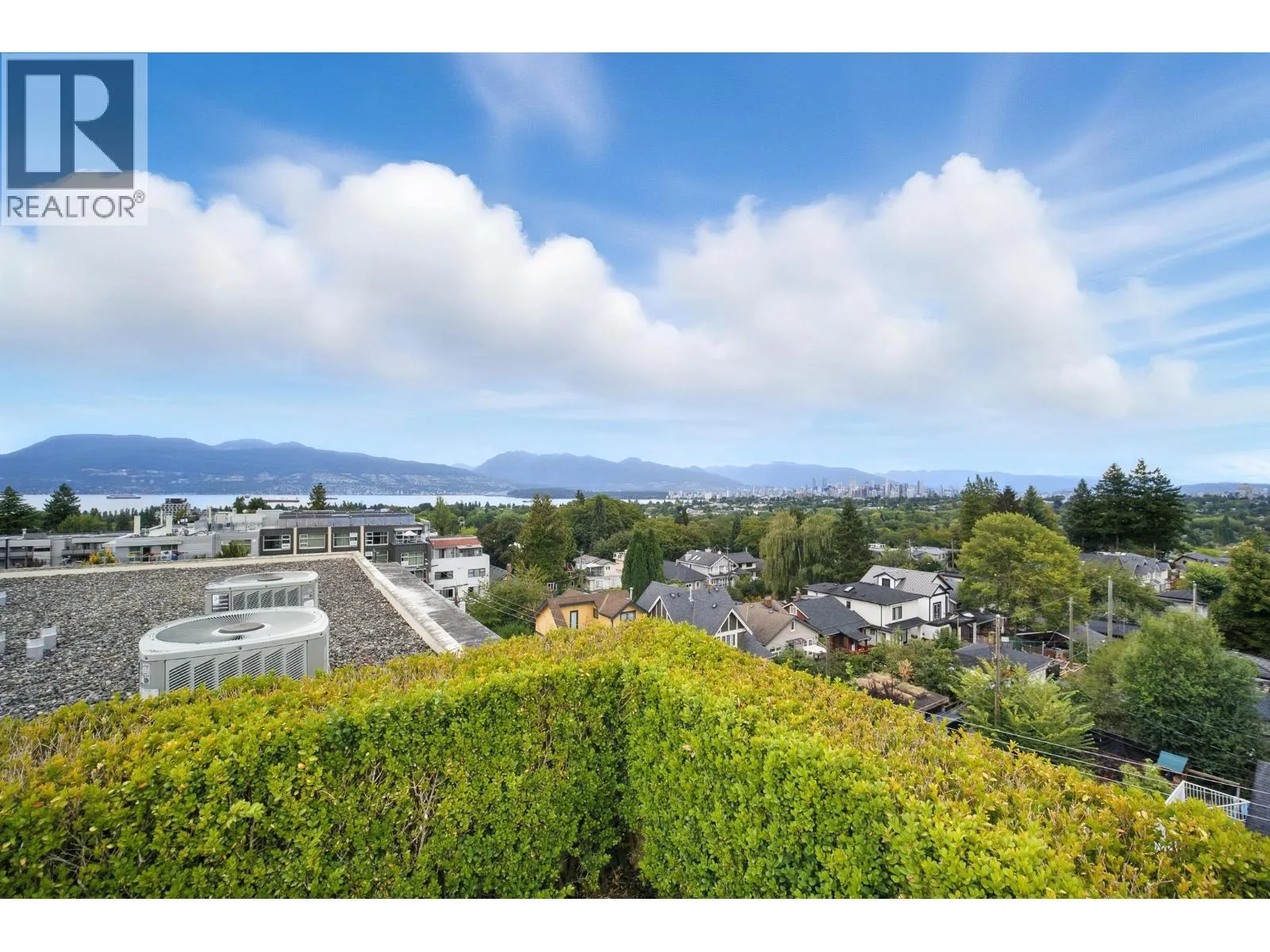 Bright and spacious 2-bedroom (with View), 2-bathroom home in The Duke on Dunbar, a well-built concrete Cressey development with air conditioning and a stunning rooftop garden. This ocean view, penhouse unit Features an open-concept kitchen, living, and dining area with generous storage. Equipped with a gas stove, gas fireplace, and built-in wine cooler. Large balcony for outdoor enjoyment. Loads updates with newer paint, newer carpet, wine cooler, and washer/dryer. Includes 2 parking stalls and a storage locker. Beautifully maintained. Prime location close to shops, restaurants, walking distance to the top-rated Lord Byng Secondary school. Don't miss! (id:27476)