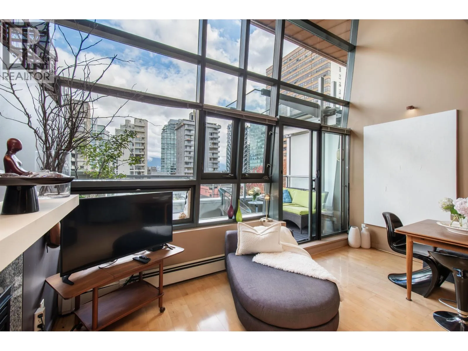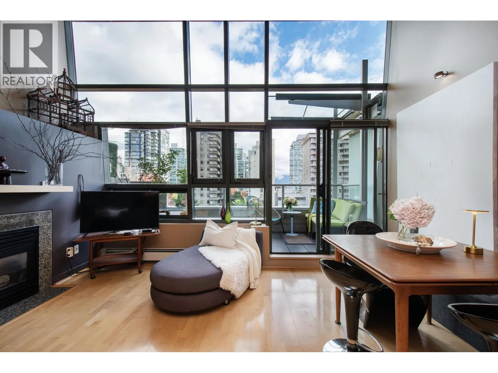 The West End LOFT you've been waiting for! Peaceful + Private. This incredible Penthouse 2 level Loft with 2 bedrooms (each w/ensuite) upstairs + den/office and a powder room on the main. Soaring 18' Floor to Ceiling Windows that let the natural light and views shine in. You'll enter off the outdoor terrace into this spacious loft with both North and South exp. Room to entertain, space for an office and a great kitchen. Enjoy the mountain, water & city views, cozy fireplace & balcony. Perfectly located in the best neighbourhood, walk to Coal Harbour, Stanley Park & Downtown. 2 side by side secure parking, storage locker, visitor parking. ** PETS ALLOWED ** You'll love the upscale amenities incl pool, sauna, gym and the peace of mind this concrete building with a well run strata provides. (id:27476)
