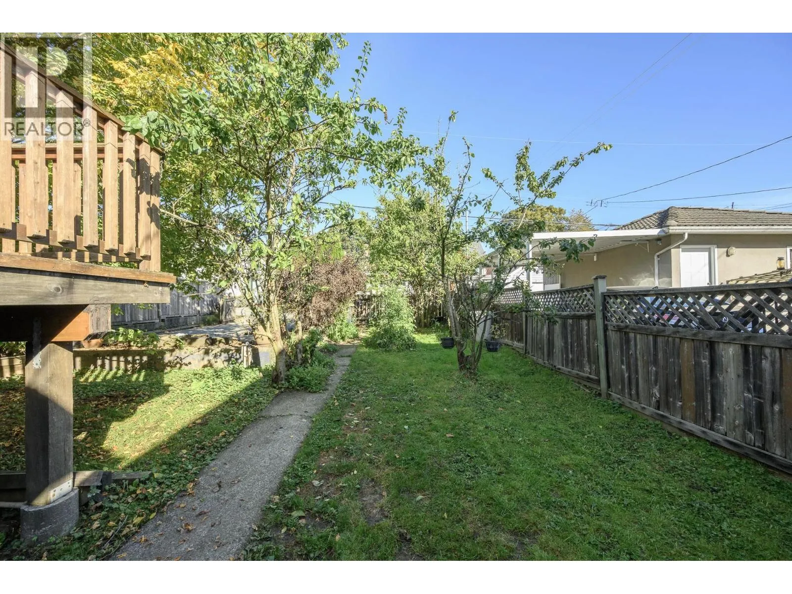 Builders, investors, or first-time home buyers - here´s your chance to own in the desirable Renfrew neighbourhood! Why buy a townhouse or duplex at this price point when you can own a house with a yard! Located on one of Vancouver´s most family-friendly streets, this charming 3-bedroom, 2-bathroom home offers plenty of potential. Basement easily converted to a mortgage helper. Enjoy your morning coffee or evening wine on the spacious backyard deck. Large parking pad and plenty of street parking. Zoning is R1-1, offering flexibility for future development. School Catchments: Lord Nelson Elementary and Templeton Secondary. Close to transit, shops, and parks. Schedule your private showing today! (id:27476)