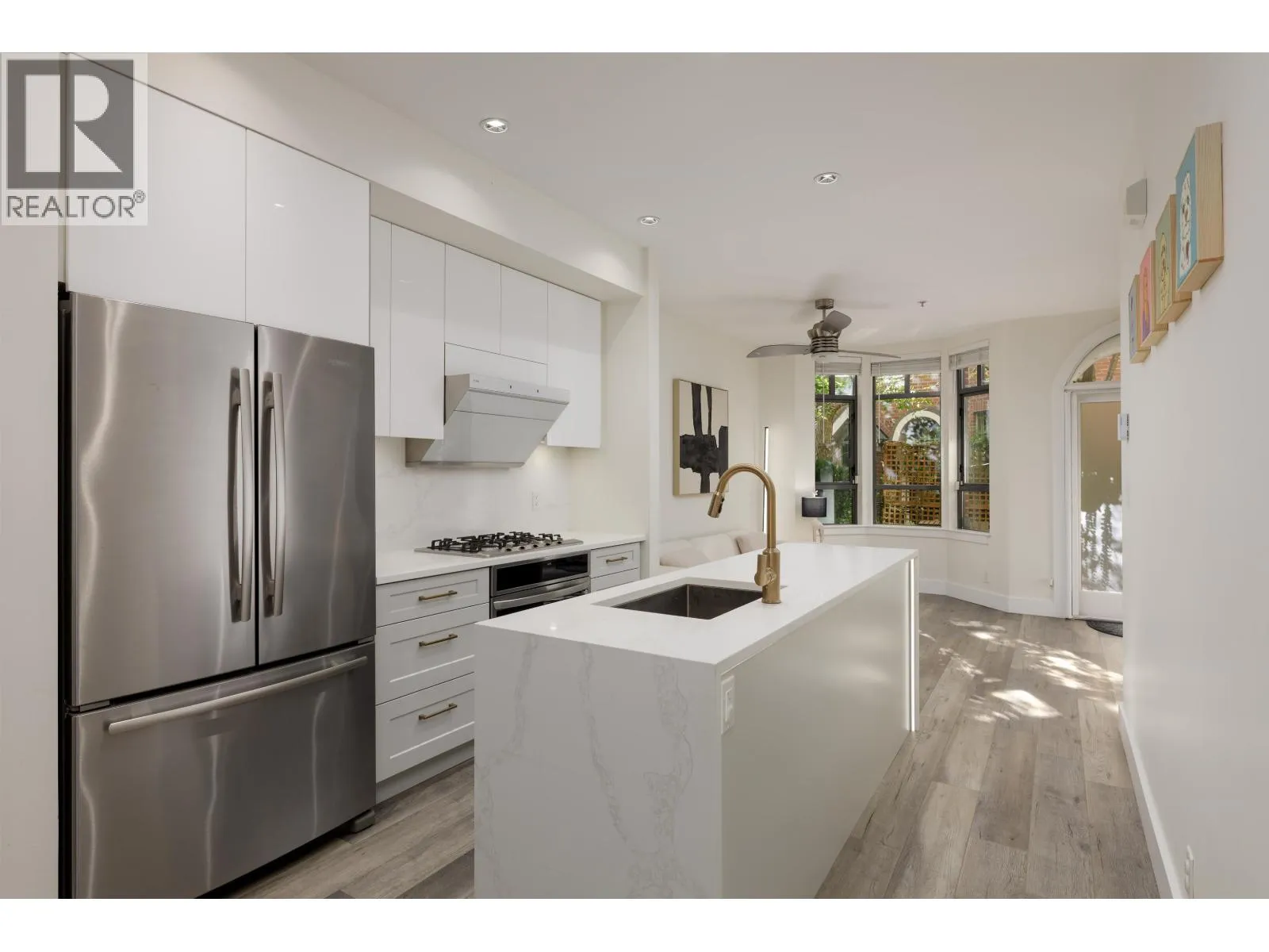 Welcome to Boxwood Green, an exceptional boutique townhome in one of Vancouver´s most desirable West Side neighbourhoods. This beautifully maintained residence offers 3 bedrooms, 3 bathrooms, and 1,636 sqft of well-designed living space. The main floor features open-concept living, dining, and kitchen areas with a brand-new gourmet kitchen, high-end appliances, and access to a quiet south-facing courtyard patio. Upstairs are two spacious bedrooms, while the top floor is a private primary suite with walk-in shower, soaker tub, and balcony. The lower level includes a flexible family room and powder room, perfect for guests or an office. Side-by-side double gated garage, freshly painted, move-in ready, steps to dog park, Granville Island, whole foods and the future SkyTrain station. (id:27476)