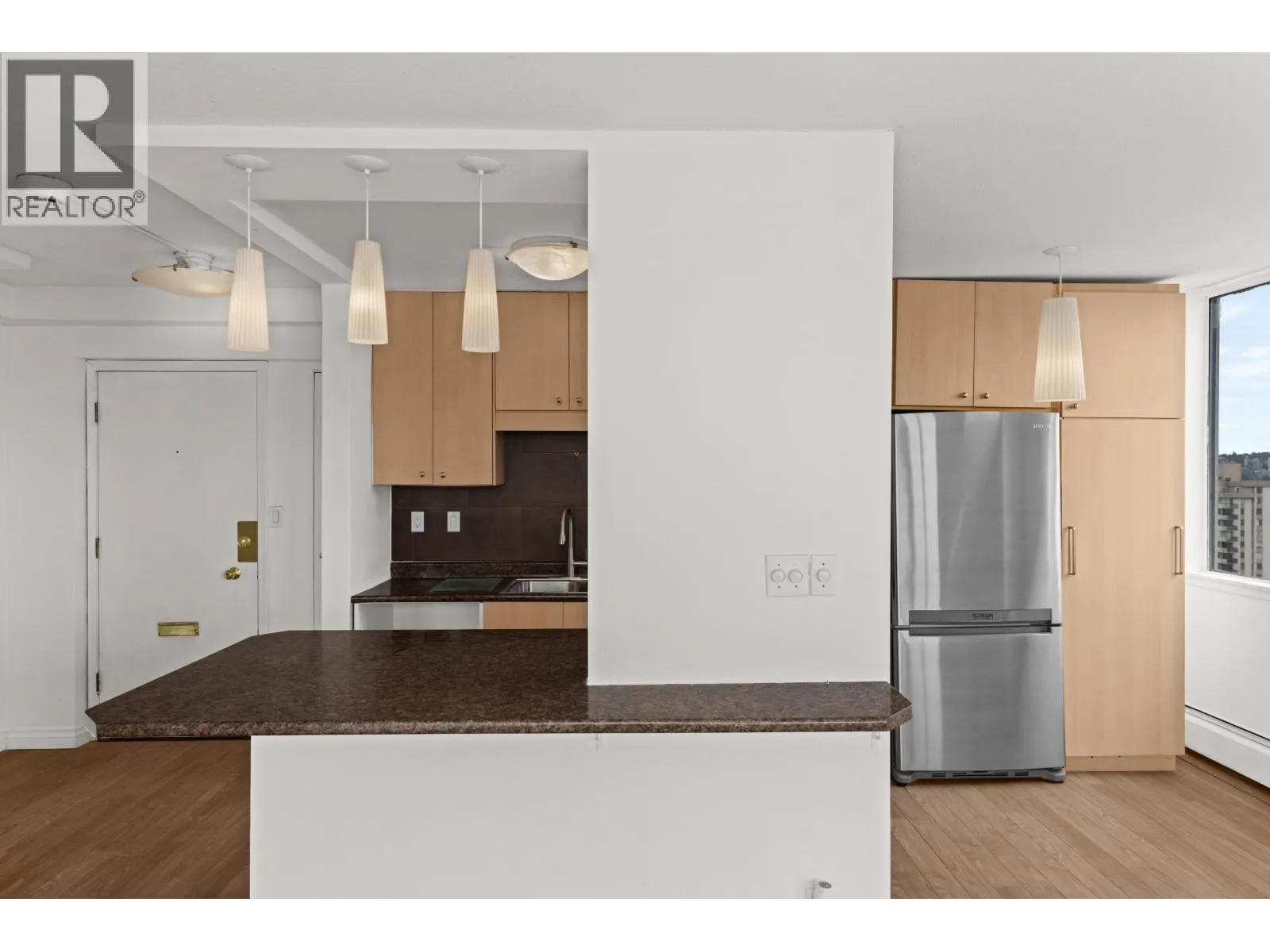 Welcome to the feature '01 corner of Surfcrest on the edge of the West End. At 634SqFt inside + 31SqFt patio out, #1701 has all your need in your downtown pied-Ã -terre. Completely renovated in 2010, you now have an open kitchen ideal for entertaining and taking in the fireworks while you cook + and abundance of kitchen storage & stainless steel appliances. Your generous sized bedroom is additionally open to that most-desired English Bay view & additionally offers an abundance of closet space. Double sinks in the bathroom and plenty of open cottage a the front of the unit. 1 parking & 1 locker accompany this offering. Contact me today for you private viewing of the ideal view home! (id:27476)