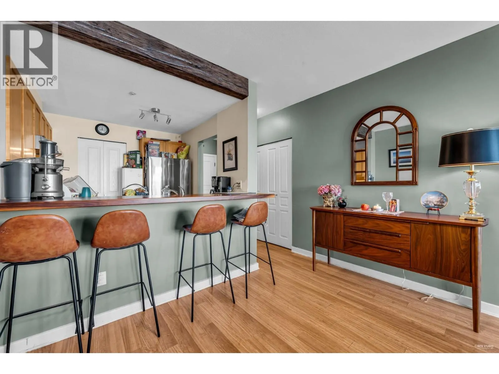 Waterfront! Enjoy unobstructed River views from this large West facing unit! Spacious layout with high ceilings, open kitchen, breakfast bar and large pantry. Living/dining room combo with gas fireplace, floor to ceiling window and a large covered balcony perfect for entertaining and relaxing! Updates include Elegant Cast Stone Fireplace Mantel, Floor to Ceiling built-in shelving, Extra large Hardwood Breakfast Bar, new bathroom, as well as new tiles throughout! Large bdrm has walk-in closet with organizers, storage & laundry. Great amenities including well equipped gym, party room and whirlpool/ Unit includes 1 parking & Locker. Wonderful neighbourhood right on the water less then 20 mins to downtown! Come see today - you won''t be disappointed! (id:27476)