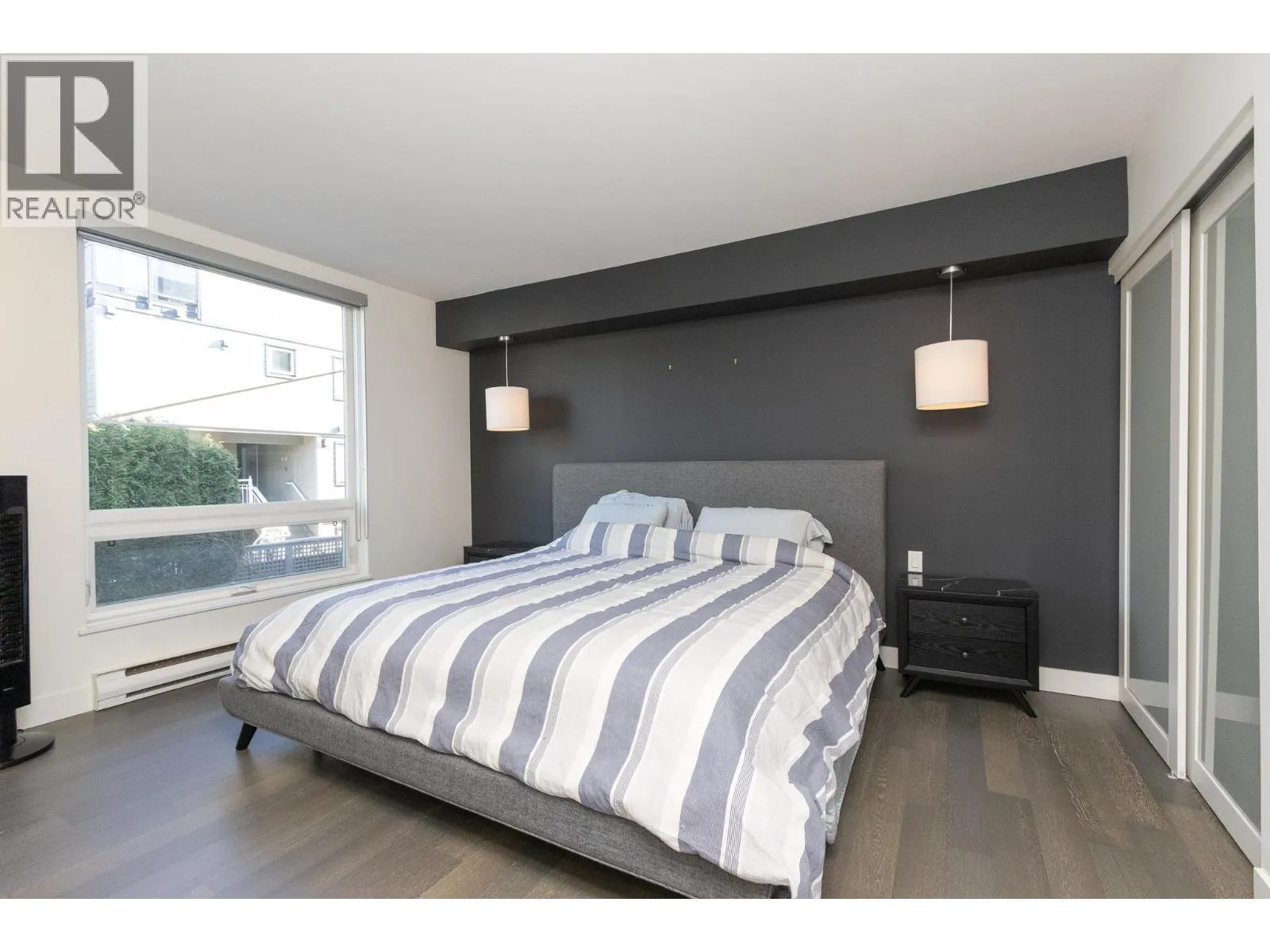 Beautifully updated 2-bedroom, 2-bathroom townhouse located in the heart of Fairview between Cambie and Oak Street. Renovated with updates completed in 2016 and 2019, this home features engineered German hardwood floors, granite countertops, updated kitchen appliances, a wood-burning fireplace, and custom closets. The layout is thoughtfully designed: one bedroom and one bathroom are conveniently located downstairs with a private patio at the back and a spacious front patio, while the second bedroom and bathroom are upstairs. Includes two secured, side-by-side underground parking stalls (14 and 15), and is part of a well-managed, proactive strata in a worry-free building. Excellent location close to VGH, shopping, restaurants, transit, and all amenities. Tenanted until November 1st. (id:27476)