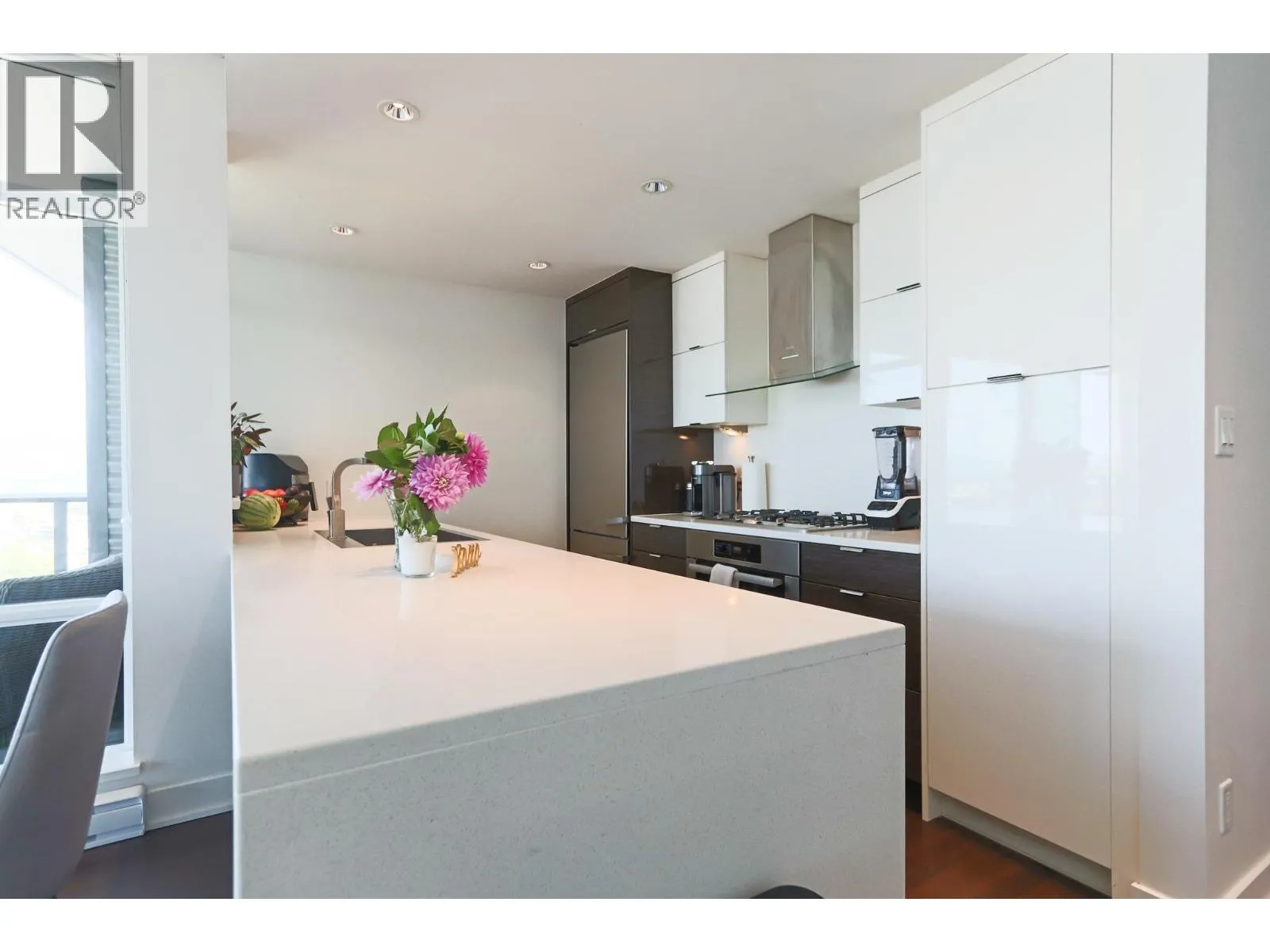Welcome to the crown jewel of Kits 360 - a rare penthouse corner unit residence offering breathtaking 270° views of the Downtown skyline, North Shore mountains, English Bay, Burrard Inlet and beyond. Open-concept living with premium wide-plank flooring and 8'6"+ ceilings, floor to ceiling windows letting in an abundance of natural light and showcasing postcard-perfect views from every angle. The expansive private terrace is your front-row seat to Vancouver´s most stunning views - perfect for entertaining or unwinding above the city. Gourmet kitchen with Blomberg & AEG appliances, gas cooktop, sleek quartz countertops custom cabinetry with ample storage. The bedroom area is carpeted for comfort. Walkable from Fairview to Granville Island, Downtown, Kits Beach, easy access to transit. The strata offers 24-hour concierge, rooftop garden with BBQ & lounge area, full gym, meeting/media rooms, secure bike storage. (id:27476)