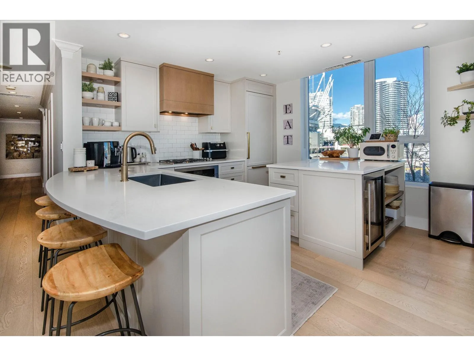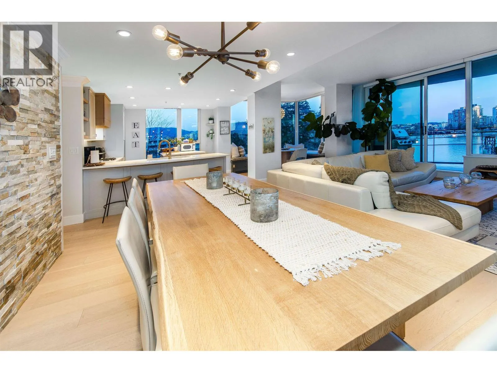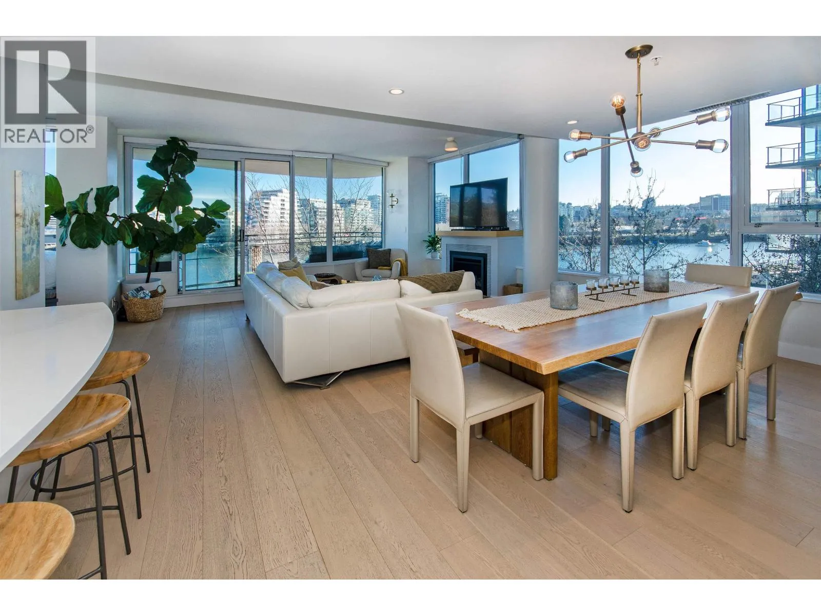 Enjoy all that Yaletown has to offer in this gorgeous 2400 square foot, 3 bedroom, 3 full bathroom furnished condo in Cooperage Villas. This entire floor, fully renovated condo has direct private elevator access and panoramic water views. Take advantage of direct Seawall access for great walks along the water, or enjoy the outdoors from a private balcony. Take in city sites from the amazing, large windows from the open living space complete with a spacious dining table and couch making entertaining a breeze. Cozy up in front of the fireplace or relax with a great meal in the amazing kitchen complete with stainless steel appliances. You'll love the modern furnishings and details throughout this beautiful large condo. (id:27476)