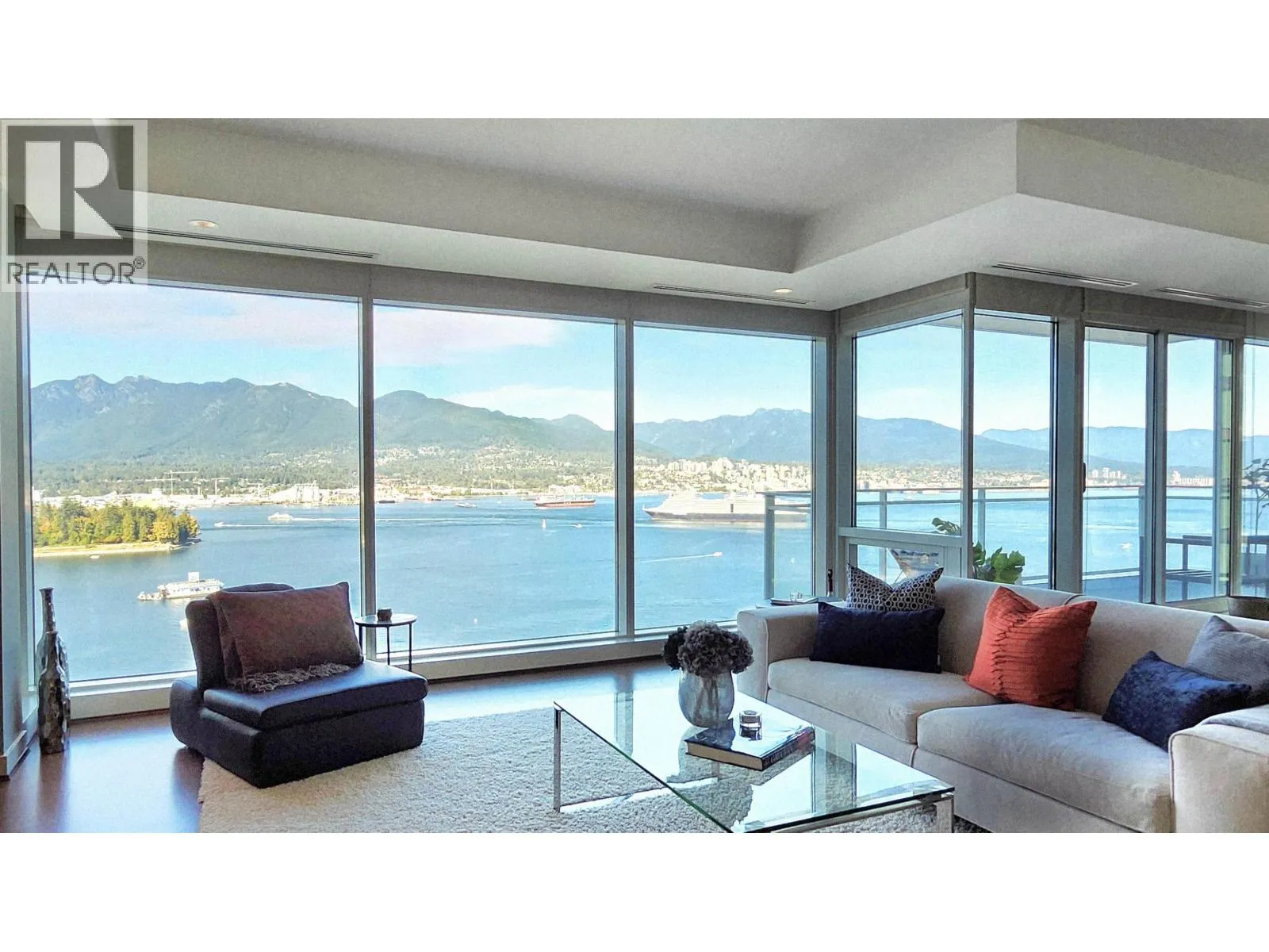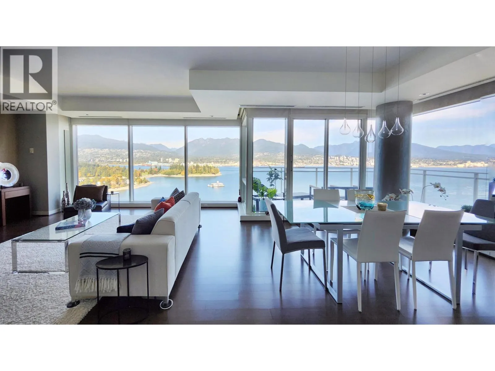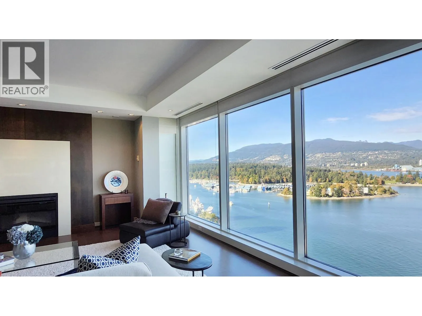 Exclusive sophisticated oceanfront living at award-winning 2 Harbor Green in prestigious Coal Harbor.With only 2 units on the floor,the spacious&bright home is at the perfect height;high enough to offer far reaching stunning 180° views, incl Stanley Park,Lions Gate Bridge&2nd Narrows Bridge;yet still has a very intimate feel with the water and greenery.Enjoy sunrises and sunsets from the large private terrace and tranquil water vistas from every main room.Interiors offer designer custom millwork and upgrades,and is in immaculate move-in-ready condition.Rare features:a private 2 car garage with two EV chargers, an extra large parking stall,and 2 concrete storage rooms perfect for downsizers).World class amenities: hotel-style lobby,24hr concierge,indoor pool,gym,guest room,virtual golf etc. (id:27476)