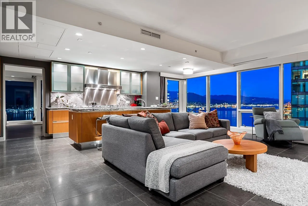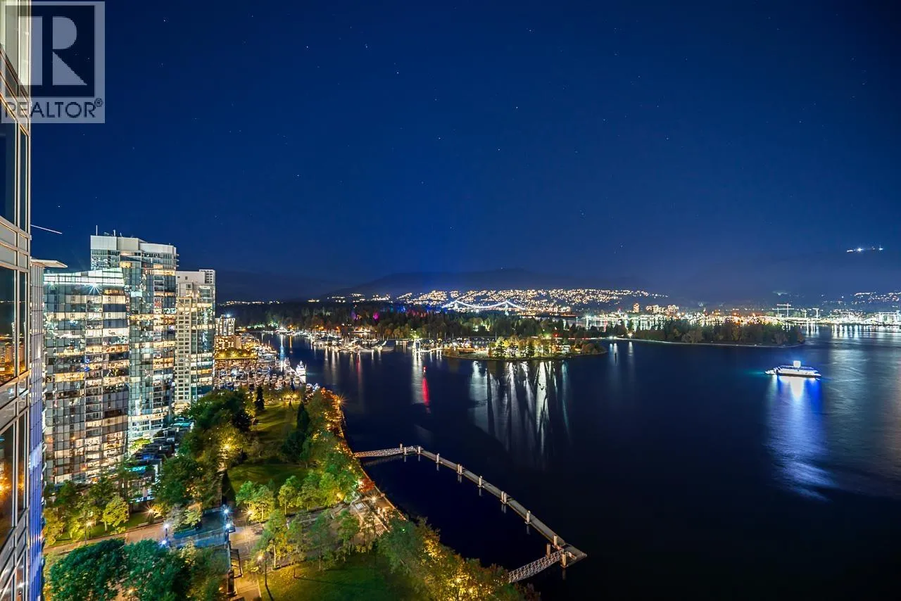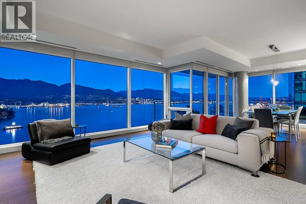 Exclusive sophisticated oceanfront living at award-winning 2 Harbor Green in prestigious Coal Harbor.With only 2 units on the floor,the spacious&bright home is at the perfect height;high enough to offer far reaching stunning 180° views, incl Stanley Park,Lions Gate Bridge&2nd Narrows Bridge;yet still has a very intimate feel with the water and greenery.Enjoy sunrises and sunsets from the large private terrace and tranquil water vistas from every main room.Interiors offer designer custom millwork and upgrades,and is in immaculate move-in-ready condition.Rare features:a private 2 car garage with two EV chargers, an extra large parking stall,and 2 concrete storage rooms perfect for downsizers).World class amenities: hotel-style lobby,24hr concierge,indoor pool,gym,guest room,virtual golf etc. (id:27476)