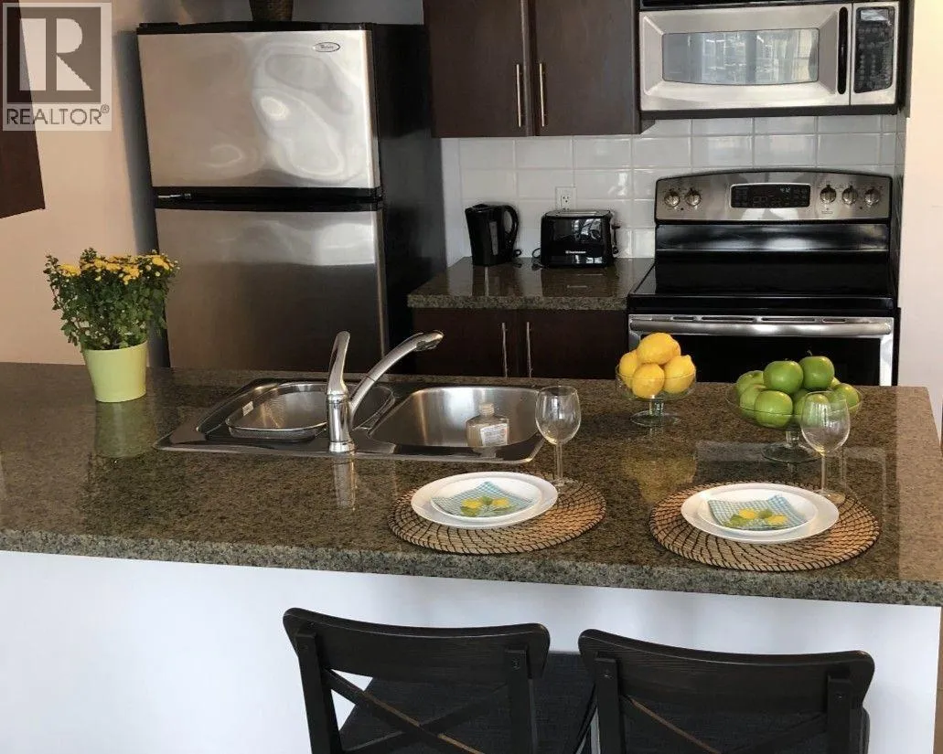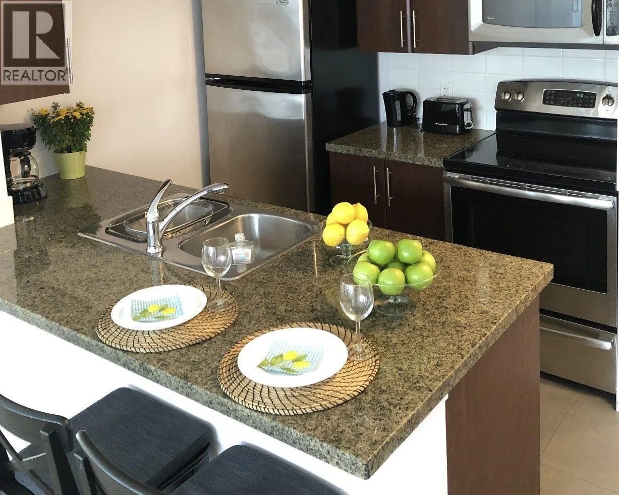 This exquisitely furnished 580-square-foot condo in Vancouver is the epitome of urban living, skillfully combining style, comfort, and practicality. The one-bedroom, one-bathroom abode includes a tranquil office den, perfect for professionals who cherish a dedicated work area within their living space. Step onto the private balcony and be greeted by the breathtaking city views juxtaposed with the serene mountain vistas. This outdoor extension of your living space offers a daily invitation to revel in Vancouver's picturesque landscape and dynamic skyline. Contemporary furnishings within the condo are selected with an eye for design and functionality, creating an abode that is both inviting and chic. (id:27476)