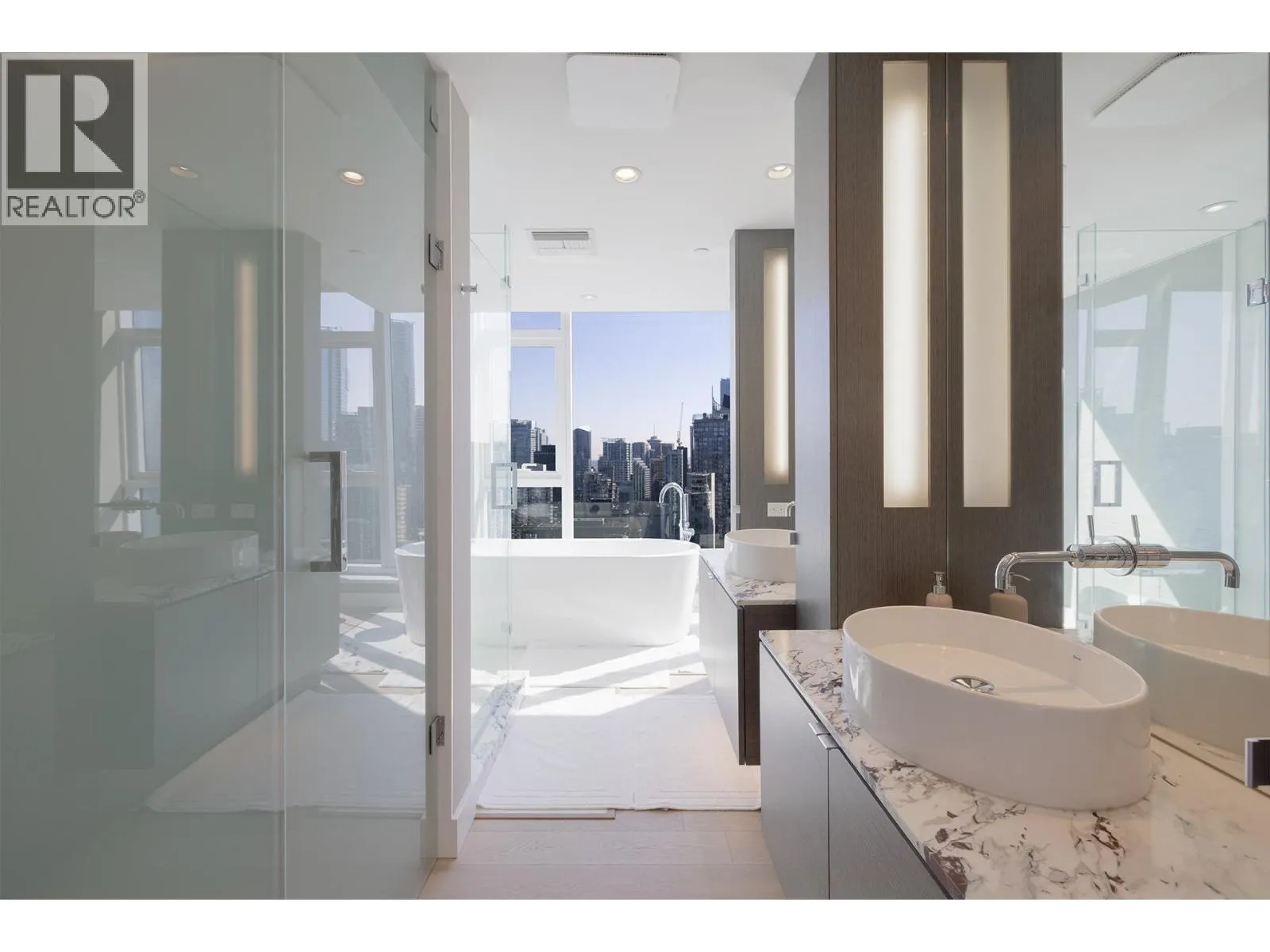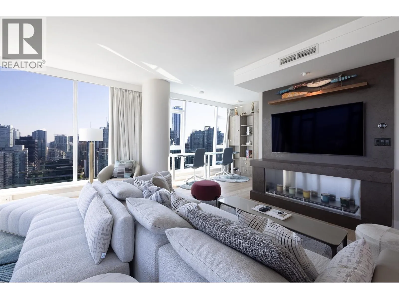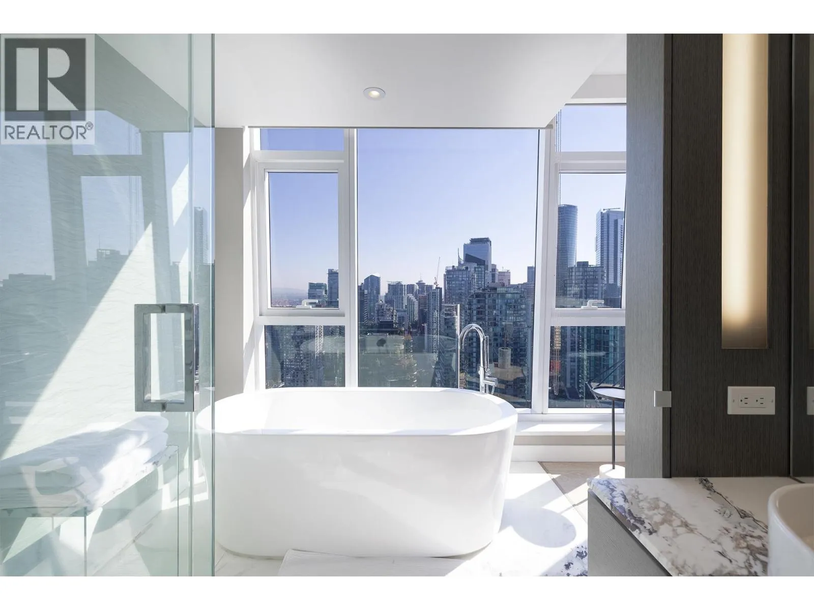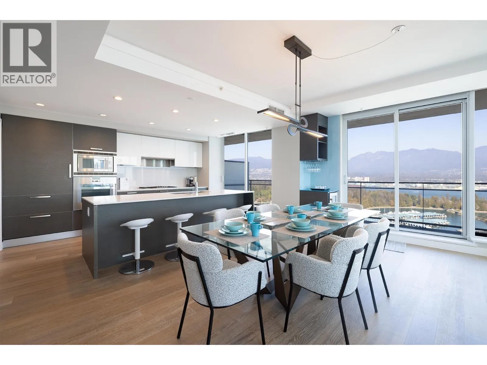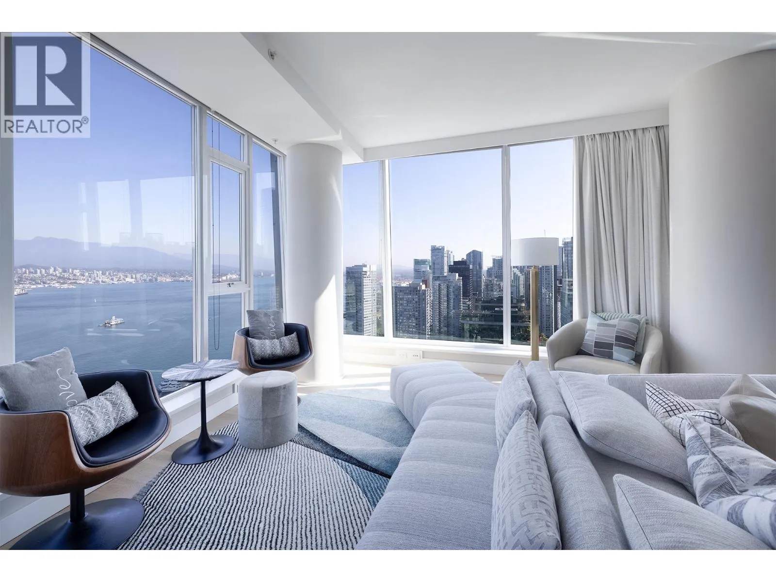 Totally renovated like brand new and fully furnished luxurious condo in prestigious Coal Harbor with over 270 degrees of unobstructed jaw-dropping views! This spacious 2 bedroom + open den, 2.5 bathroom condo is 1st time on the rental market and second to none! The floor to ceiling windows frame the view beautifully. From the Lions Gate Bridge to Stanley Park, the North Shore Mountains to UBC, English Bay and the cityscape, everywhere you look out the window, you will see an iconic site. The condo is fully furnished with high end imported European furniture featuring the theme of Ocean and Mountain wisely displayed by the designer. Open concept chef's kitchen with the best Gaggenau appliances, huge Sub-zero fridge with pantry and wine fridge! 2 zoned air conditioning. 2 parking stall. (id:27476)
