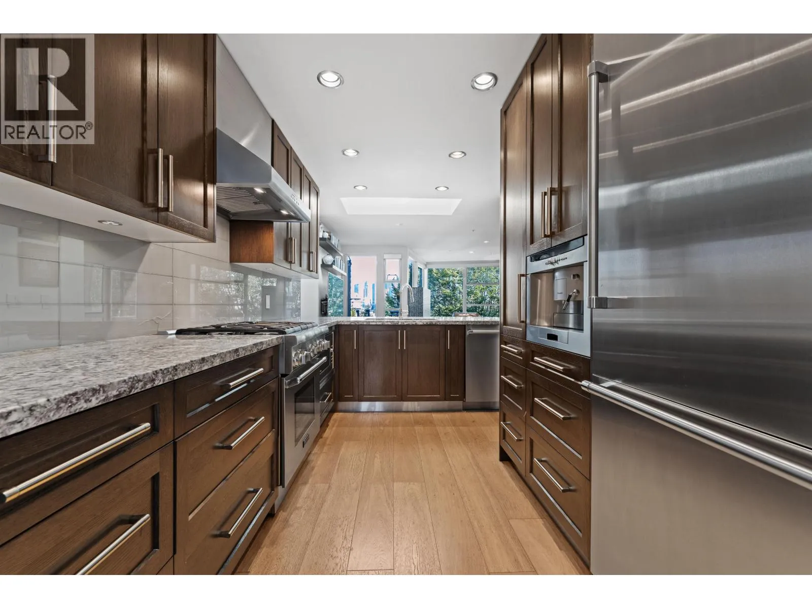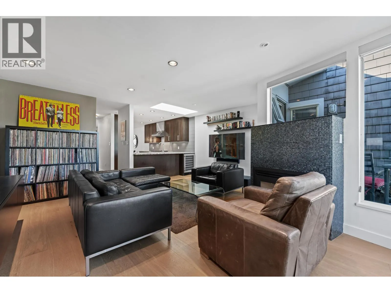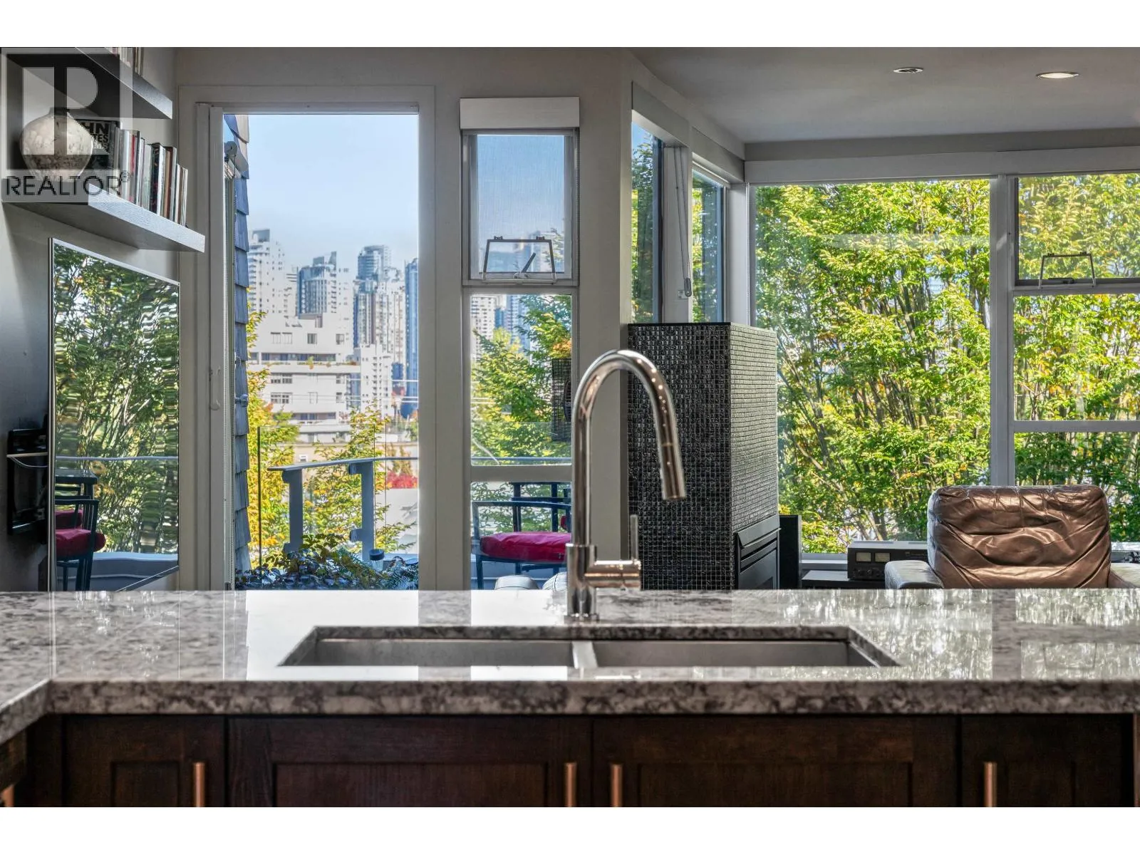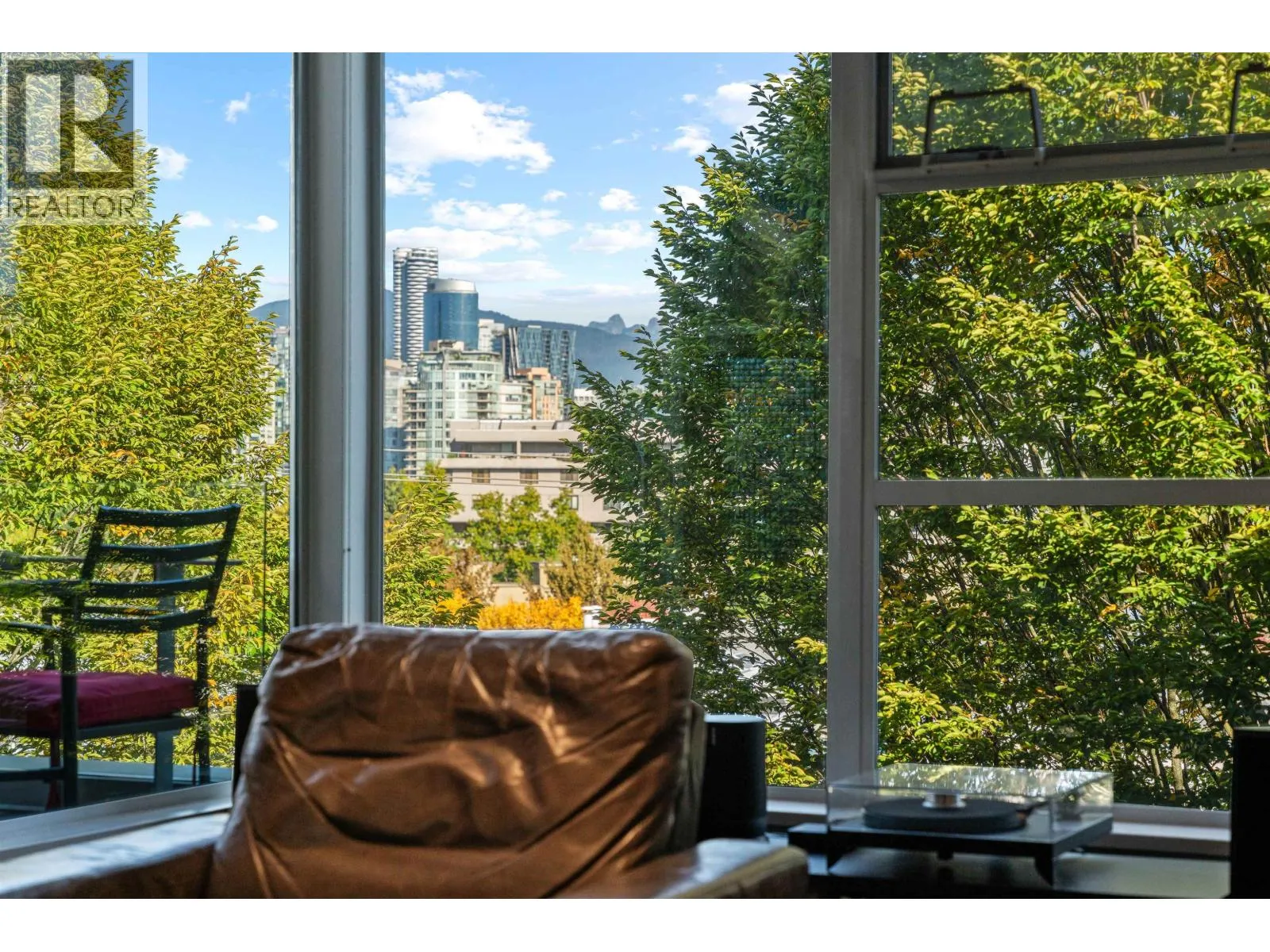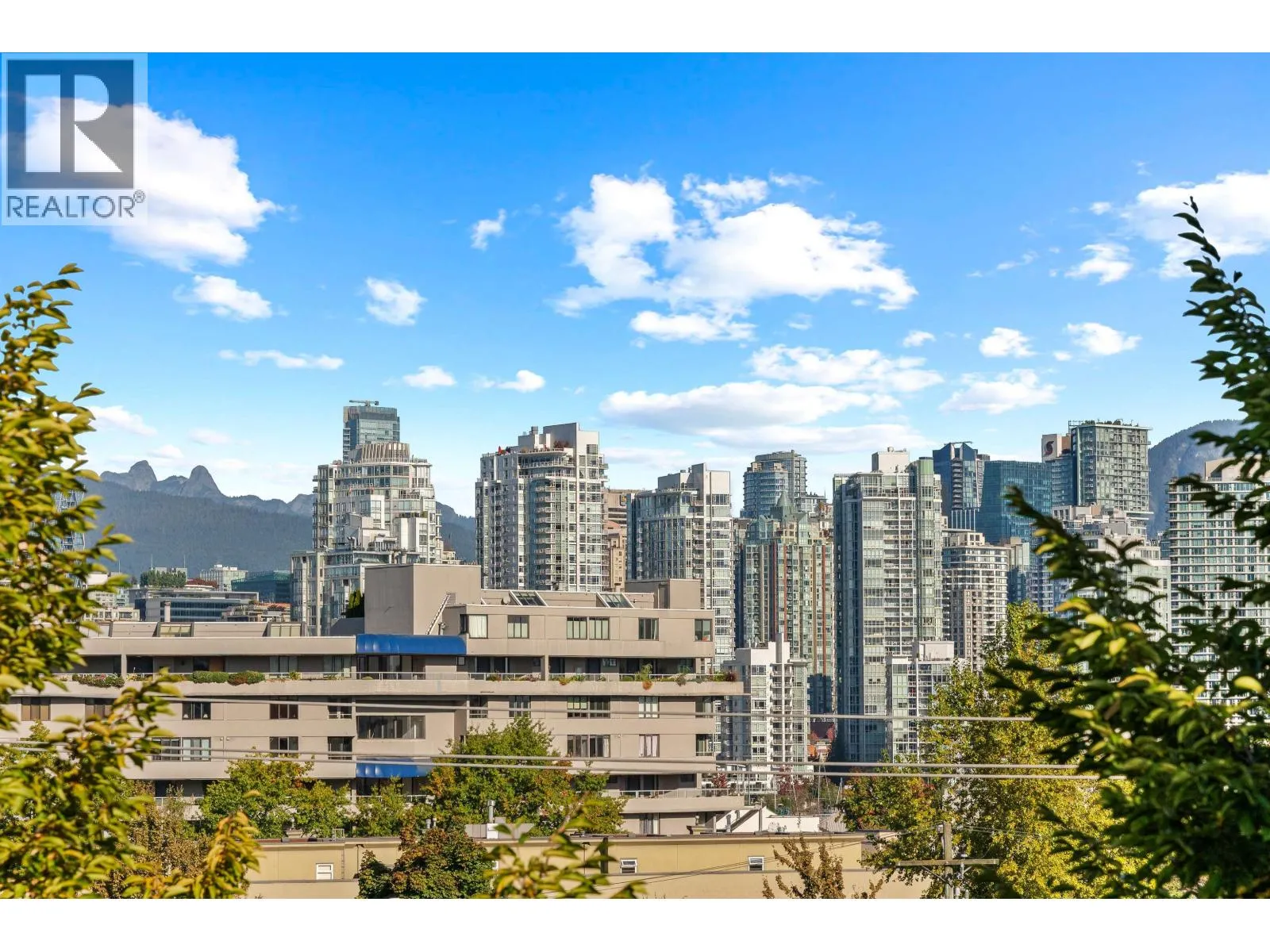 Welcome to 7th Heaven- a rare top-floor, 2-level home in the heart of Fairview. This 3-bed, 2-bath residence is filled with natural light from skylights & expansive windows, with three private outdoor spaces: a larges-facing patio off the main living area, an upper deck with sweeping city & mountain views, and a patio off the principal bedroom. A chefs kitchen features Thermador appliances (gas stove+ built-in espresso machine), custom cabinetry, granite counters, and a pantry. Spacious principal rooms fit house-sized furniture, with skyline and mountain views. Renovated with wide-plank oak hardwood, Hunter Douglas blinds, and California Closets, this home won't disappoint. Complete with cozy gas fireplace, in-suite storage, 2 secure parking. Pet & rental friendly, steps to everything! (id:27476)