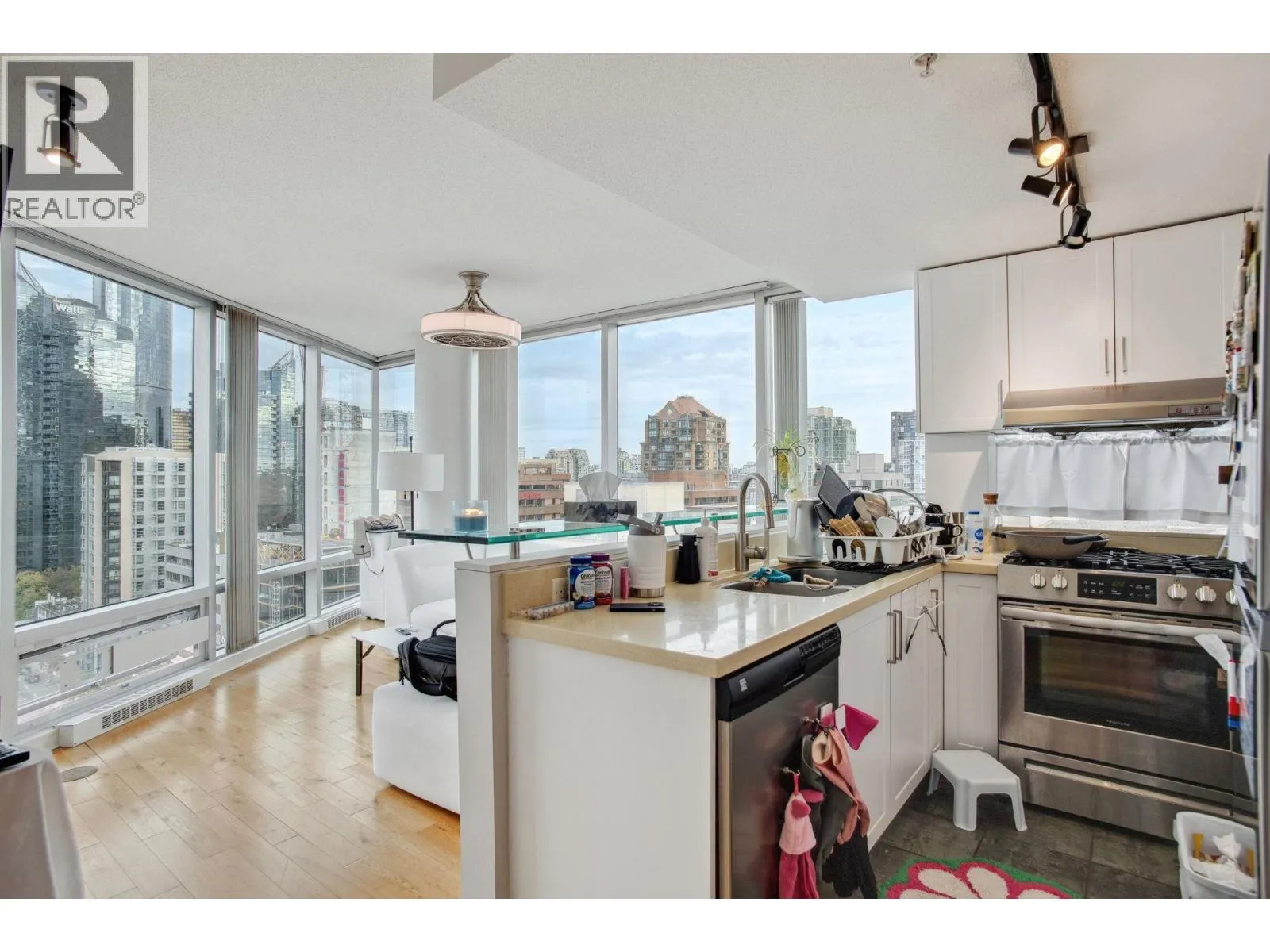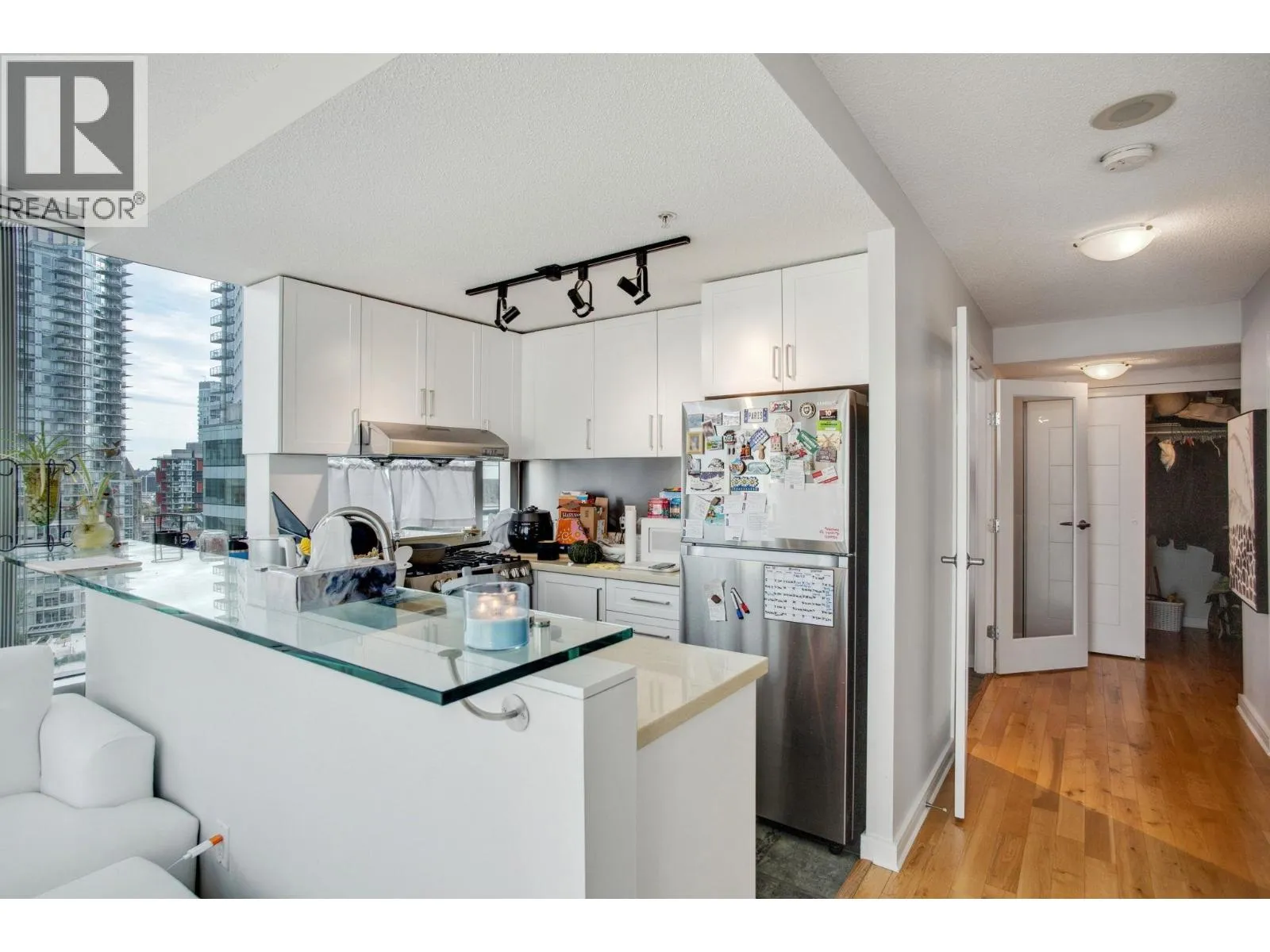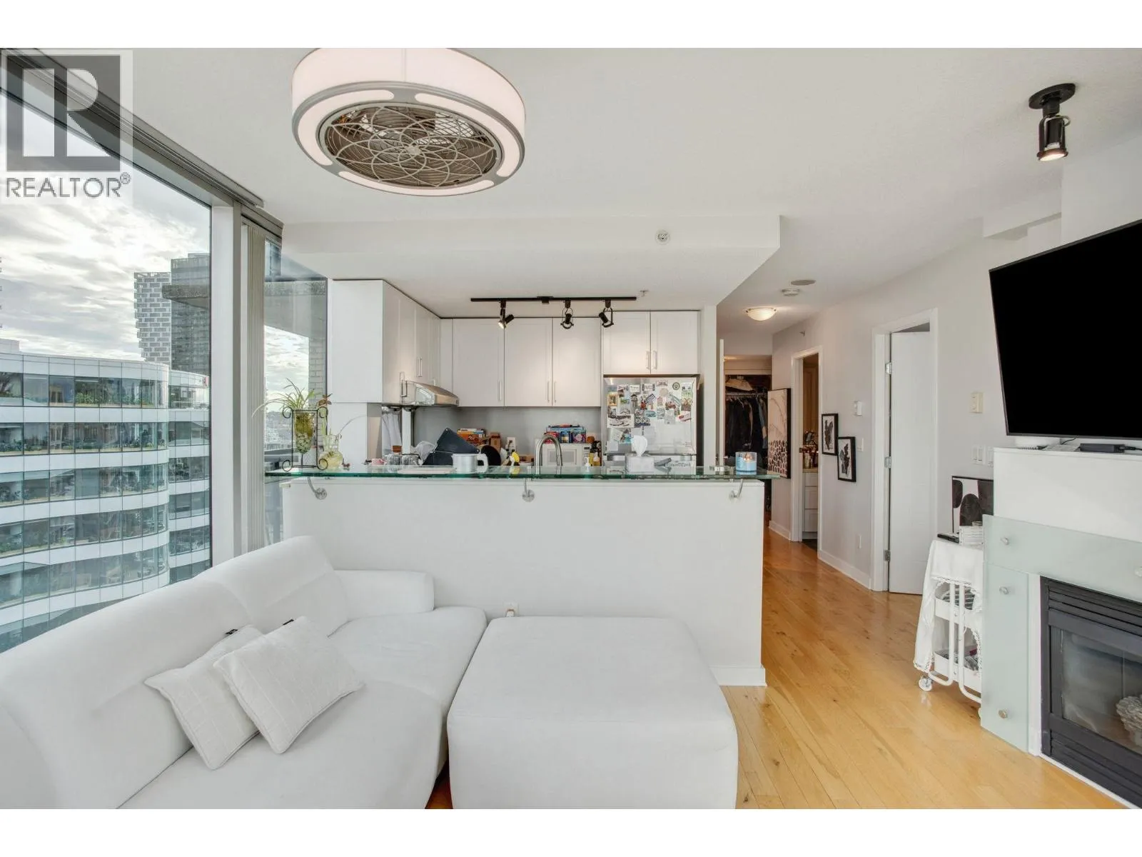 In the heart of Downtown, you´ll find this CORNER UNIT SUB-PENTHOUSE in the coveted Milano building by award-winning and reputable Cressey Development. Featuring floor-to-ceiling windows with unbeatable views of the North Shore Mountains and the Downtown skyline, a gas fireplace, as well as a functional 1 bed + den + flex layout. Owner upgrades include all-new kitchen cabinets and fresh paint throughout. Just a short walk to Robson Street, English Bay, and vibrant Davie Village. Pets and rentals welcome. 1 parking & 1 locker included. (id:27476)