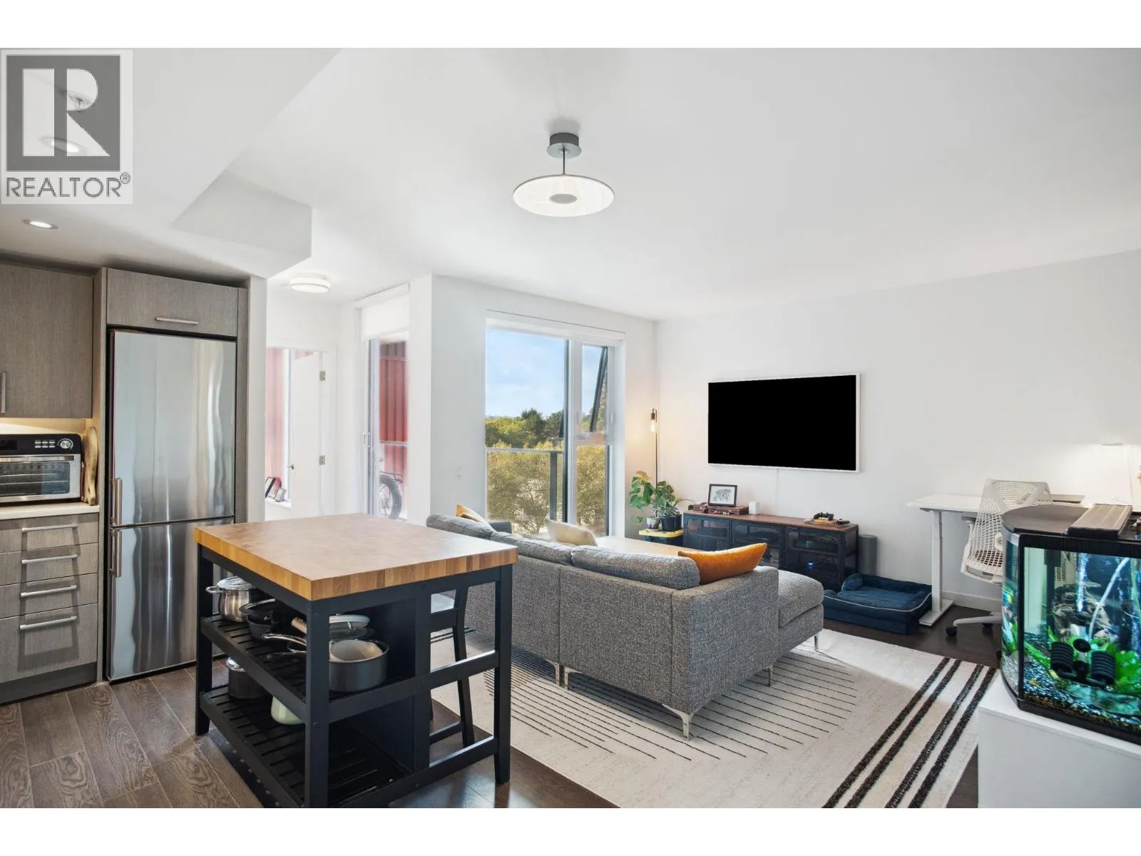 Welcome to 501-983 E Hastings in the contemporary Strathcona Village complex. This 2018-built concrete building offers urban living with great amenities, including a fantastic communal patio with unobstructed water and mountain views! The spacious layout features open living and dining areas, a wonderful kitchen with stainless appliances and a moveable island. With a sizable storage room, in-suite laundry, and one parking stall included, this home covers all the essentials. The central, convenient location provides easy access to downtown and transit options, making it an excellent choice for those seeking a well-connected, modern lifestyle. (id:27476)