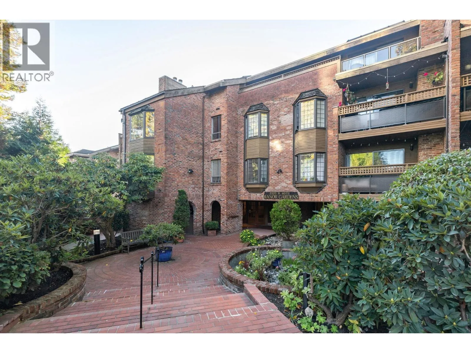 Discover charm and convenience nestled on a quiet Kerrisdale cul-de-sac at the well maintaned complex, Manor Gardens! This freshly painted 2 bedroom home features updated kitchen appliances and brand new laminate floors. Enjoy in-suite laundry, vaulted ceilings and spacious bedrooms with ample storage. The building has a brand-new roof (2025), and is pet and rental-friendly. A bonus for city living, heat is included in your maintenance fee. Prime location just steps from Kerrisdale Village shops, dining, parks, and more; this home offers the perfect blend of tranquility and urban accessibility! 1 parking stall and 1 storage locker. Don´t miss this rare opportunity! Open House: Sat, Oct 18 2:00pm-4:00pm (id:27476)