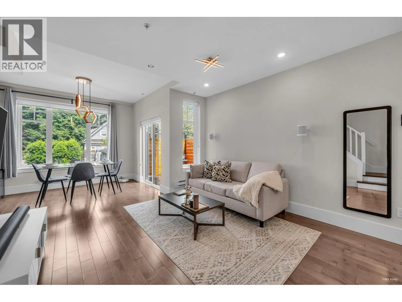 Stunning 3-Bed, 2.5-Bath Corner Townhome in Mount Pleasant! Beautifully designed 3-level corner unit offering 1,408 sf of modern living in one of Vancouver´s most desirable neighborhoods. The home features an open-concept main floor with 9´ ceilings, engineered hardwood flooring throughout, and large windows providing excellent natural light. The contemporary kitchen is equipped with custom cabinetry, quartz countertops, SS appliances, a gas stove, and plenty of storage. Enjoy the private patio on the main level, ideal for entertaining, & a view deck off the top-floor loft style bedroom. Prime location with a Walk Score of 94, steps to parks, shops, cafes, restaurants, and transit. Just a 5-minute drive Downtown. A must-see! Book your private showing. (id:27476)
