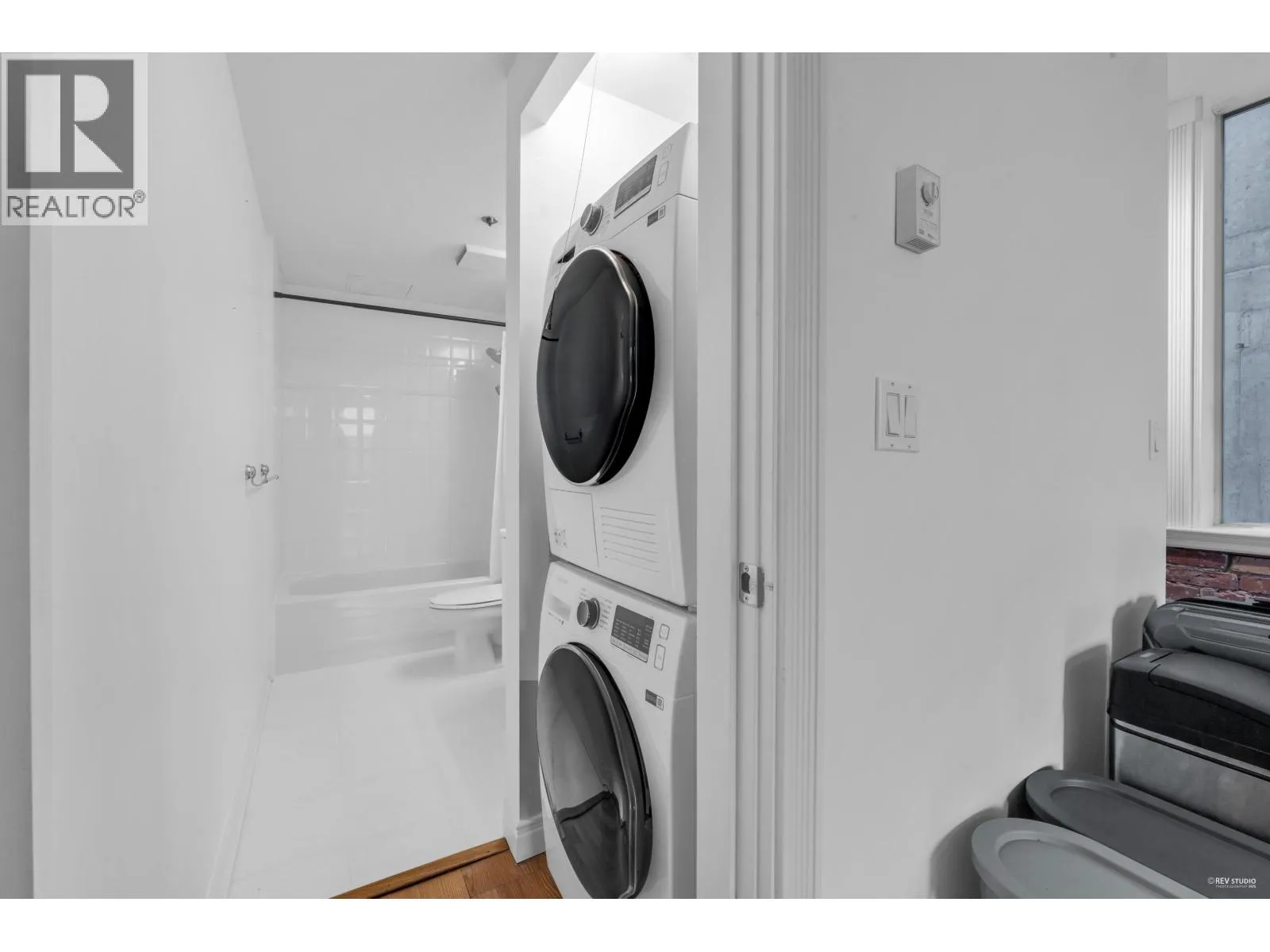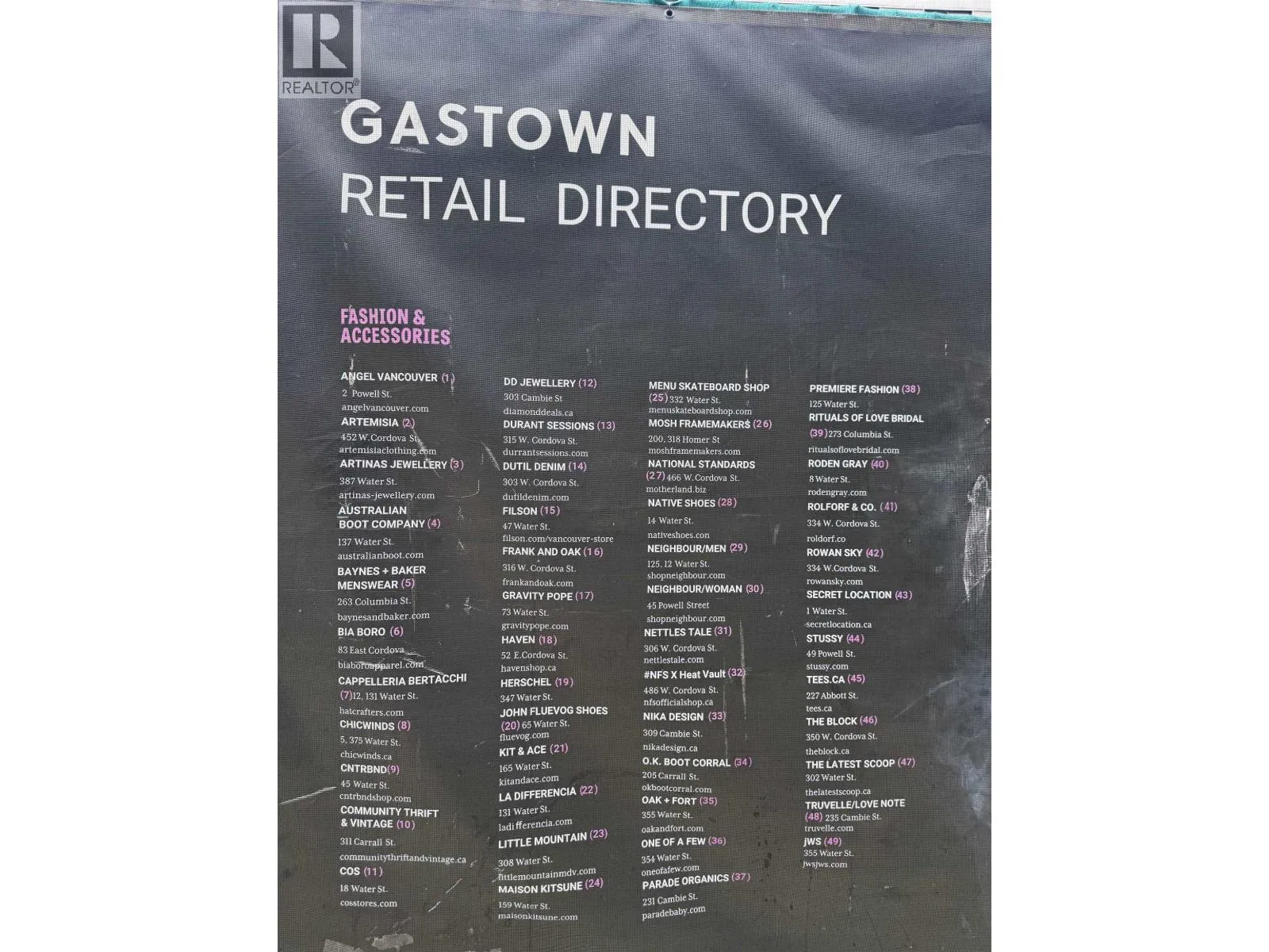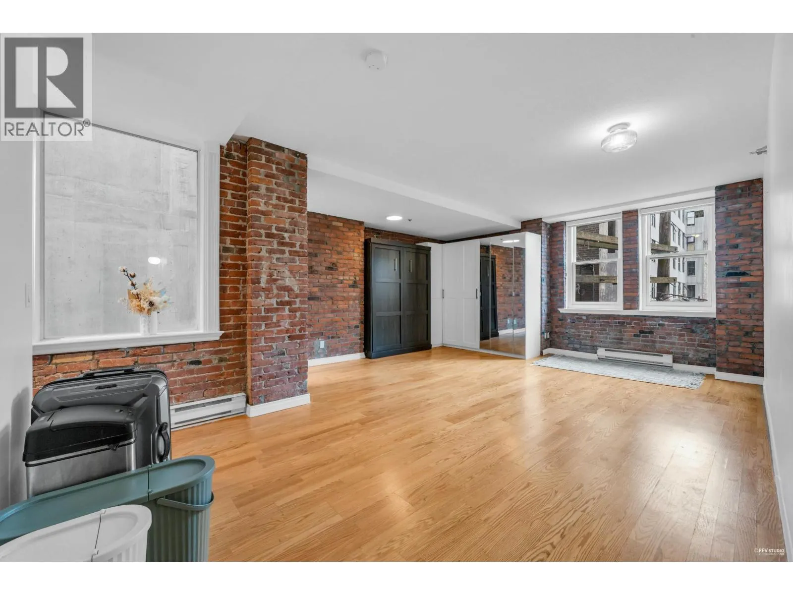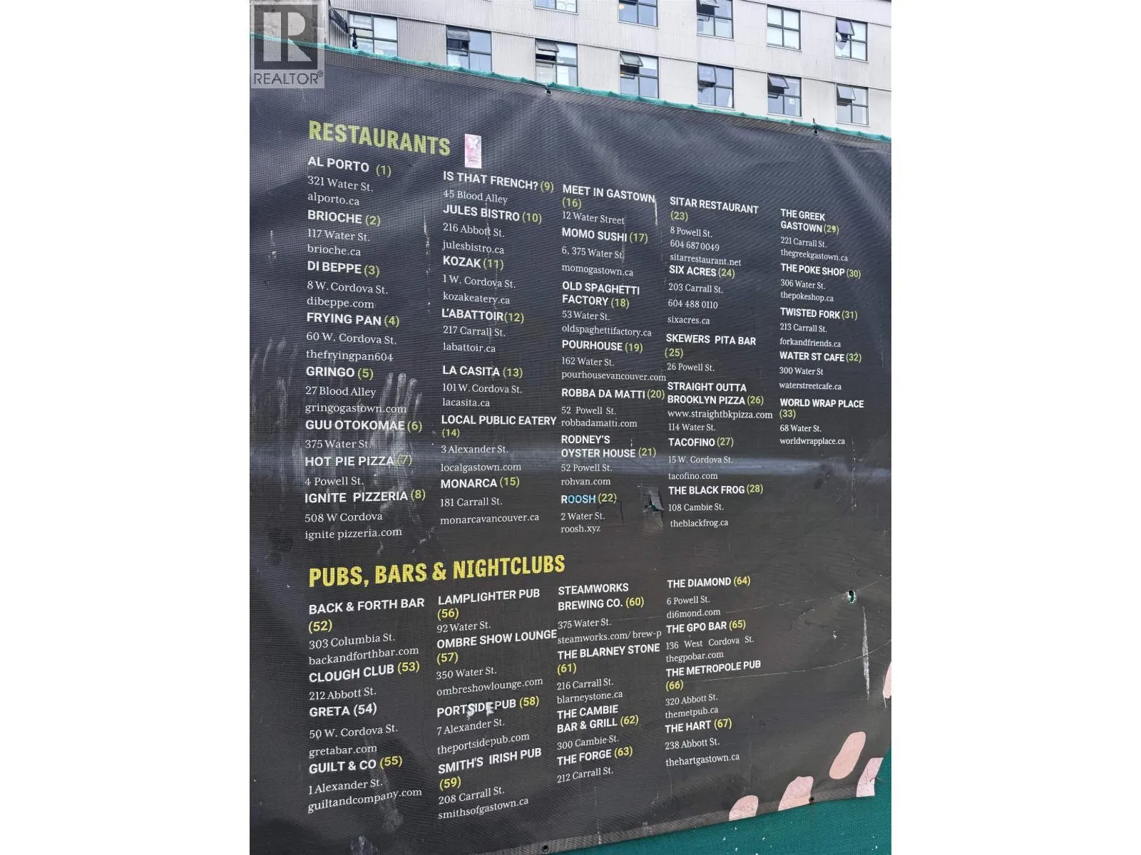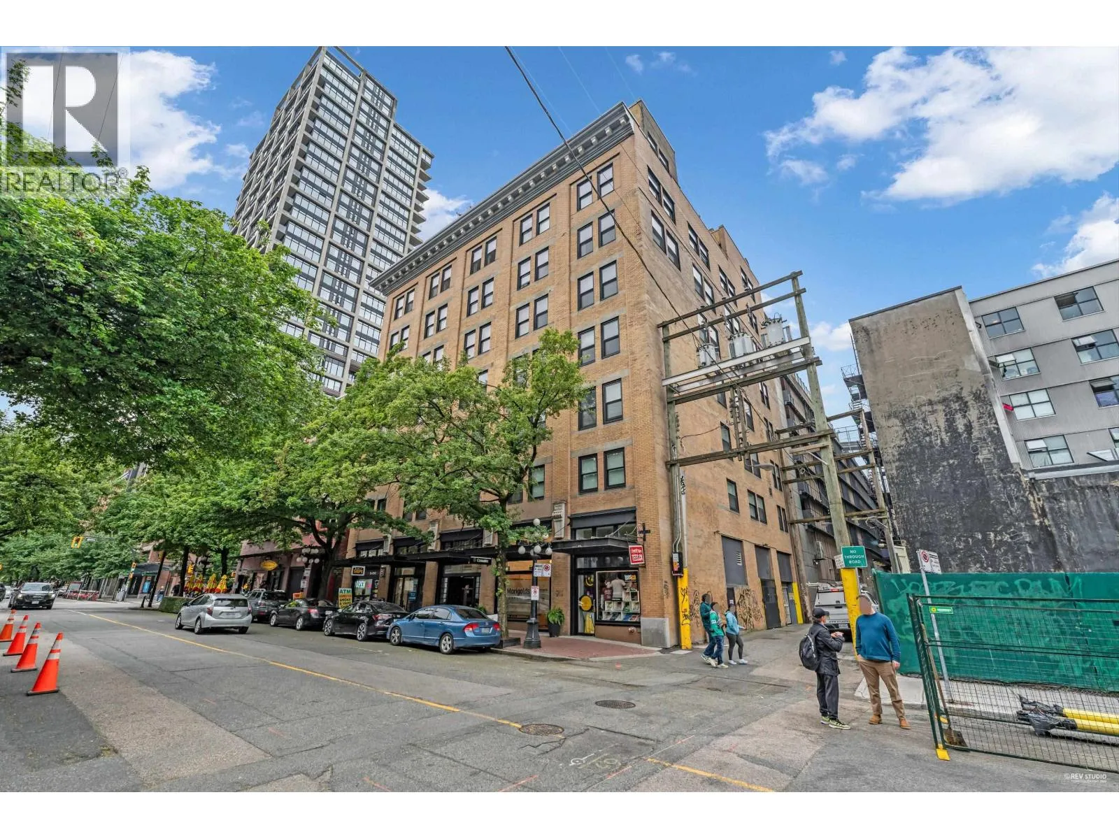 Abbott place beautifully blends Gastown's historial charm with modern urban living. Nestled in the heart of Gastown, one block from popular lively Water Street and close to West Cordova, it's a stone throw from top cafes, galleries, restaurants and shops! This home is tucked in on a beautiful tree lined street, located near cultural spots, Vancouver film school, SFU contemporary arts school, dr.sun yat-sen garden and many more. Updates include In-suite laundry, newly installed storage system, Murphy bed, smart electronic blind system, lighting and fresh new paint. Walk Score 97/100 and a mere 6min walk to Waterfront station. Take a stroll to Canada Place, Coal Harbour, Financial District, Stanley Park! The building and unit are both well maintained and ready to be moved in! (id:27476)