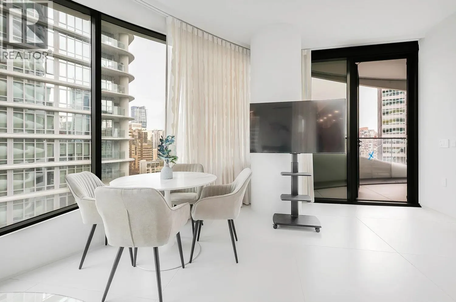 Iconic Butterfly by Westbank, designed by Bing Thom Architects. Brand-new 2 bed, 2 bath with 990 sq.ft. interior + 140 sq.ft. balcony showcasing stunning views mountains, Stanley Park & city. High-end Italian kitchen with Miele appliances, large porcelain tile flooring, eucalyptus veneer entry, and curved glass walls with floor-to-ceiling drapery. LEED Gold certified for sustainability. Exceptional amenities: 24-hr concierge, 50m lap pool, rooftop pools, gym & more. Includes 1 parking & 1 storage. A rare opportunity to own in Vancouver´s most visionary building. (id:27476)