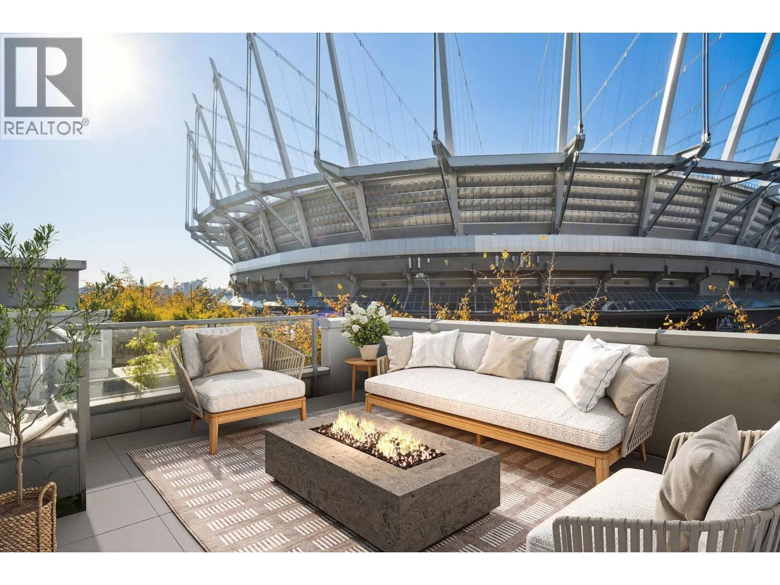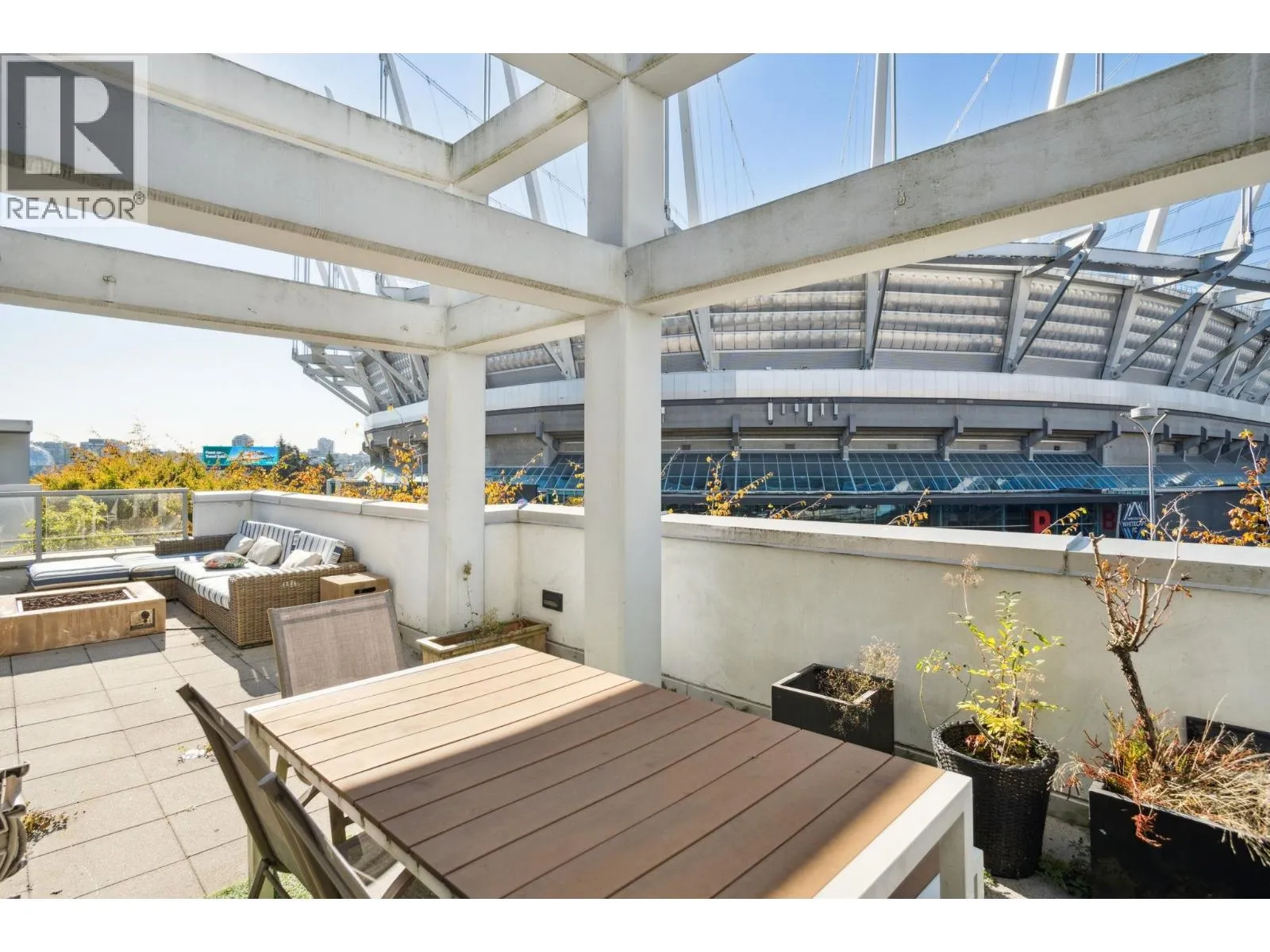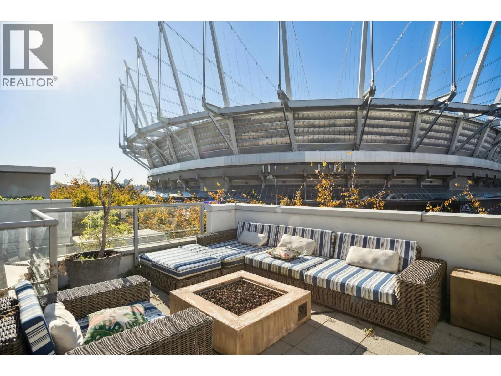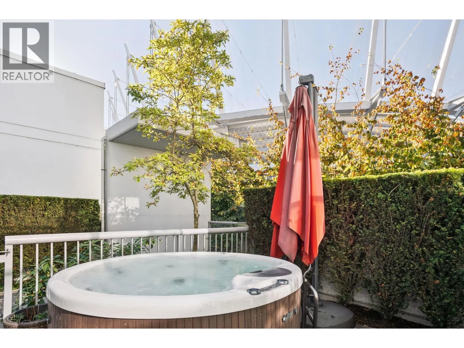This private, corner townhome is a true modern-day retreat. Thoughtfully renovated with sleek, contemporary finishings, it exudes style and comfort in every detail. Bright and inviting, the home speaks for itself - but the outdoor spaces take it to another level. Enjoy three distinct outdoor experiences: a lush, private garden entrance; a serene patio off the primary bedroom complete with your own private hot tub; and a massive 500+ square ft south-facing rooftop deck for sunset dinners and lively gatherings in the glow of BC Place's gorgeous lights. All this just steps from sky train, restaurants, entertainment, Rogers Arena, and boutique shops. A rare blend of city living and private sanctuary close to all the city's best offerings! OPEN SUN NOV 16 2-4. (id:27476)