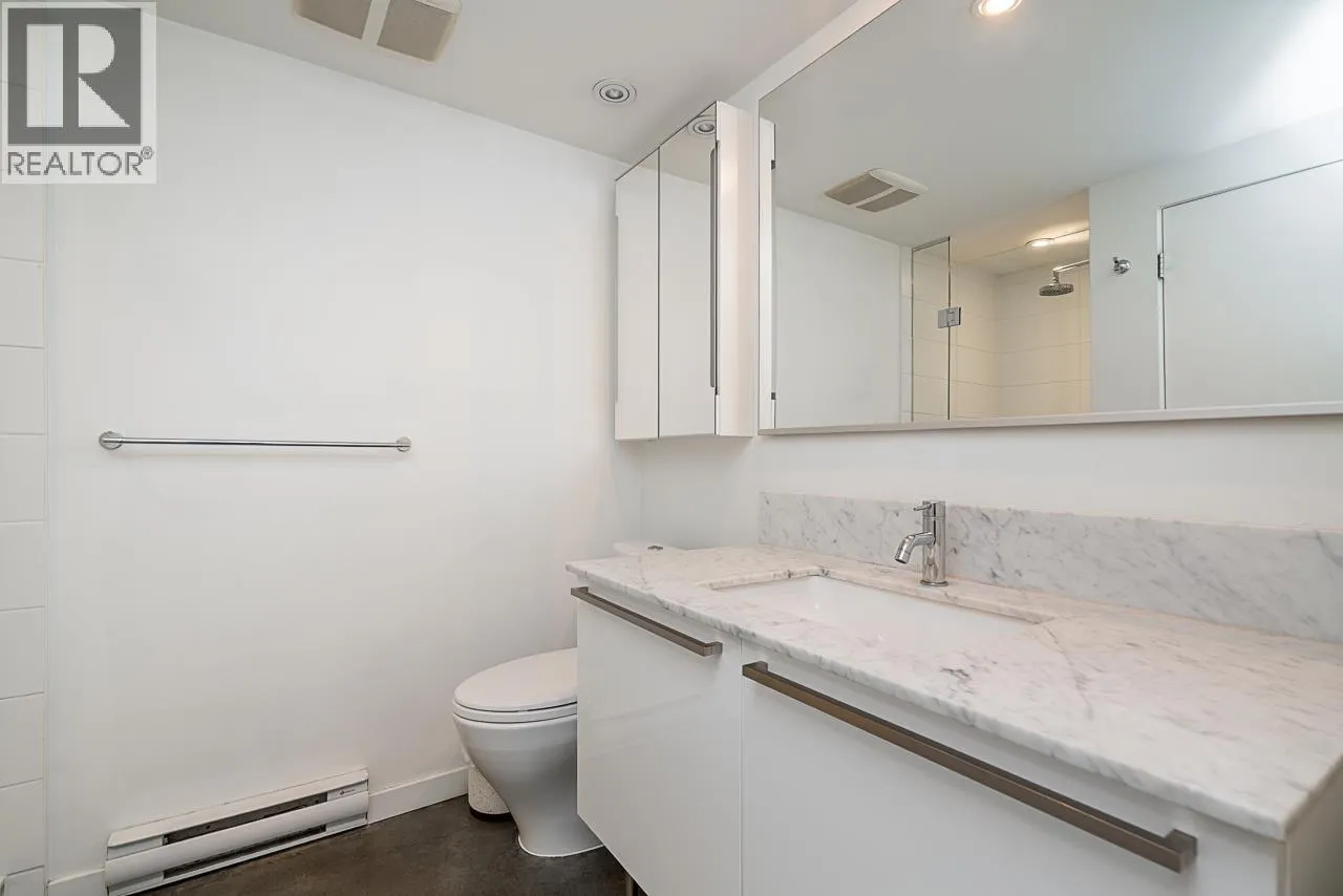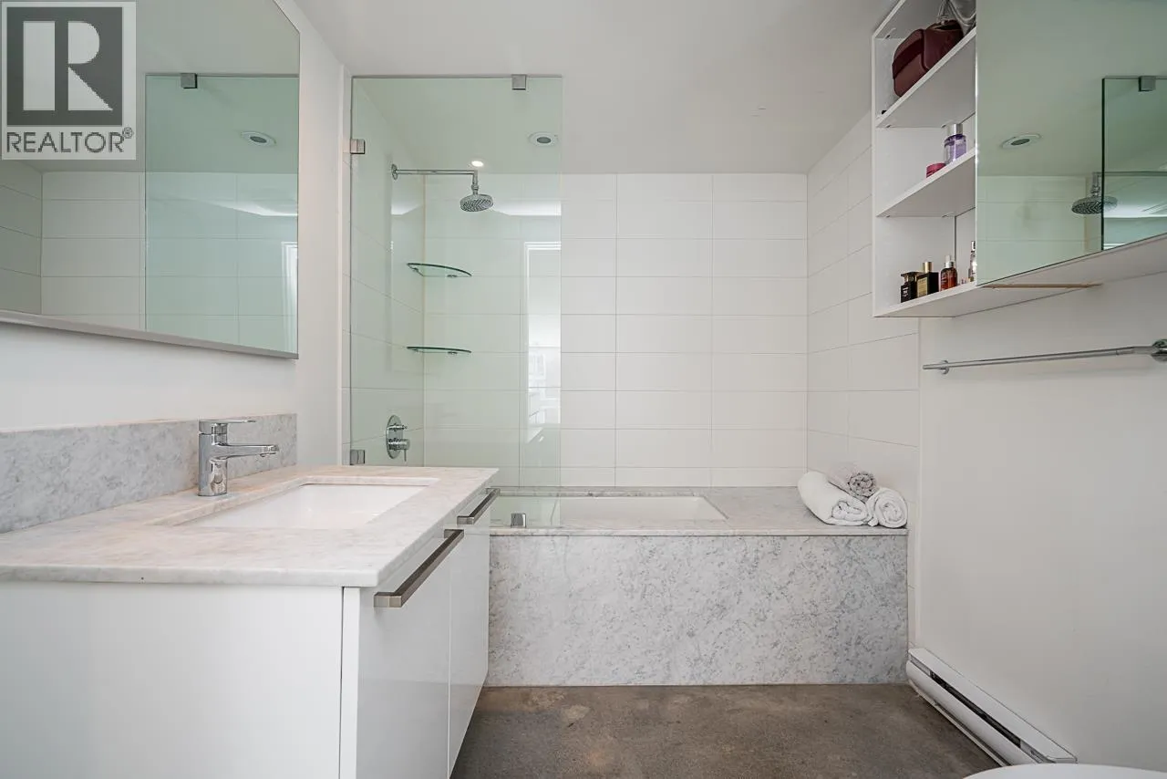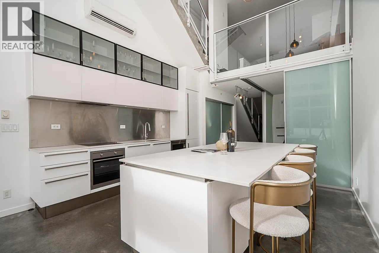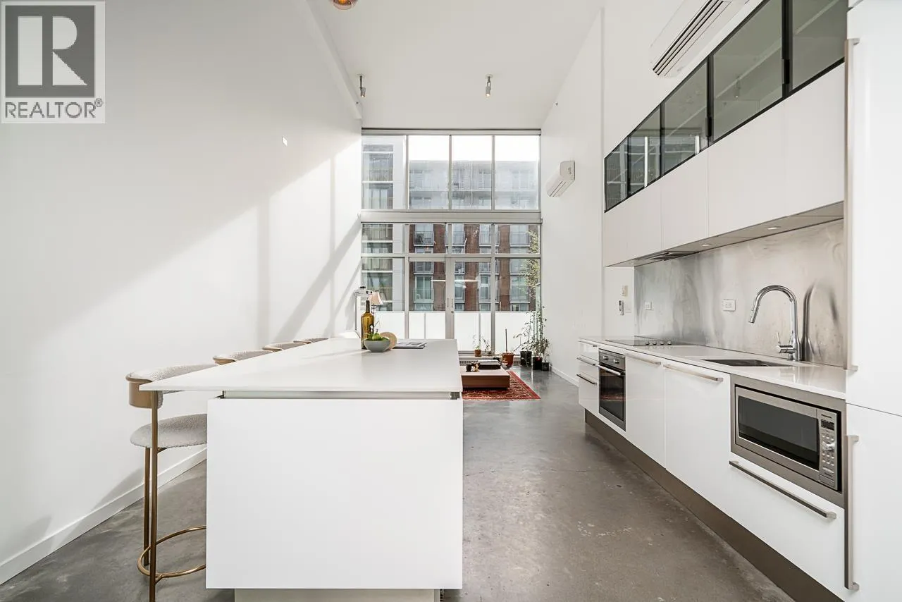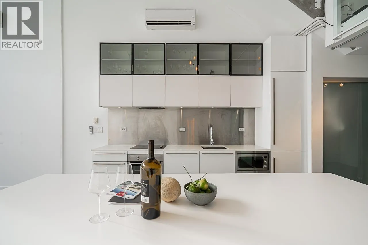 This rare 2 bedroom 2 bathroom penthouse loft, nestled in the historic Paris Block Building in Gastown, offers a perfect blend of heritage charm and modern elegance. Developed by the Award winning Salient Group, this spacious unit boasts floor to ceiling windows that flood the interior with natural light, soaring 17 foot ceilings. Enjoy panoramic city and mountain vistas from your private rooftop patio, interior features upgraded sleek cabinetry, air conditioning, a stainless steel chef's kitchen, and abundant of storage. With 1 parking spot included and a well-managed strata. Live in Gastown with a trendy food and drink scene that includes chic cocktail lounges and restaurants, as well as indie art galleries and decor stores set in beautifully preserved Victorian buildings. (id:27476)