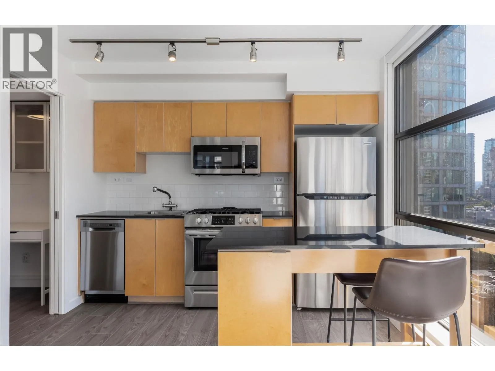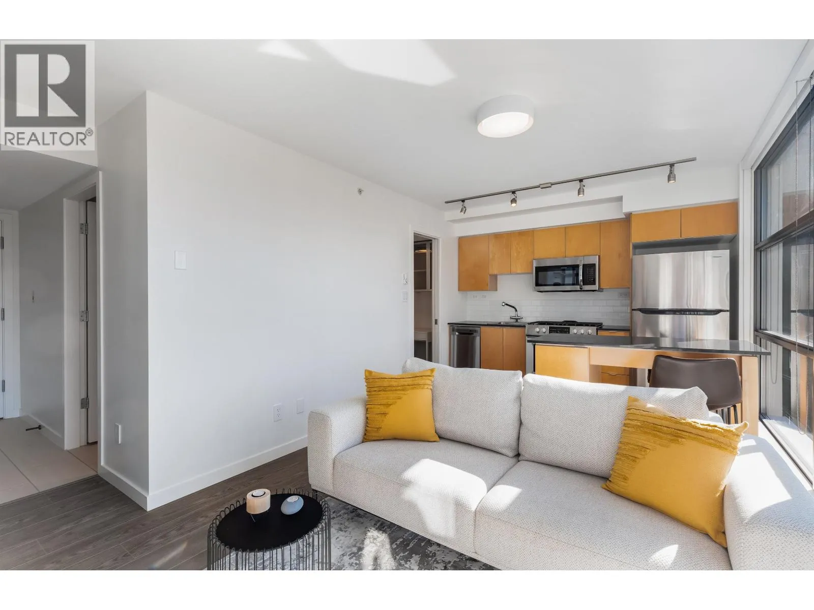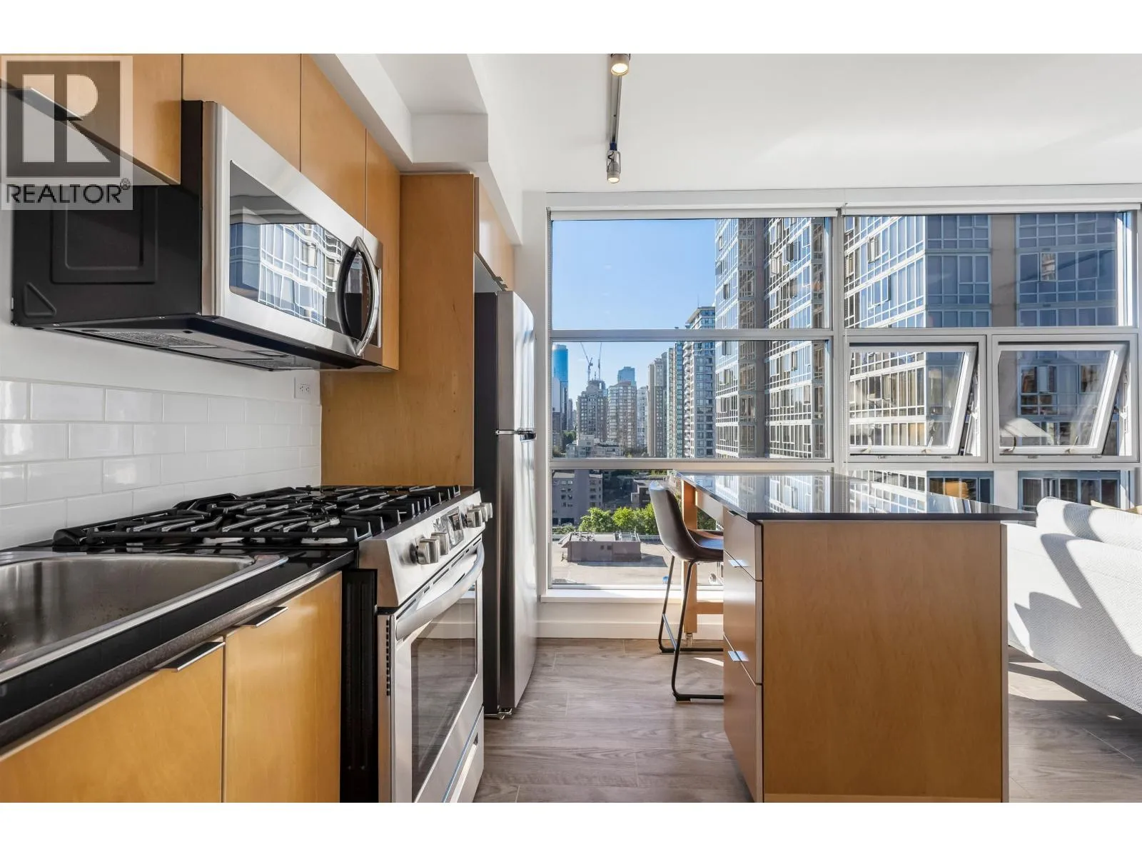 Welcome to Nova by Bosa Developments - An exceptional corner unit in the heart of Yaletown - This one bed + den unit offers a perfect blend of modern comfort & city convenience, just steps away from False Creek & the vibrant Yaletown Hub. Enjoy abundant natural light through floor-to-ceiling windows, highlighting the spacious plan. The kitchen features sleek quartz countertops + updated stainless steel appliances. The generously sized bedroom & versatile den provide the perfect space for both restful nights & a productive home office. Take in stunning city views from your living room or the covered balcony while sipping your morning coffee. Nova offers amenities, including a bike room, hot tub, steam room, fitness center, guest suite, & party room. One Parking (EV Ready) + One Locker. (id:27476)