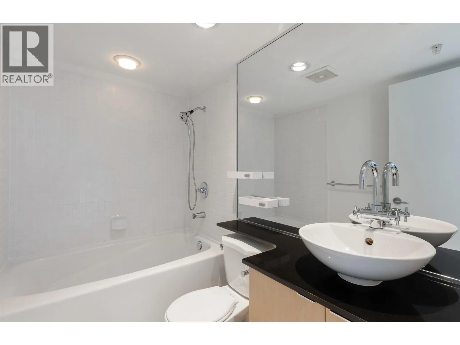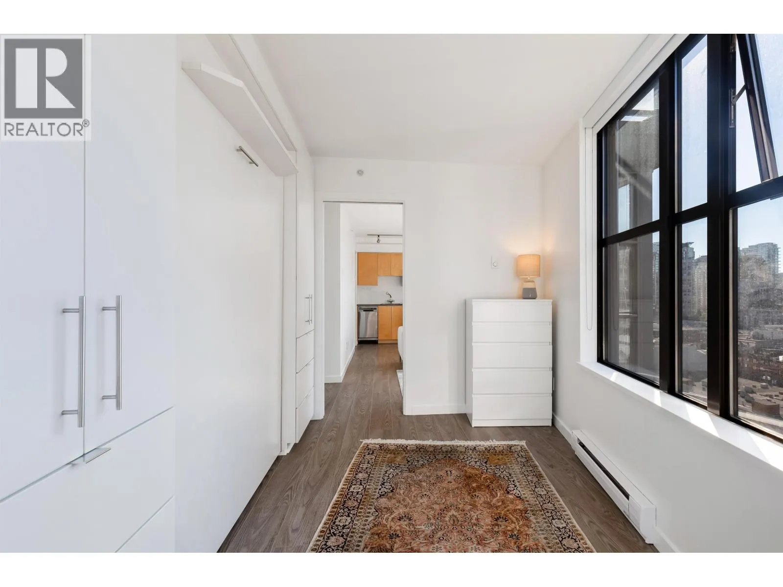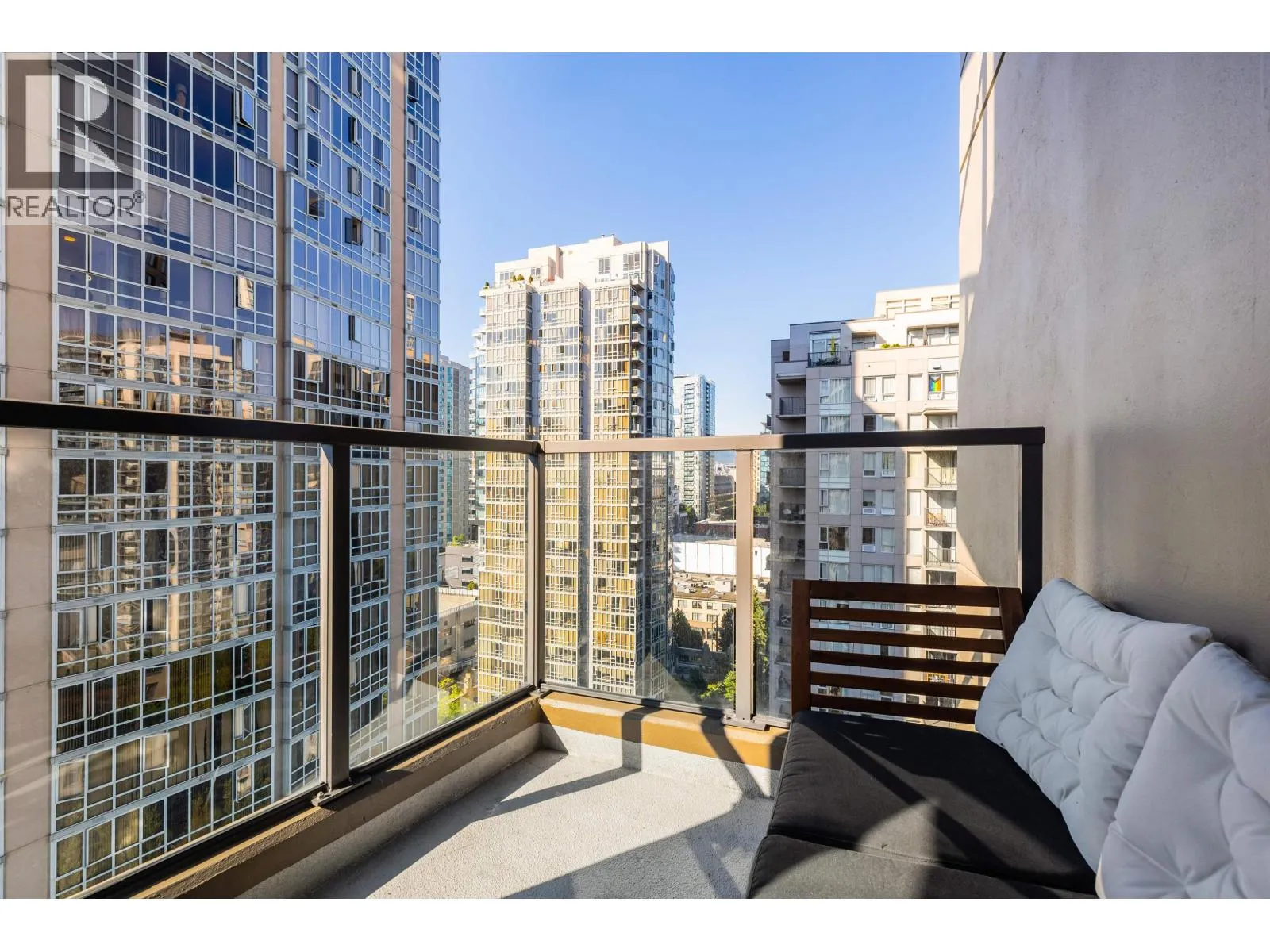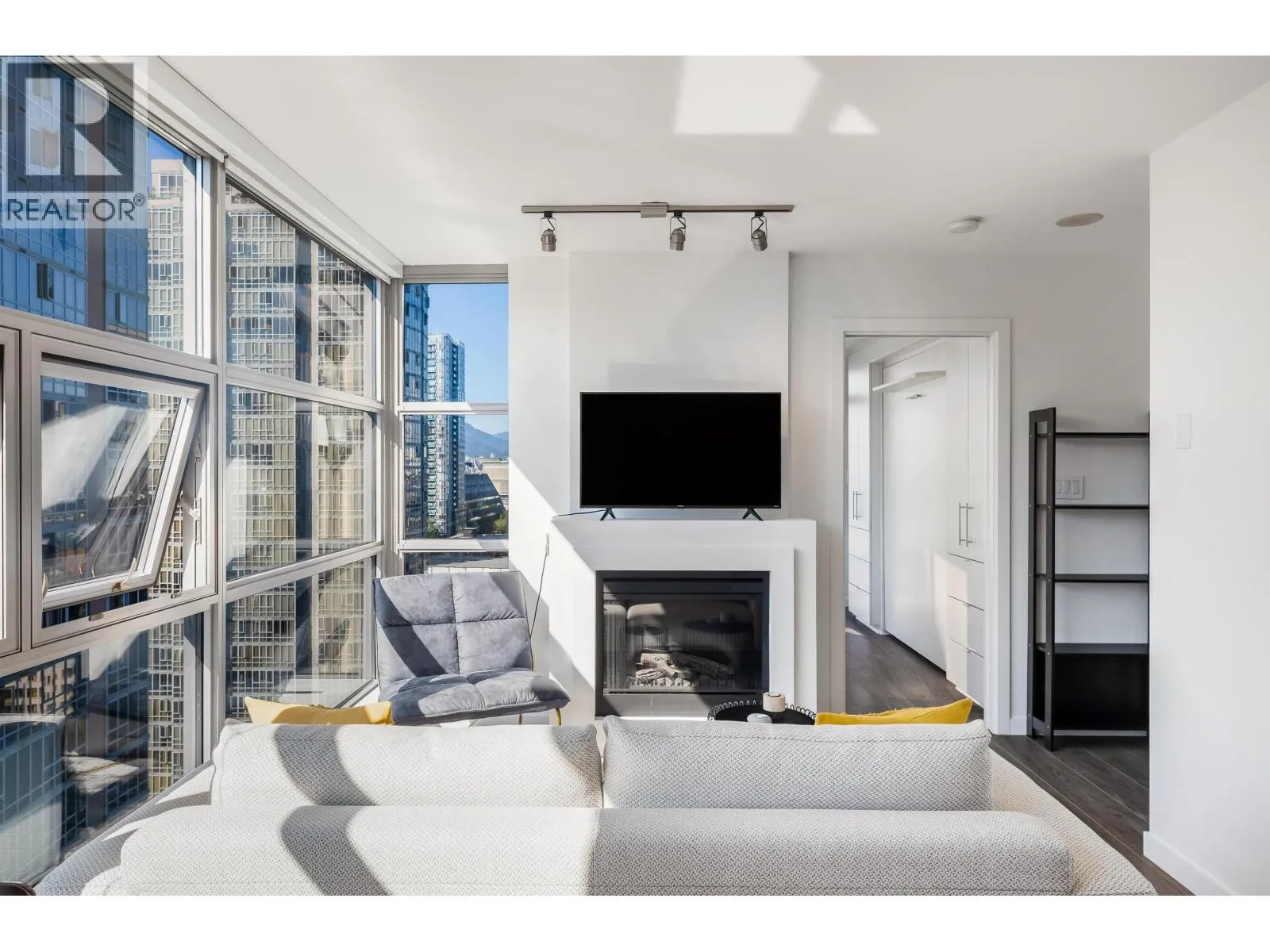 Welcome to Nova by Bosa Developments - An exceptional corner unit in the heart of Yaletown - This one bed + den unit offers a perfect blend of modern comfort & city convenience, just steps away from False Creek & the vibrant Yaletown Hub. Enjoy abundant natural light through floor-to-ceiling windows, highlighting the spacious plan. The kitchen features sleek quartz countertops + updated stainless steel appliances. The generously sized bedroom & versatile den provide the perfect space for both restful nights & a productive home office. Take in stunning city views from your living room or the covered balcony while sipping your morning coffee. Nova offers amenities, including a bike room, hot tub, steam room, fitness center, guest suite, & party room. One Parking (EV Ready) + One Locker. (id:27476)