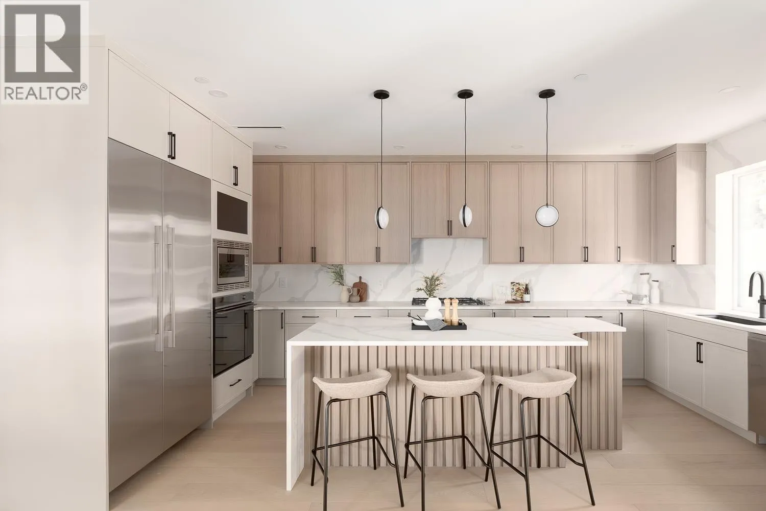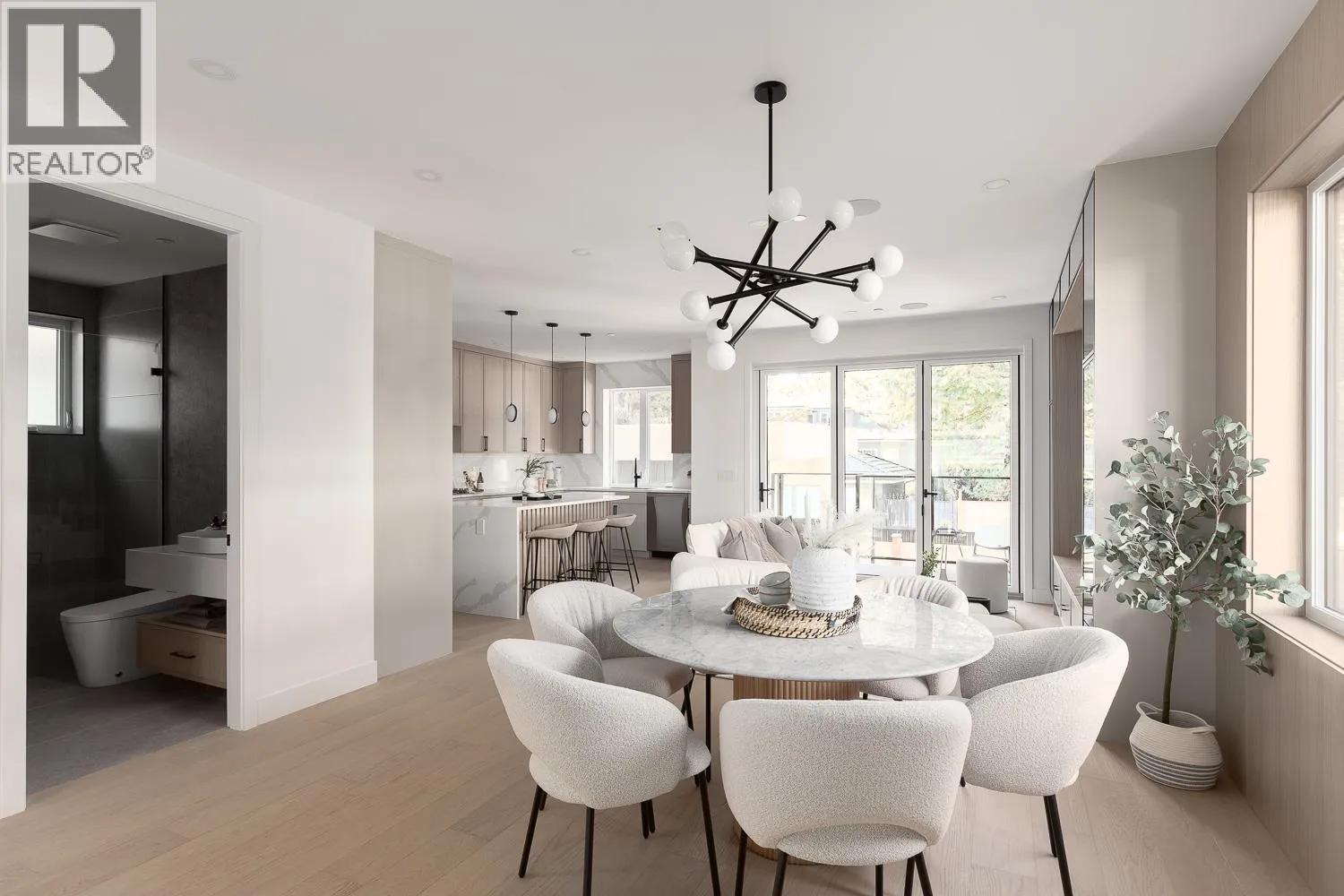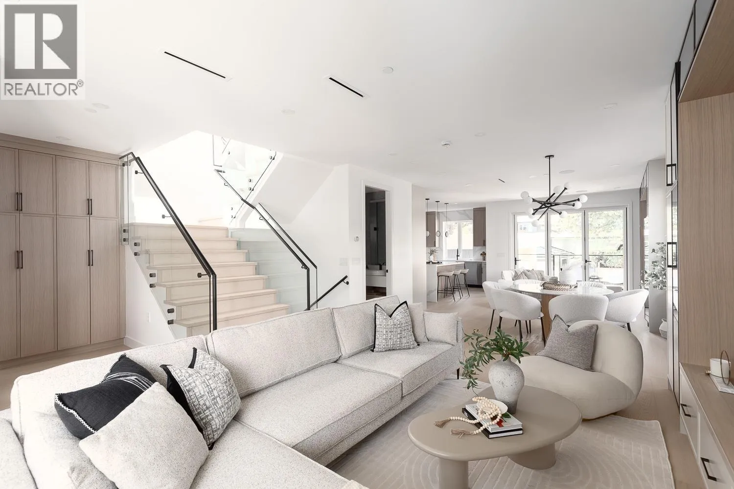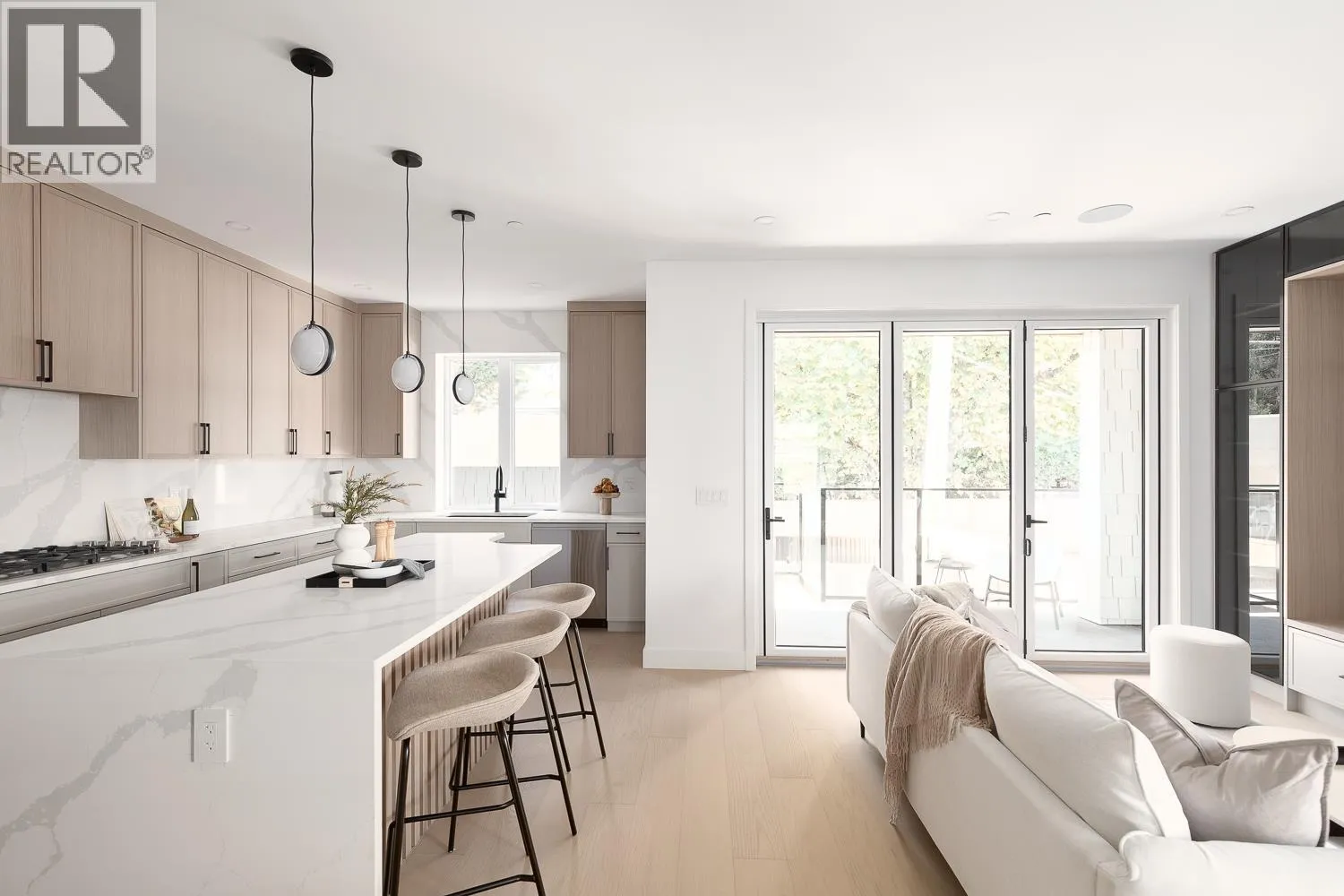 This fully detached carriage home offers over 2,600sf across three spacious levels with no shared walls, providing true single-family living in South Granville. The main floor boasts over 900sf with full-sized living, dining, and family rooms: ideal for entertaining or everyday life. A large kitchen anchors the space with access to the rear yard deck. Upstairs are three large bedrooms, including a massive primary with walk-in closet and a luxe 5-piece ensuite. The lower level is roughed in for a 2-bedroom suite or can be enjoyed as additional living space. Private 1-car garage included. Thoughtful layout and generous proportions make this home perfect for families or those needing room to grow. Radiant heat, A/C and located near top schools, parks, shops, restaurants, and transit. (id:27476)
