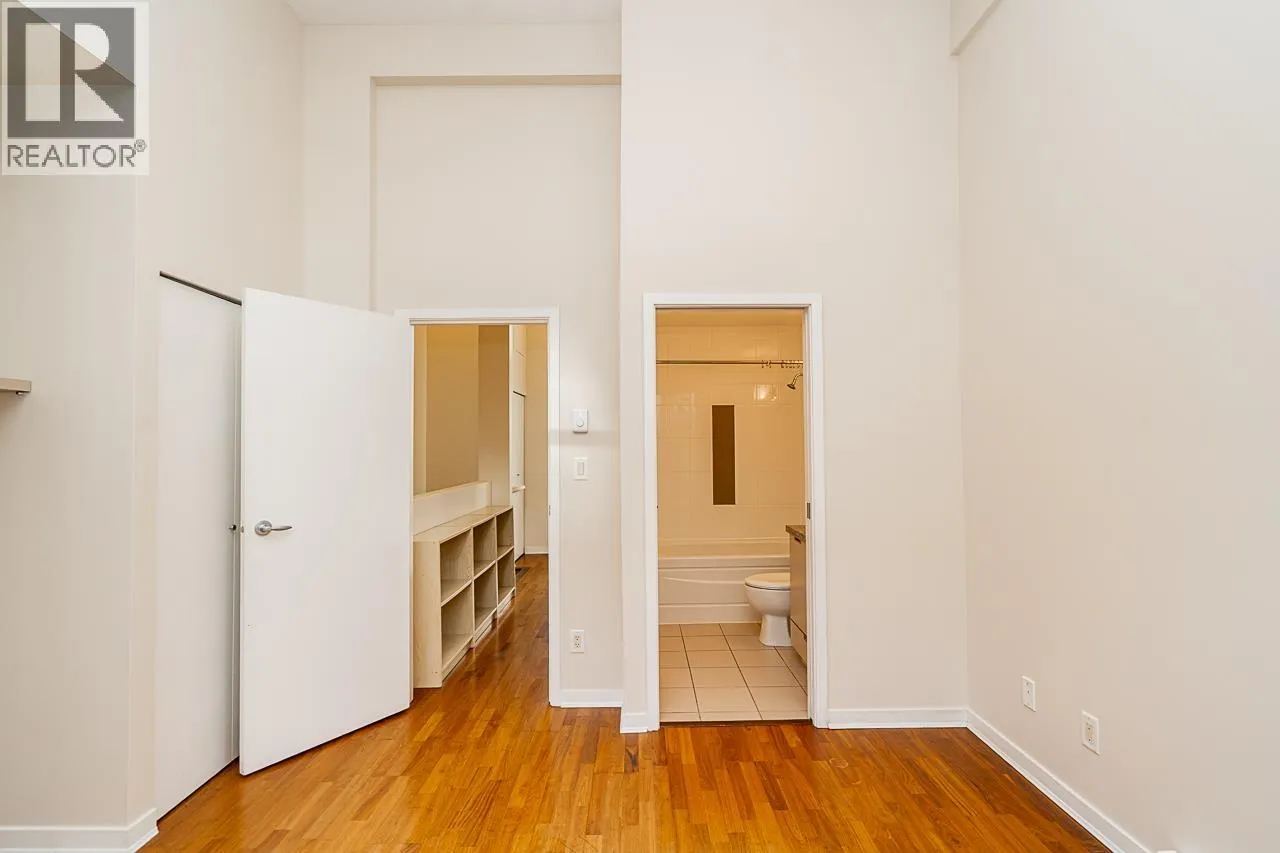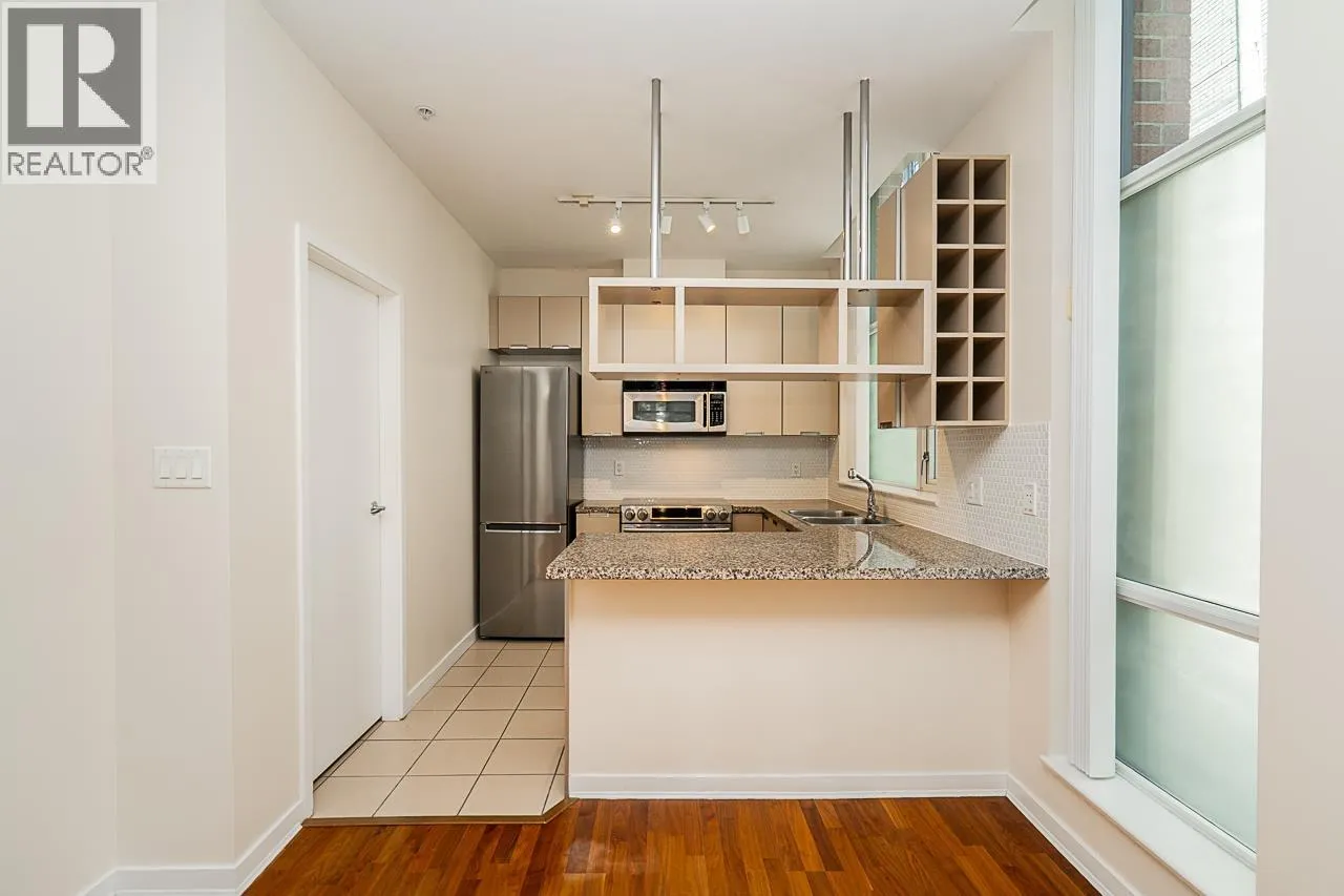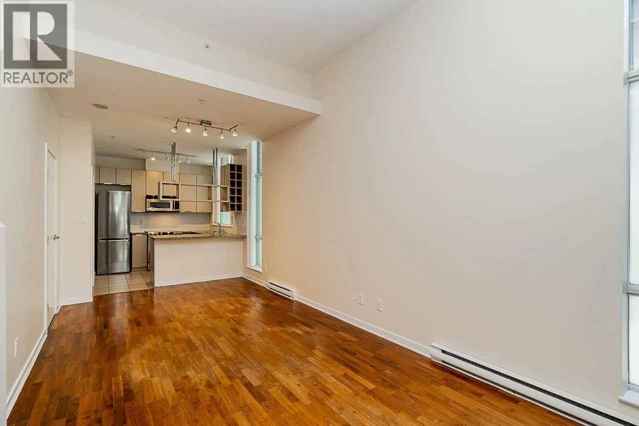 Two-level corner end-unit townhome in the heart of Downtown Vancouver, adjacent to Yaletown. Features include 11-ft ceilings, large windows, and nearly 100 sq.ft. of outdoor space. Main floor offers a kitchen with an open living/dining area, powder room, and flex/storage space. Upper level includes a large den with access to a quiet above-ground patio and a bedroom that accommodates a king bed with dual closets and a cheater 4-piece ensuite. Building amenities: 24-hour concierge, rooftop patio, fitness centre, meeting room, bike storage, and secure parking. Steps to restaurants, entertainment, sports venues, shops, and the seawall. (id:27476)