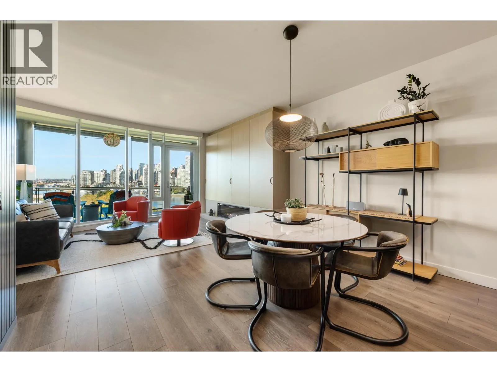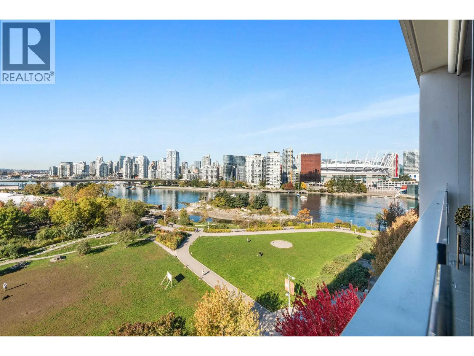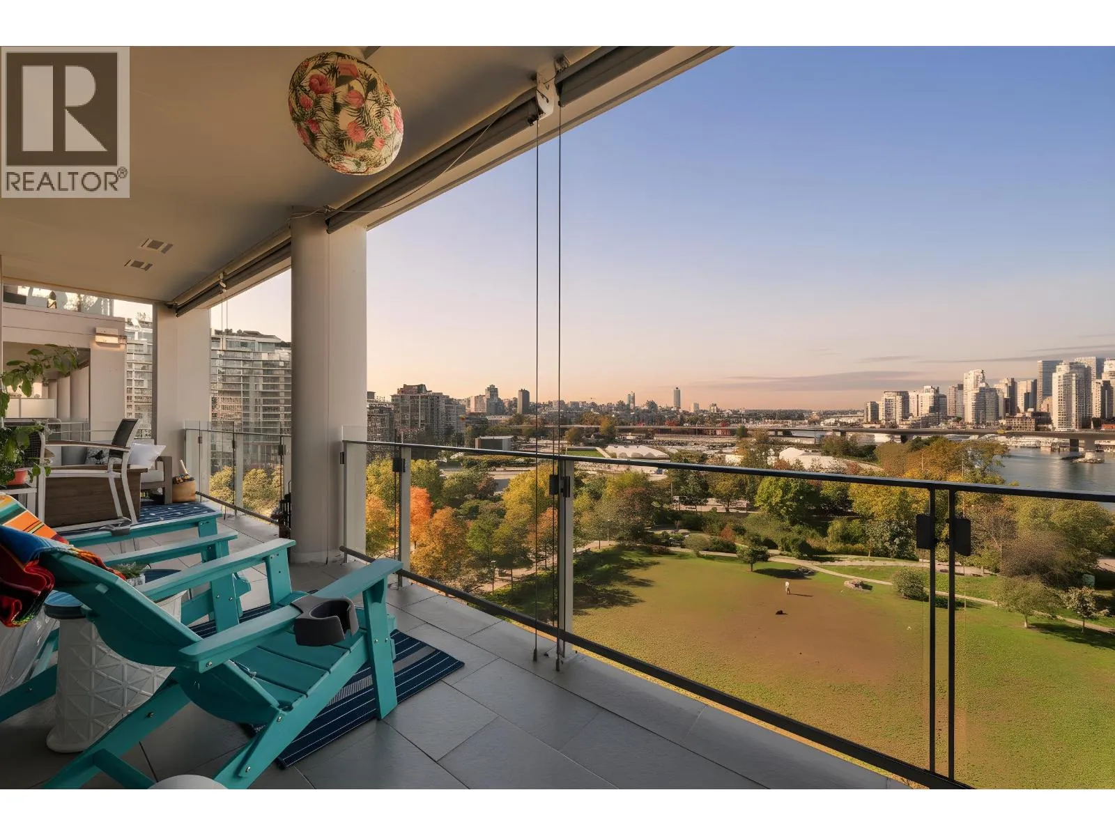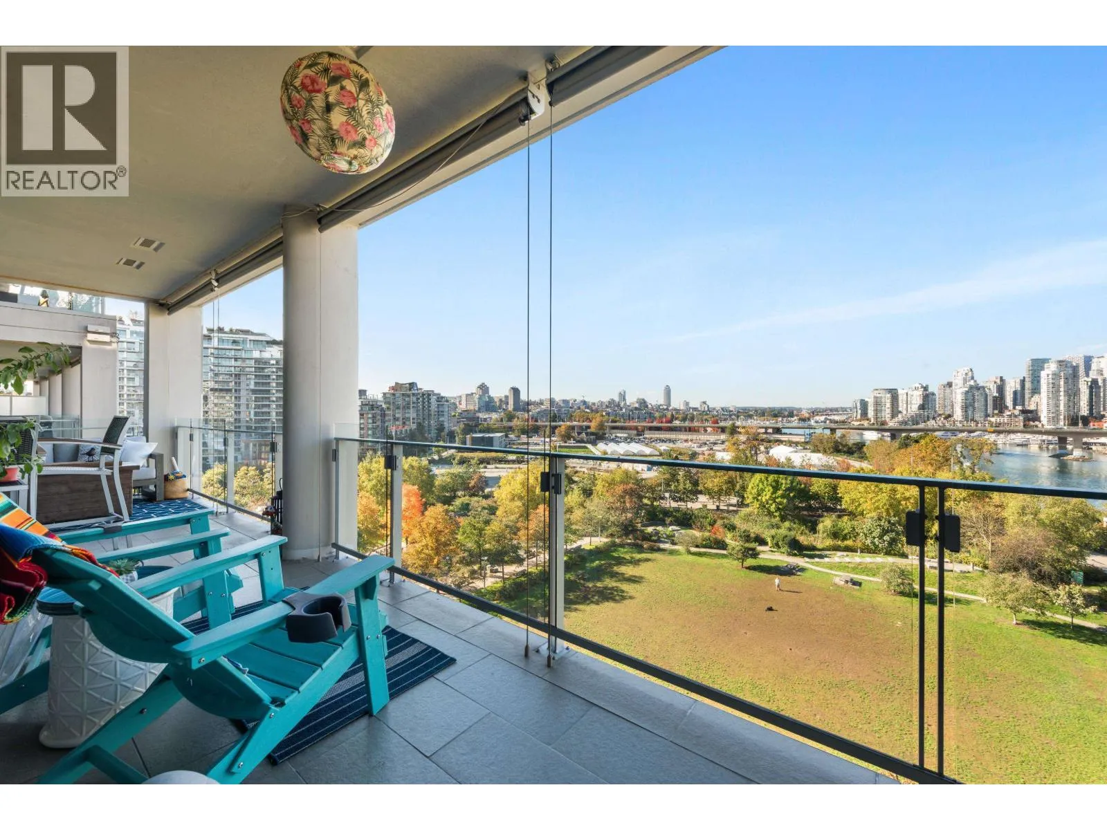 West-facing, fully renovated, 2 Bedroom, 2 Bathroom home & Coffee/bar room with large deck showcasing unobstructed water & city views, in Arthur Erickson's iconic THE BRIDGE. Reimagined by PURE Design, this residence features; Café induction cooktop, Miele smart & convection ovens, Blomberg fridge, Bosch dishwasher, Faber European hood-fan, Custom Kitchen cabinetry, Dekton waterfall peninsula, Quartz backsplash & Blanco sink/faucet. Coffee/bar room with LG fridge/freezer, ample storage & designer cabinets with metal doors. Elegant touches include electric fireplace with limestone surround, lime-washed walls, designer lighting, new flooring, California Closets throughout & Murphy bed in 2nd Bedroom. Includes a large PRIVATE storage room with 110 power, 2nd locker & 1 parking stall. Open House -Nov 16th, Sunday @ 1 -3pm (id:27476)