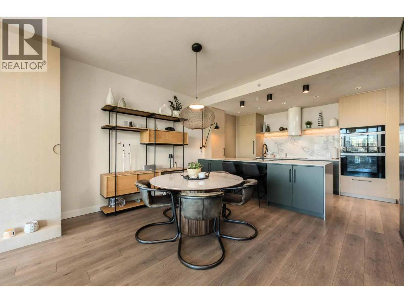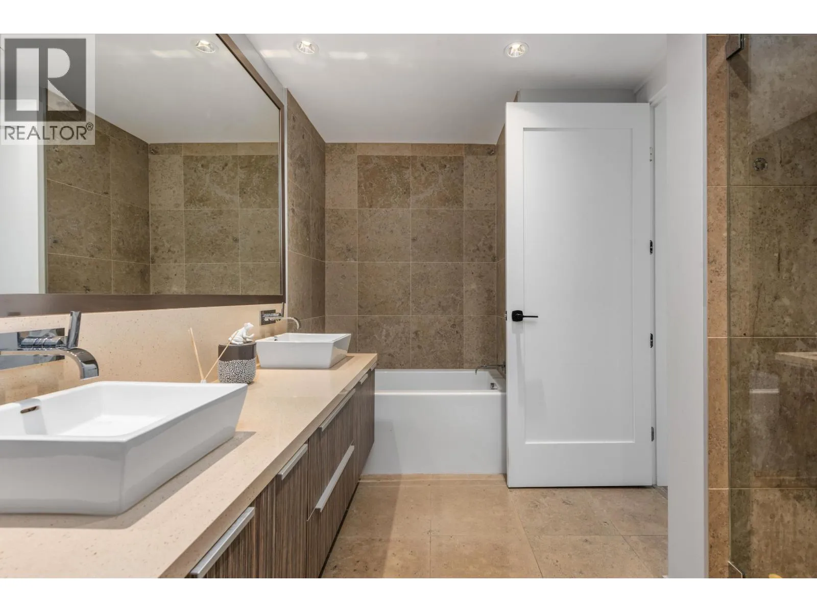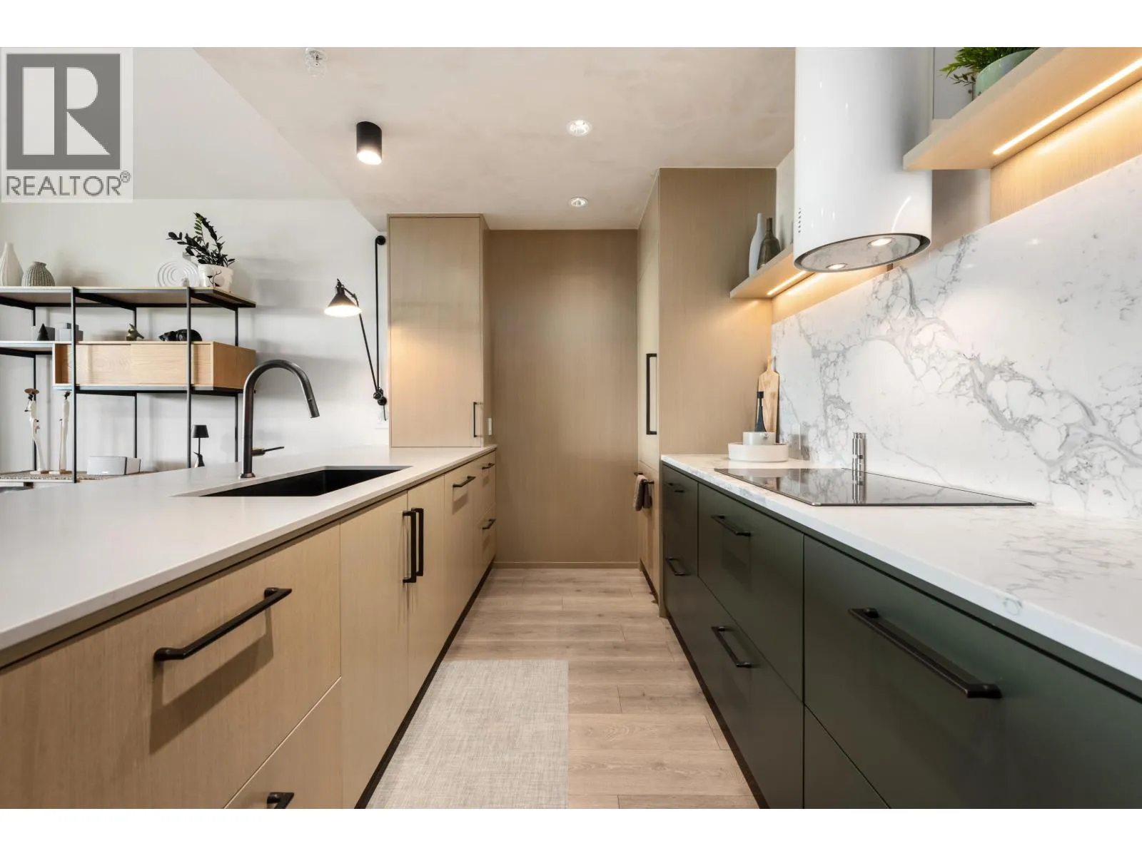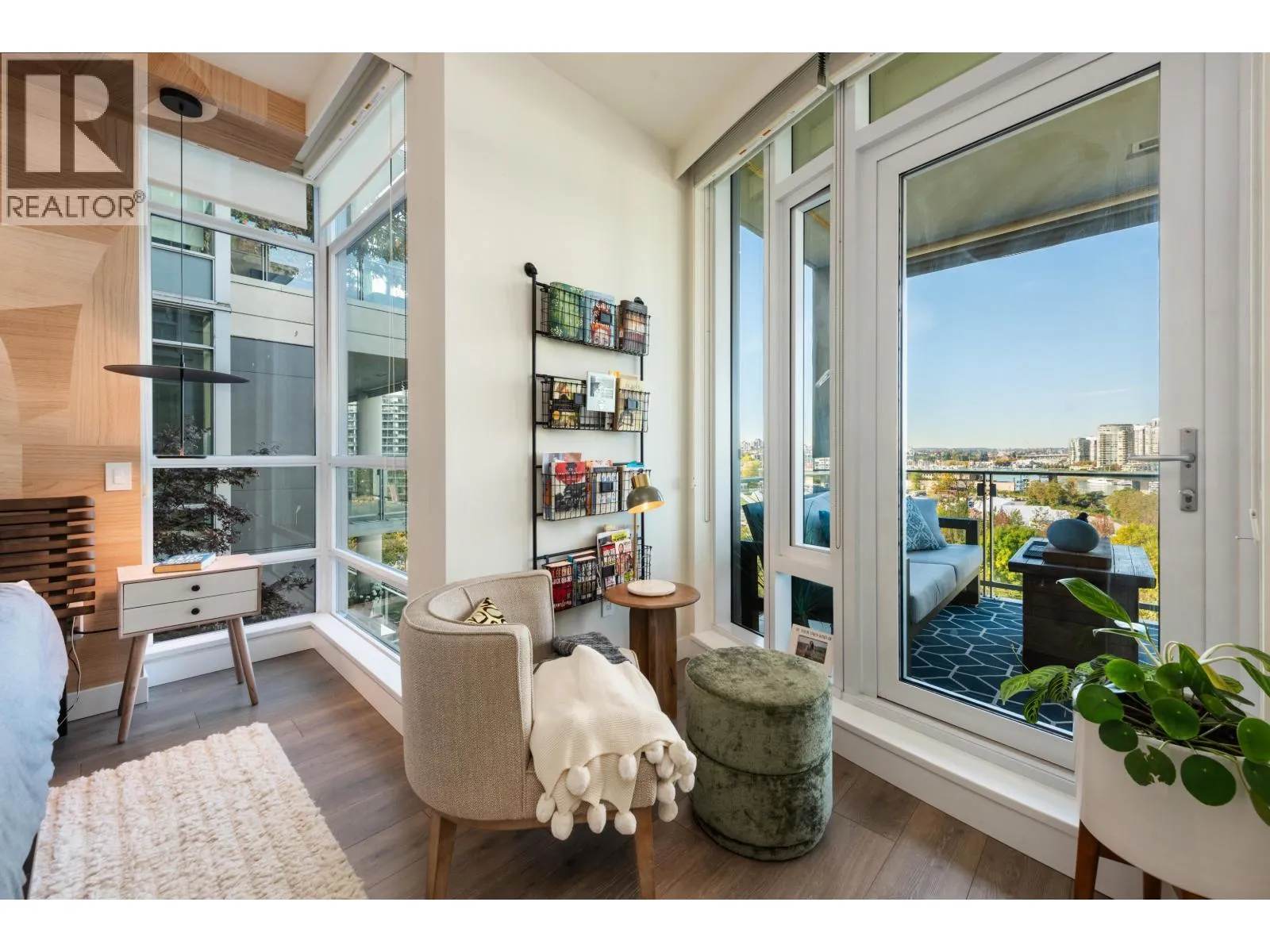 West-facing, fully renovated, 2 Bedroom, 2 Bathroom home & Coffee/bar room with large deck showcasing unobstructed water & city views, in Arthur Erickson's iconic THE BRIDGE. Reimagined by PURE Design, this residence features; Café induction cooktop, Miele smart & convection ovens, Blomberg fridge, Bosch dishwasher, Faber European hood-fan, Custom Kitchen cabinetry, Dekton waterfall peninsula, Quartz backsplash & Blanco sink/faucet. Coffee/bar room with LG fridge/freezer, ample storage & designer cabinets with metal doors. Elegant touches include electric fireplace with limestone surround, lime-washed walls, designer lighting, new flooring, California Closets throughout & Murphy bed in 2nd Bedroom. Includes a large PRIVATE storage room with 110 power, 2nd locker & 1 parking stall. Open House -Nov 16th, Sunday @ 1 -3pm (id:27476)
