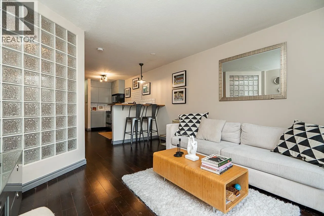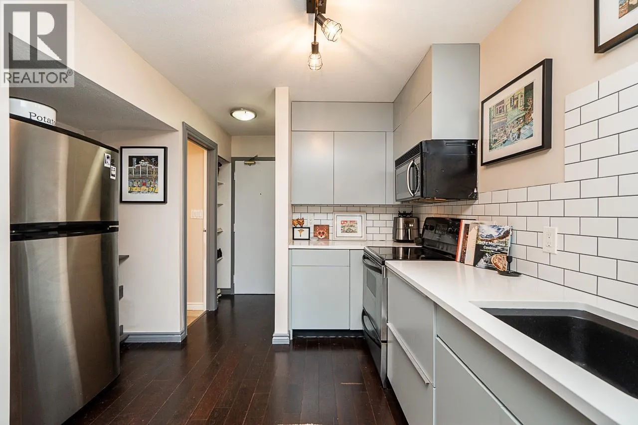 Welcome to this great 1 bed 1 bath Nicely updated Fully rainscreened perfect for entertaing unit. S/S appliances, New quartz counter tops, New backsplash, New Washer/Dryer, Newly painted, Walk in closet, office space and last but not least, almost 250sqft of private outdoor space. Enjoy the outdoors all year round with a peekaboo view of the ocean. Rainscreened in 2004 (Hardi Plank and Vinyl) this building is in great shape. Situated on a peaceful quiet street and in walking distance of Restaurants, cafes, shopping and parks. Parking, Storage but No dogs. Don't miss out as this is one of the special ones. (id:27476)