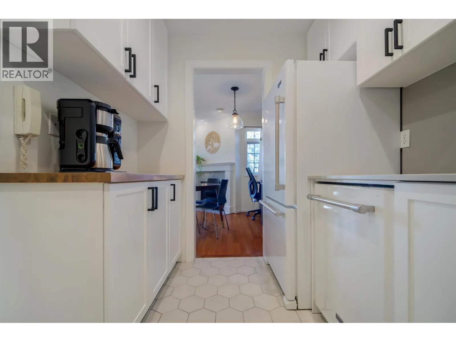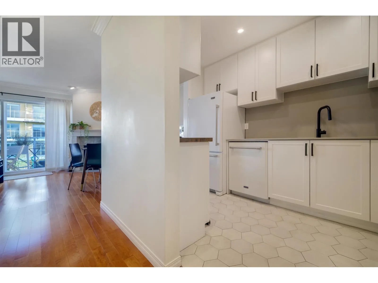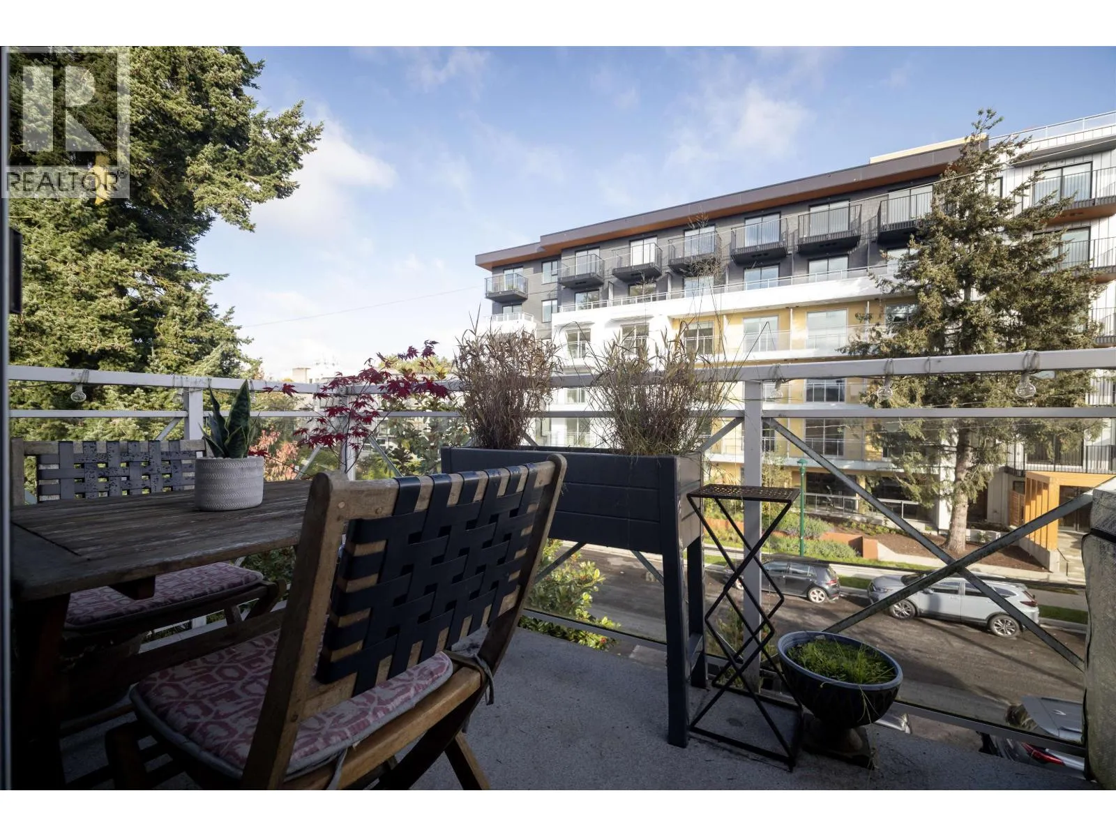 You´ve been scrolling condos that all blur together-until this one stops you cold. Top-floor corner with a skylight that floods the home in natural light. The kitchen? A 2024 showpiece-custom soft-close cabinetry, butcher-block accents, quartz counters, matte-black fixtures + new floors. Both bedrooms are huge, laundry is side-by-side laundry, you get 2 large entryway closets with built in organizers + a gas fireplace included in your strata fees. Step onto your private balcony above a quiet tree-lined street. Building is fully rainscreened, re-roofed + re-piped. Just steps from groceries, cafés + cocktail spots along Commercial Drive, plus the Trout Lake Farmers Market + SkyTrain for an easy DT commute. This is East Van grown-up-bright, bold, effortless. Watch the full video tour + book your showing today. (id:27476)