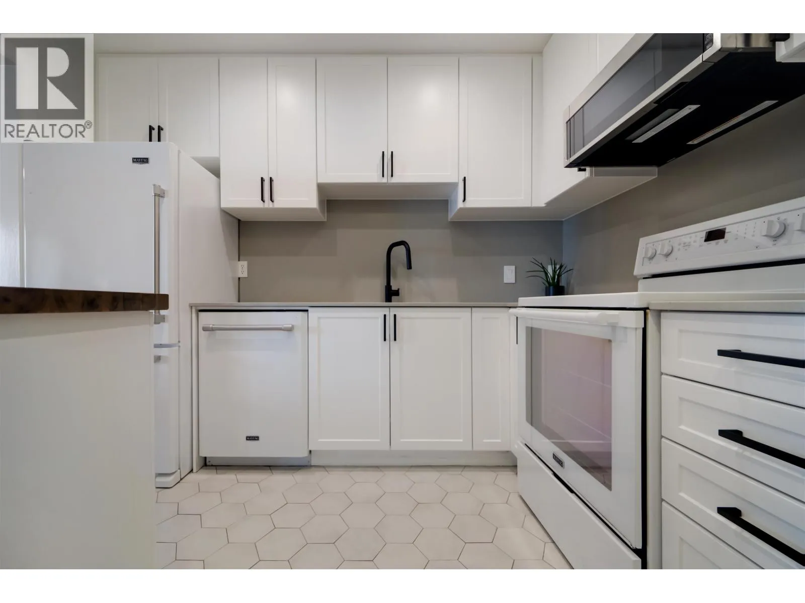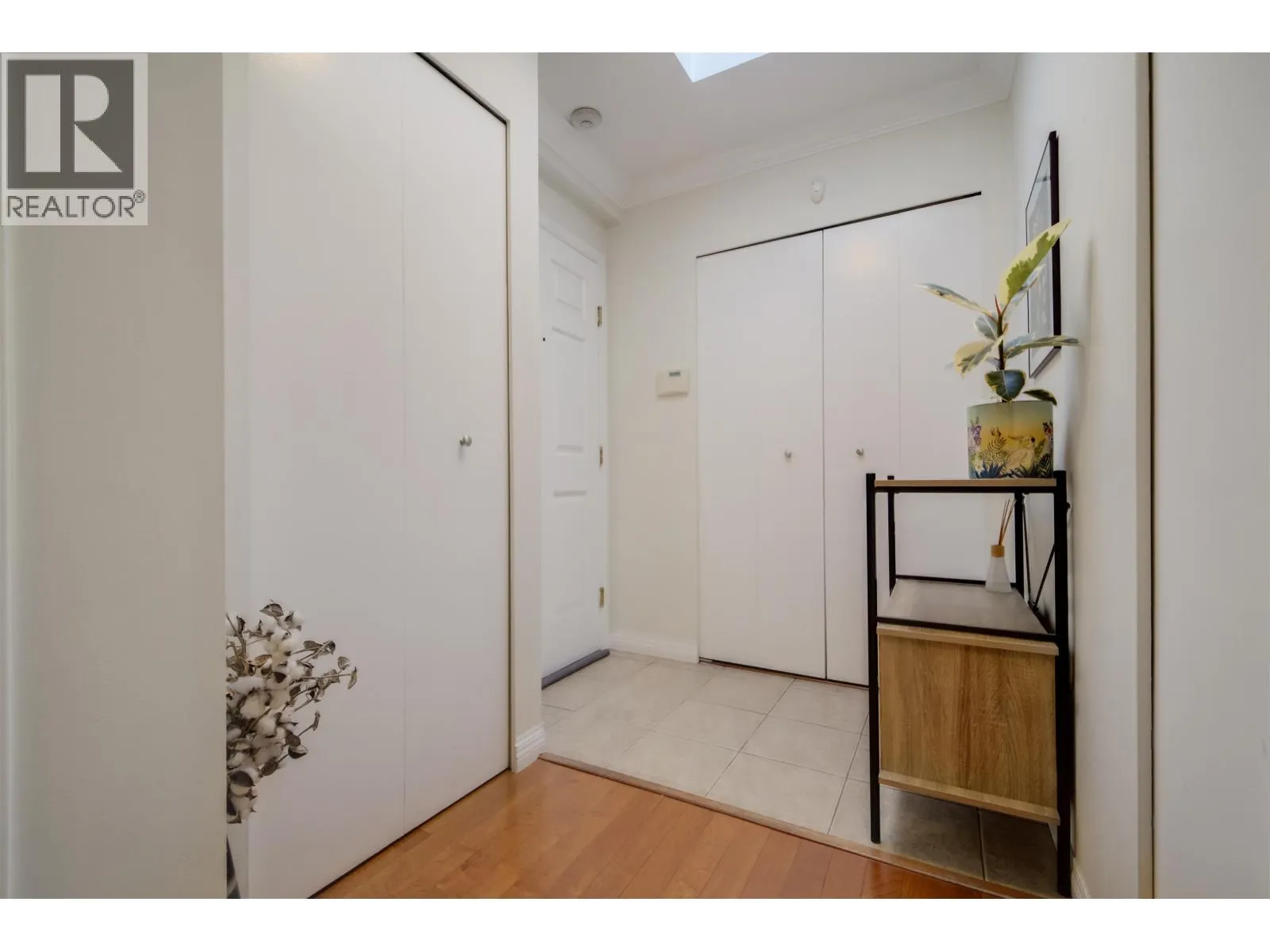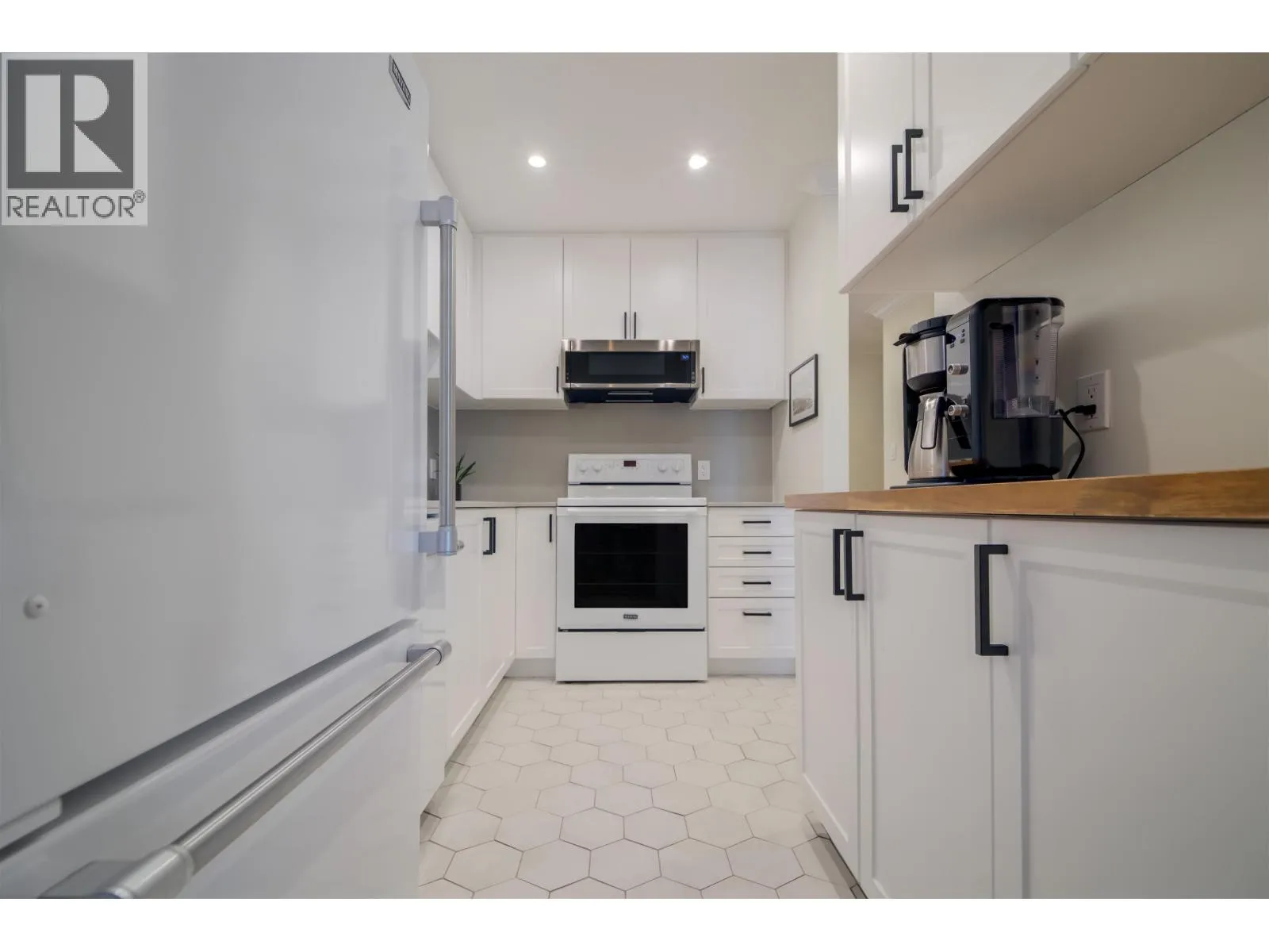 You´ve been scrolling condos that all blur together-until this one stops you cold. Top-floor corner with a skylight that floods the home in natural light. The kitchen? A 2024 showpiece-custom soft-close cabinetry, butcher-block accents, quartz counters, matte-black fixtures + new floors. Both bedrooms are huge, laundry is side-by-side laundry, you get 2 large entryway closets with built in organizers + a gas fireplace included in your strata fees. Step onto your private balcony above a quiet tree-lined street. Building is fully rainscreened, re-roofed + re-piped. Just steps from groceries, cafés + cocktail spots along Commercial Drive, plus the Trout Lake Farmers Market + SkyTrain for an easy DT commute. This is East Van grown-up-bright, bold, effortless. Watch the full video tour + book your showing today. (id:27476)