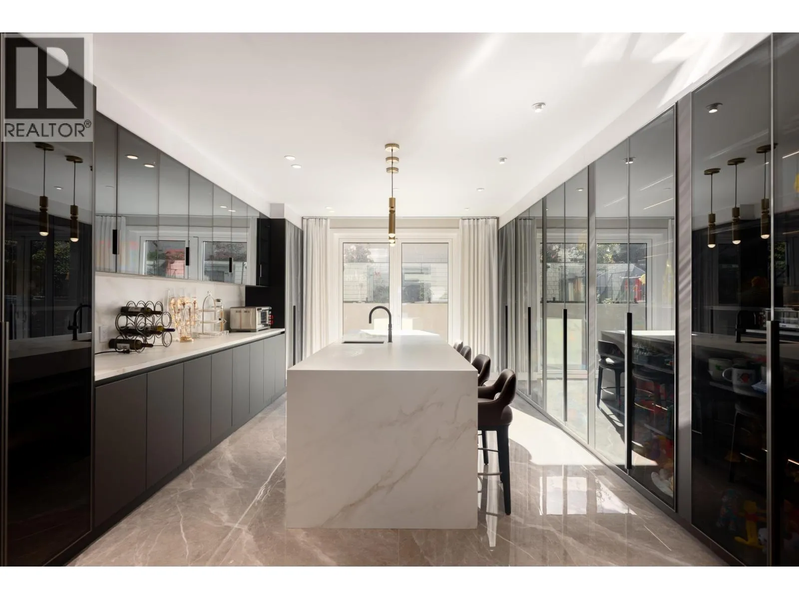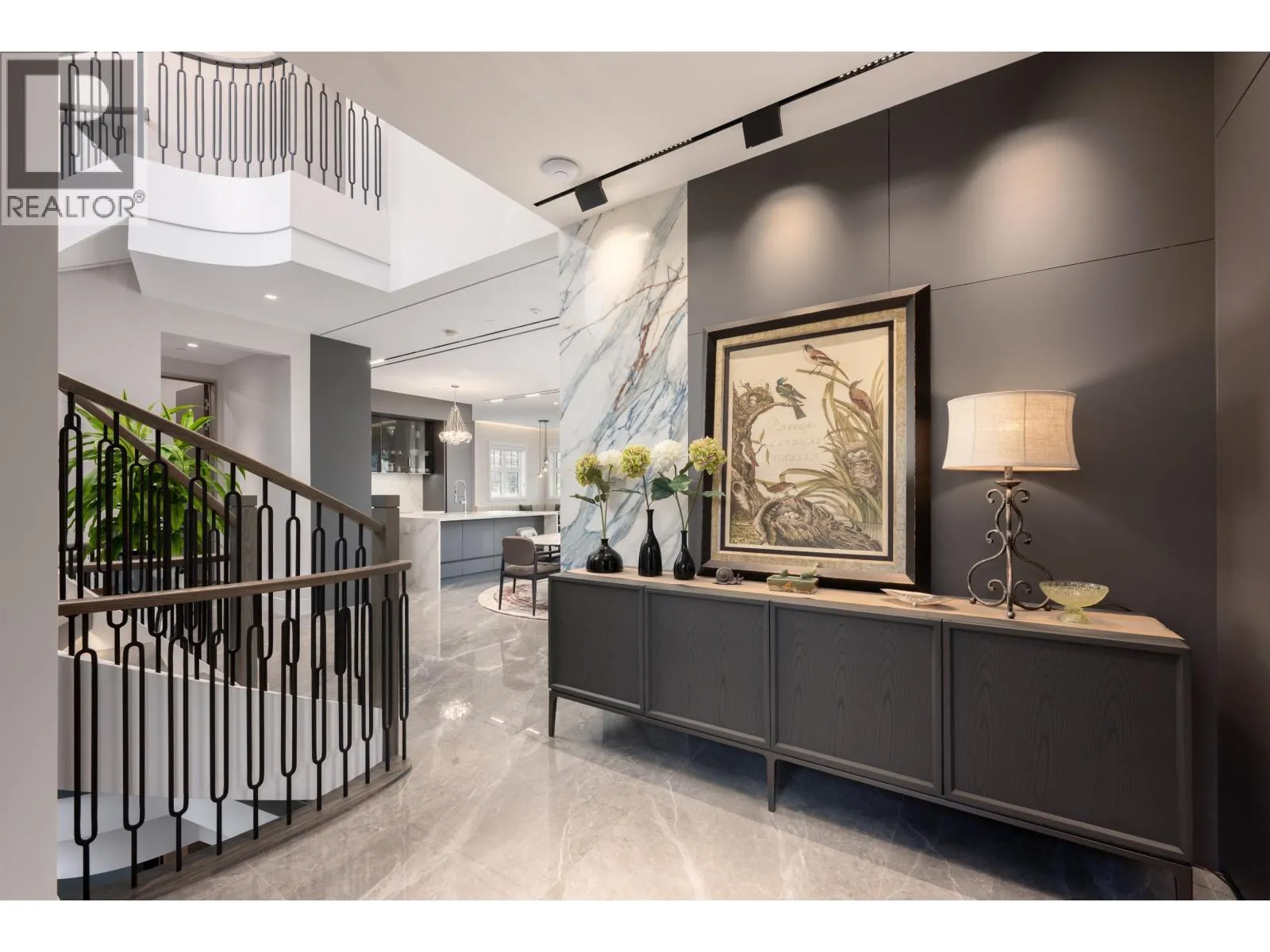 Custom built Formwerks masterpiece - large 63x130=8232 CORNER on W 34th @ Highbury. Elegant 5300sf (incl. 435sf L/W) offers superior design, materials & craftsmanship. High ceilings all 3 lvls. Open concept on main, Calacatta Gold marble feature wall with mist F/P. Great Room opens onto huge south-exp patio with O/D F/P. Main & Wok kitchens adorned with finest cabinetry & appl, built-in brkfst nook. Spiral stairs lead to 2nd floor with vaulted ceilings. Massive southern master suite with huge WIC & spa bath. Bsmt boasts a Zen tea area, wet bar, wine cellar, theatre & 2 bdrms. Built with steel i-beams, imported exterior stone, designer track lighting & fixtures, large Spanish marble slabs, zinc gutters, top-end plumbing fixtures in baths ... walk to St.Georges, Crofton, Dunbar Comm Cntr, Parks & Shops (id:27476)