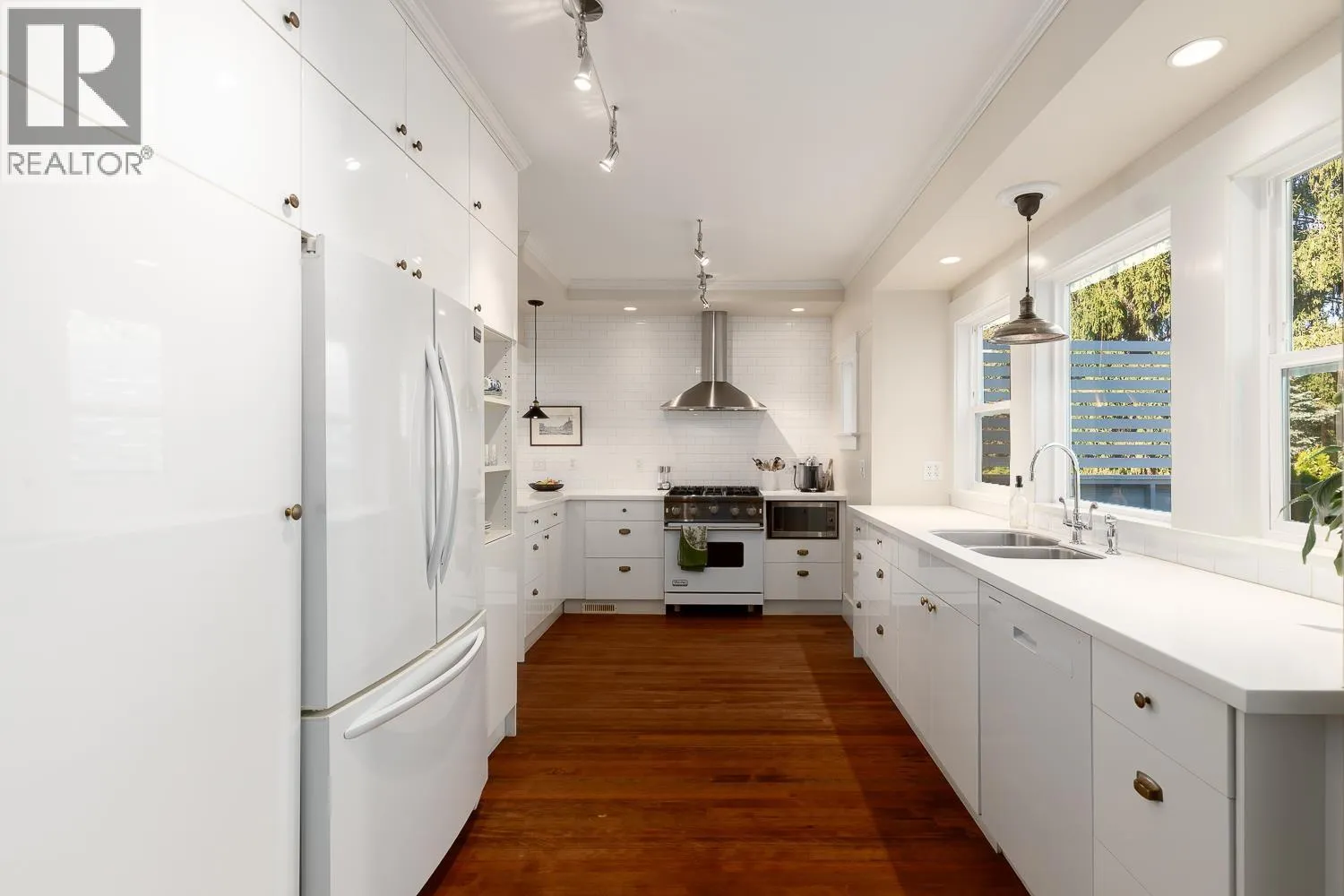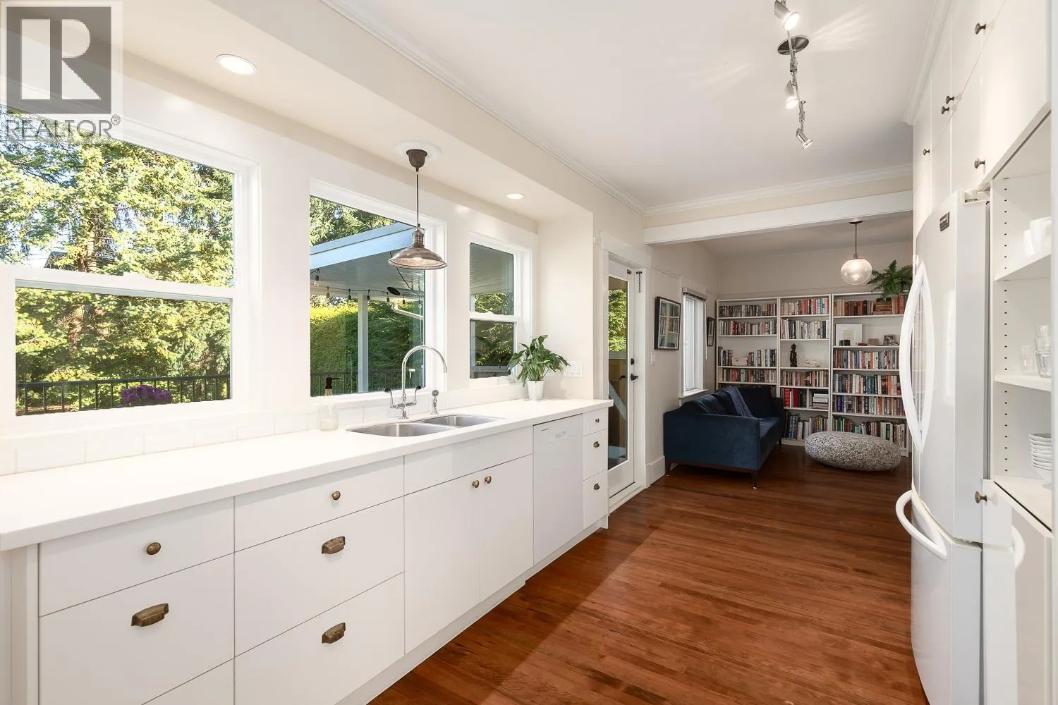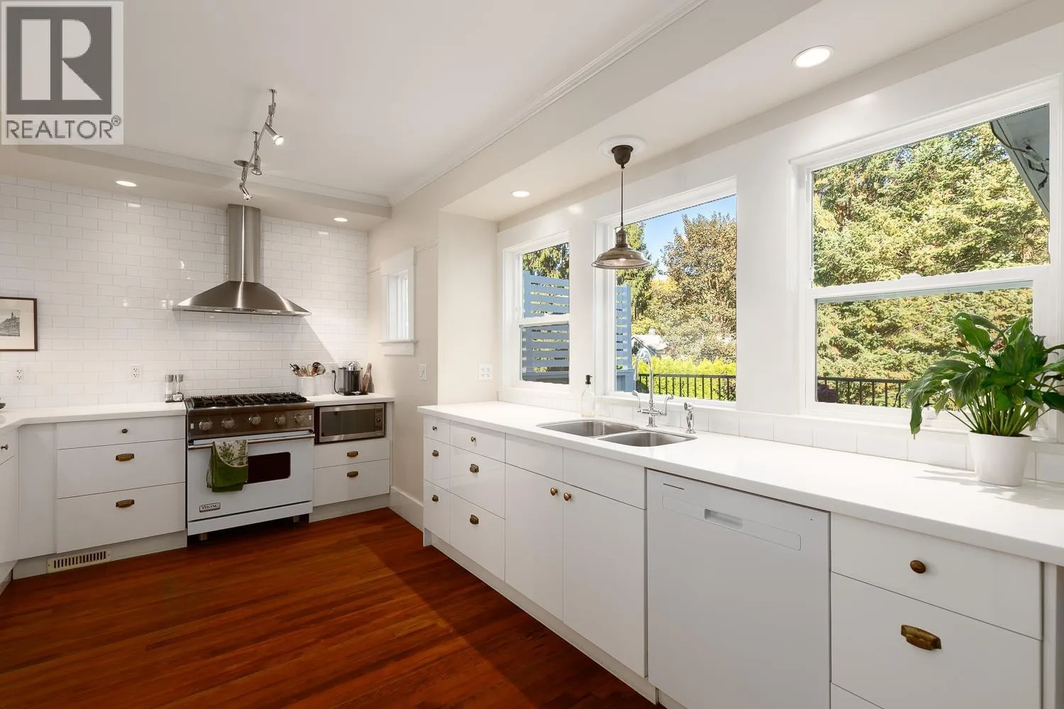 Soak up the sun on the front porch in this spacious 6-bedroom, 4-bath, Arts & Crafts character home with over 3000 square ft of living space. Main floor features include inlaid oak hardwood flooring, wainscotting, built-ins & leaded glass windows in the living/dining room, an original claw-foot tub in the bath, and a spacious bedroom. A huge covered deck off the kitchen leads to a large backyard. Upstairs, you will find three bedrooms and two bathrooms. Home is mechanically updated. Down features a huge recroom, laundry room & 2-bedroom in-law suite featuring its own separate entrance. Great Cedar Cottage location steps to Charles Dickens Annex! Bonus 49.5' x 122' RT -10 zoning. (id:27476)