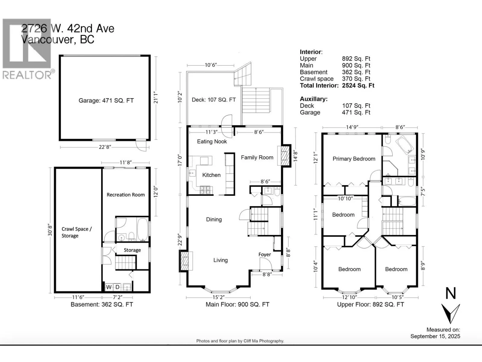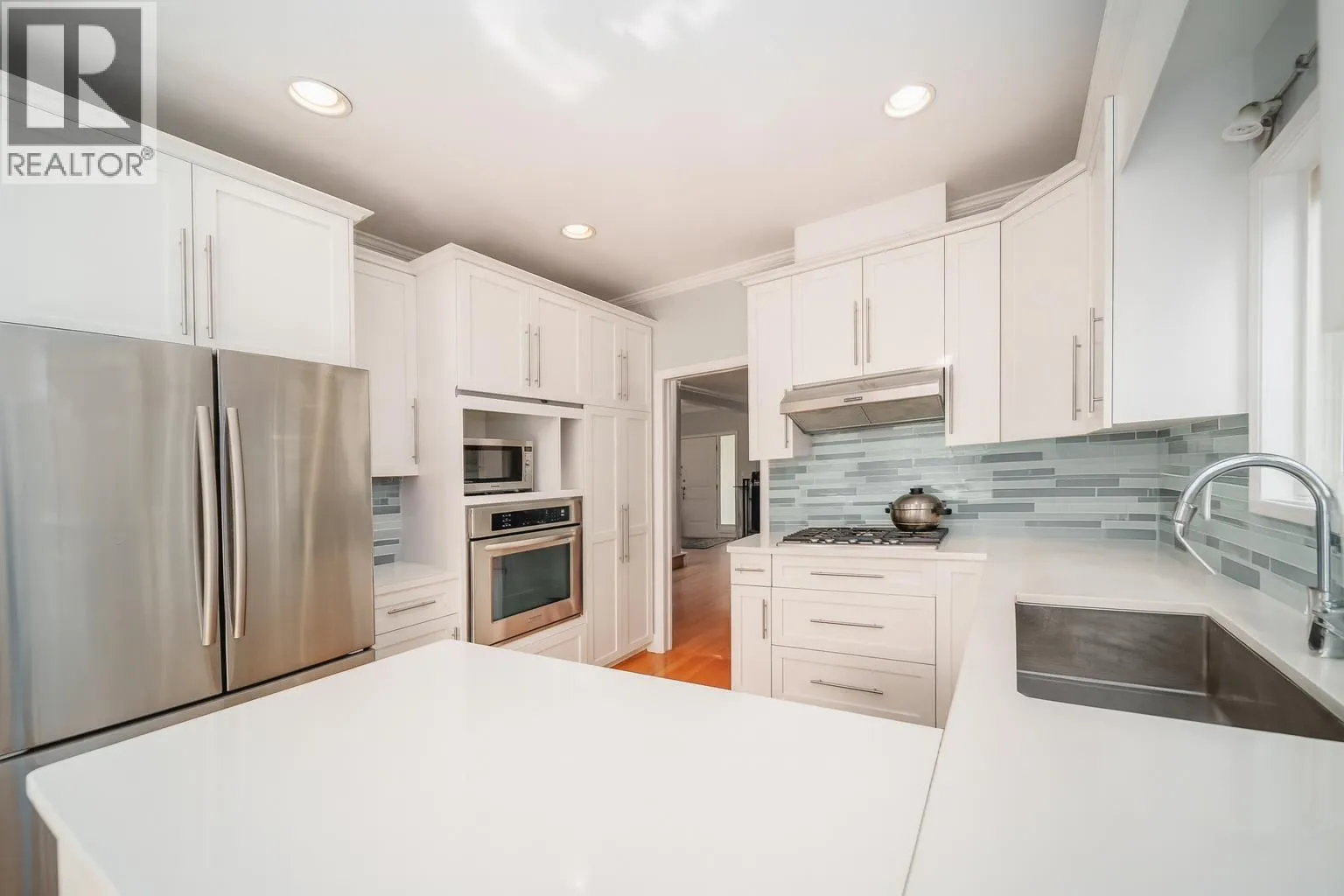 Beautifully updated contemporary family home in Kerrisdale with 4 bedrooms above! This elegant residence features over-height ceilings, rich oak flooring, and a spacious kitchen with eating area that flows seamlessly to the bright family room, large sun-filled deck, and fully fenced (south facing) backyard. The lower level offers a generous rec room, with full bath, easily adaptable to 5th bed or guest suite, plus spacious crawl space for storage. Double detached garage with secure lane access. Located on a quiet tree-lined street in one of Kerrisdale´s most sought-after pockets, just steps to Elm Park, Crofton House, Kerrisdale Elementary, and Point Grey Secondary. Kerrisdale Village is nearby with shops, cafés, and restaurants. Easy access to UBC by transit or bike. Showings by appointment. (id:27476)