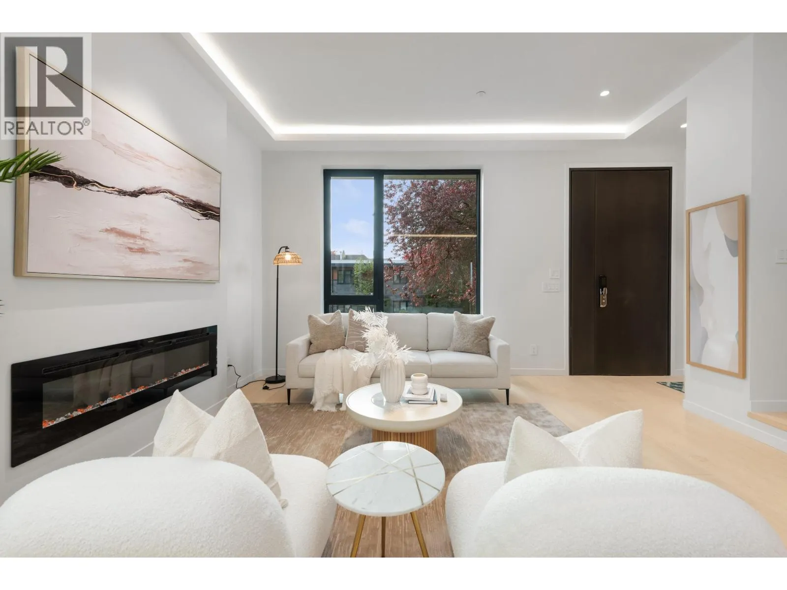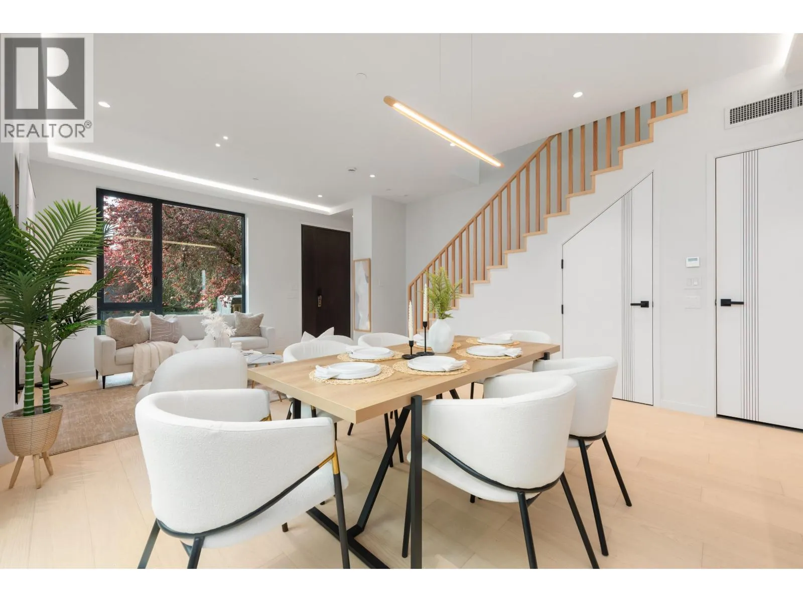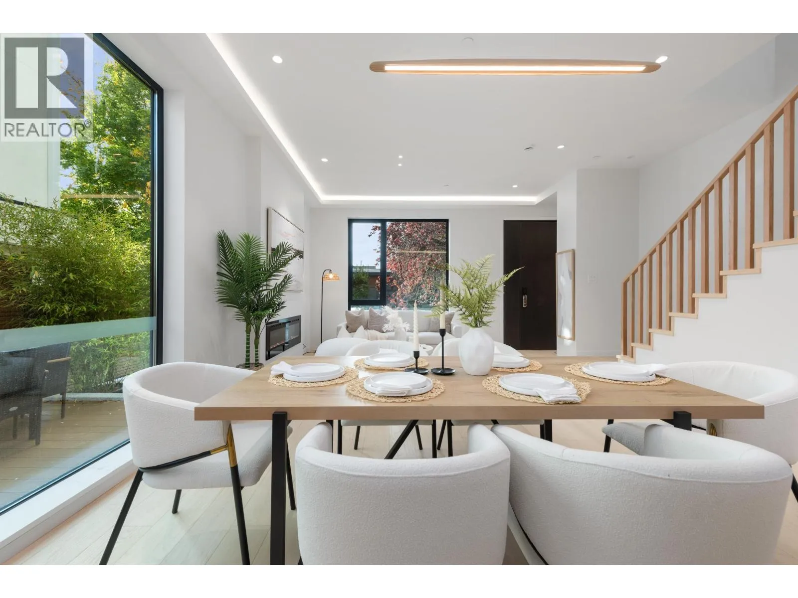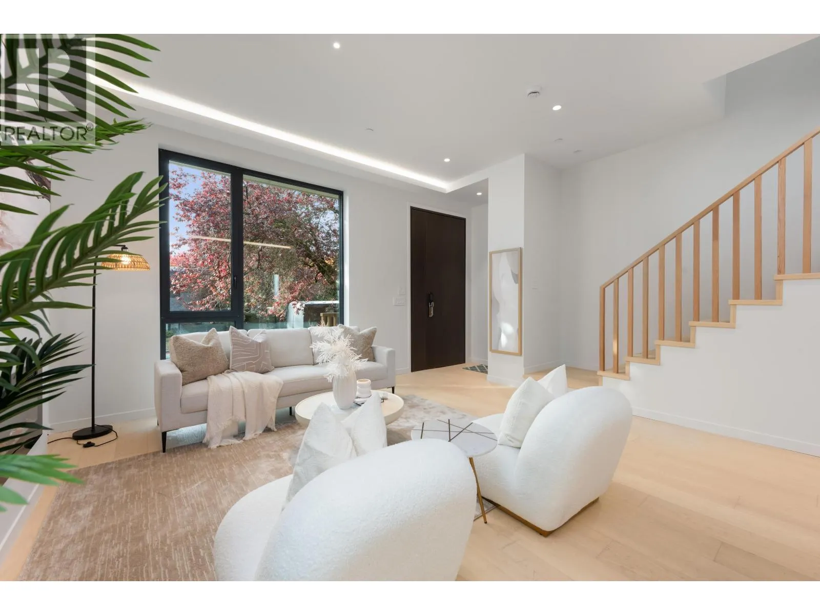 Rare opportunity to own a refined duplex style home in Vancouver´s prestigious Westside. Quietly situated along Adera St near 66th Ave, Adera Arch blends contemporary design with West Coast elegance. This rare duplex 2-level 3 bedroom home has a very spacious 19 ft wide floorplate that is usually only found in larger homes. The wrap around 800 square ft patio is perfect for entertaining. It also features tilt and turn oversized window flooding the unit with natural light, Soaring 10 ft ceiling on main level and 9'8 on the second floor. Gourmet kitchen extra deep sink and matte black hardware, premium Miele and Bertazzoni appliances package, custom cabinetry. For comfort the home has zoned A/C and heating plus electric floor heating on main level and all bathrooms. Ideally located near Dr. R.E. McKechnie Elementary and Magee Secondary, as well as shopping, parks, and transit. Open House Nov 8 & 9, 2-4 PM (id:27476)