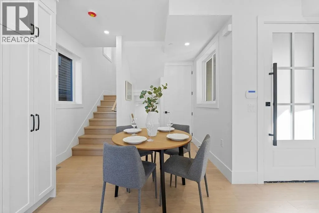 Brand new back half duplex offering over 1,756 sq.ft. of quality living with 3 bedrooms & 3.5 baths. Enjoy an open floor plan with white oak floors, high ceilings, deluxe millwork, and a modern kitchen with Fisher & Paykel integrated appliances. Upstairs features two spacious bedrooms and a full bath, while the top floor primary suite offers stunning mountain & city views. The lower level has its own entrance, perfect for teenagers, guests, or potential rental income. Private fenced yard, sunny exposure, and single-car garage for secure parking or extra storage. Centrally located near schools, shopping & transit. (id:27476)