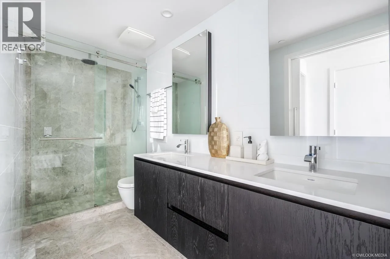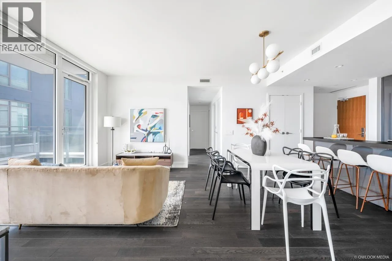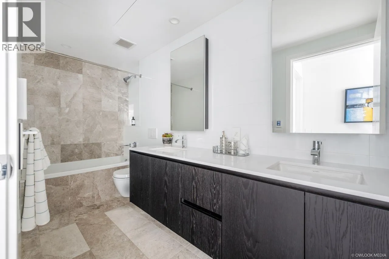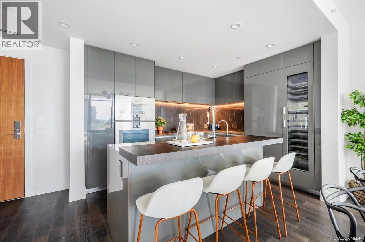 Belpark is the ultimate luxury living. This stunning 1,224 sq. ft. residence features 3 bedrooms, 2 bathrooms, den, and a private balcony. The gourmet kitchen impresses with imported Italian cabinetry, quartz countertops, with built-in Gaggenau appliances and a wine cooler. The primary suite offers a spacious walk-in closet with accent lighting and a luxurious ensuite showcasing radiant heated floors, marble flooring and backsplash. Additional highlights include air conditioning and a gas hookup for BBQ. Residents enjoy premium amenities such as a concierge, games room with mahjong/poker tables and billiards, gym. J.W. Sexsmith Elementary and Sir Winston Churchill Secondary catchment. 2 parking 1 locker. (id:27476)