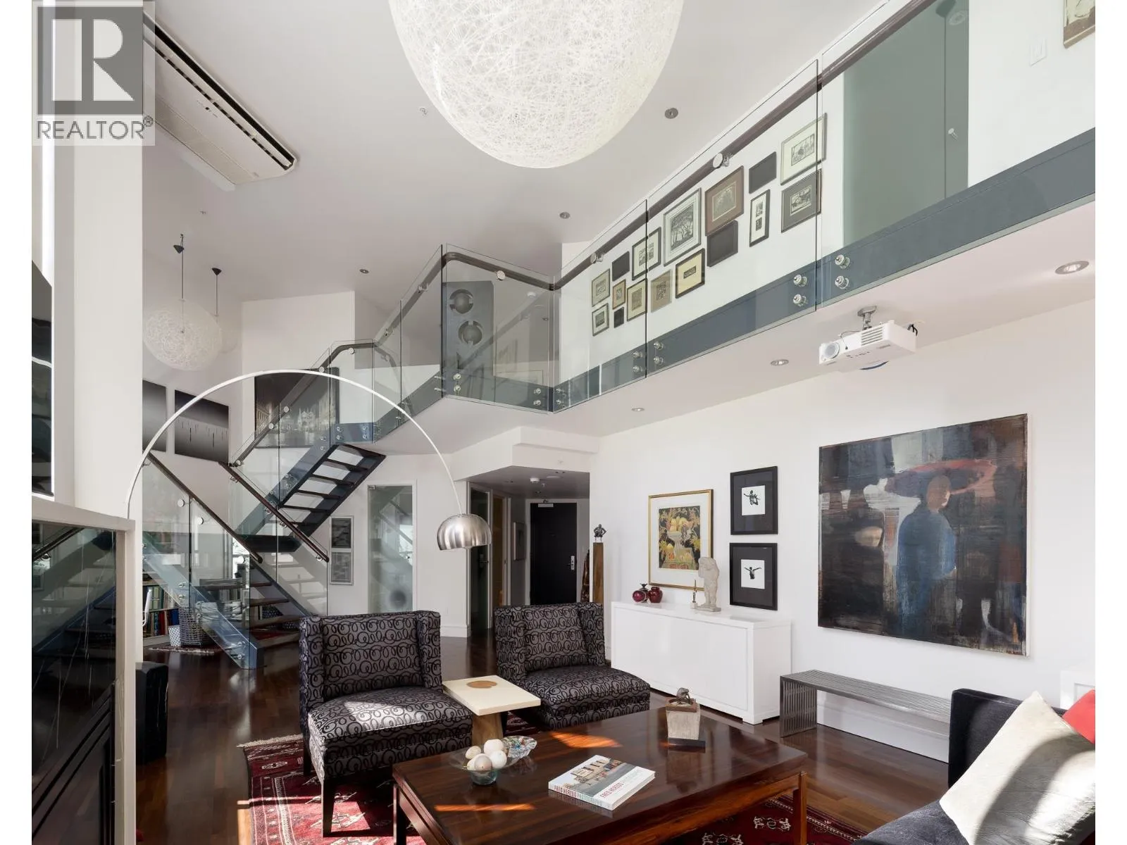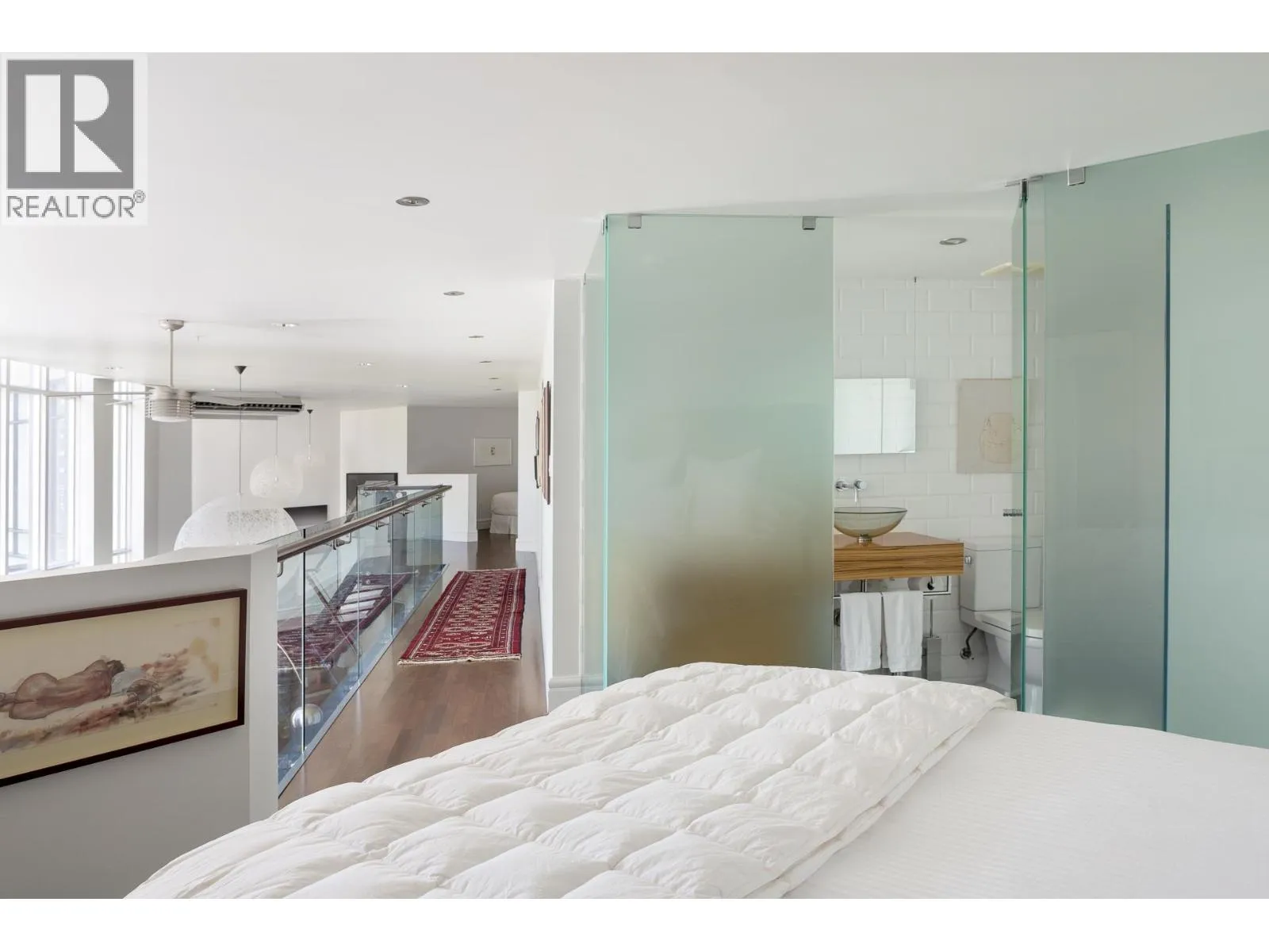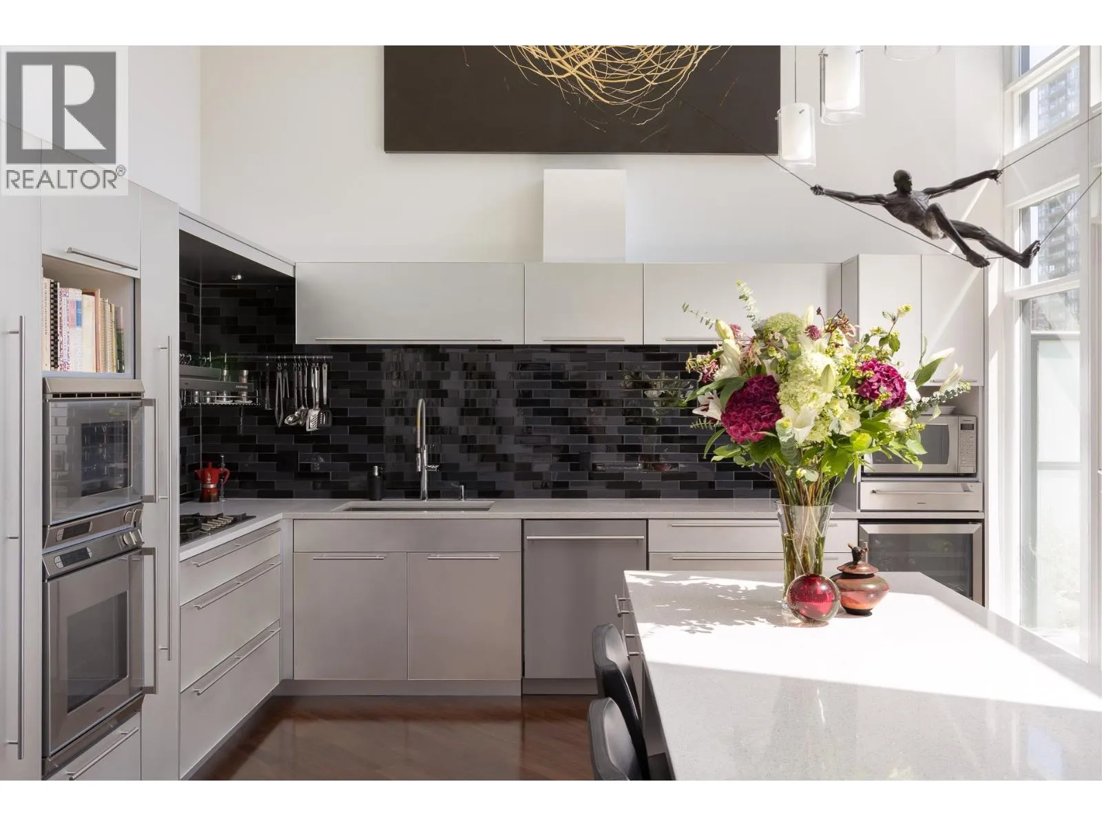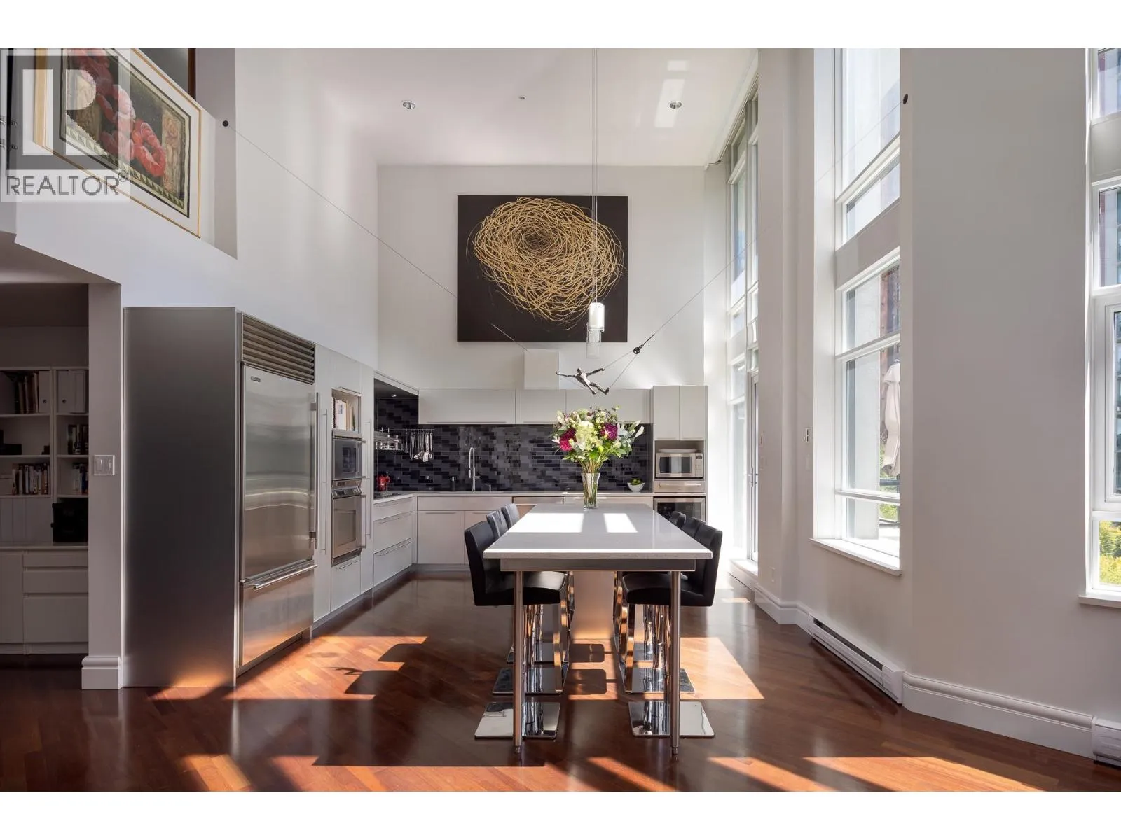 Unique 2,055 square ft Yaletown loft with New York sophistication-two strata lots seamlessly combined by the developer into a bespoke home that couldn´t be recreated today. A 43-ft wall of 17-ft windows with remote-controlled blinds floods the space with light, while solid concrete keeps open rooms feel connected yet private. Elegant yet livable, both a sanctuary for grounding and a showpiece for entertaining. A/C, dual ensuites and a dramatic kitchen complete the picture, with 2 side-by-side parking spots and both private storage room AND locker. Boutique 51-home Tribeca Lofts offers recent exterior upgrades and a meticulous strata with a walk-to-everything location by the shops and restaurants of Mainland and Hamilton streets. NO OPEN HOUSE (id:27476)