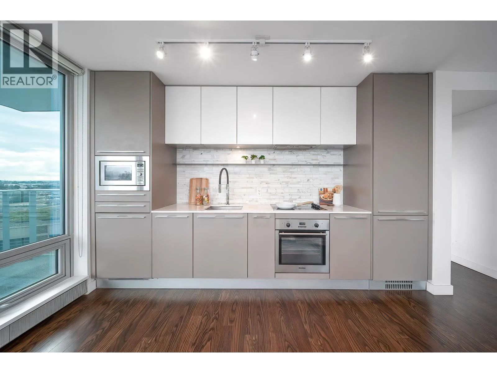Welcome to your new home at MC2, an award-winning development by lntracorp! This 2-bedroom, 2-bathroom residence offers 760 square ft of modern living space with a walk-out balcony and an energy-efficient passive heating and cooling system for year-round comfort. Designed by renowned architect James Cheng, the interiors feature Blomberg gourmet appliances, Caesarstone countertops, and built-in closets for maximum functionality. Enjoy premium amenities, including a 24-hour concierge, fully-equipped gym, meeting rooms, and a rooftop deck. Ideally located just steps from the Canada Line Skytrain, bus loop, T&T Supermarket, Cineplex, and the shops and restaurants of Marine Gateway. Includes 1 parking space and 1 storage locker. (id:27476)
