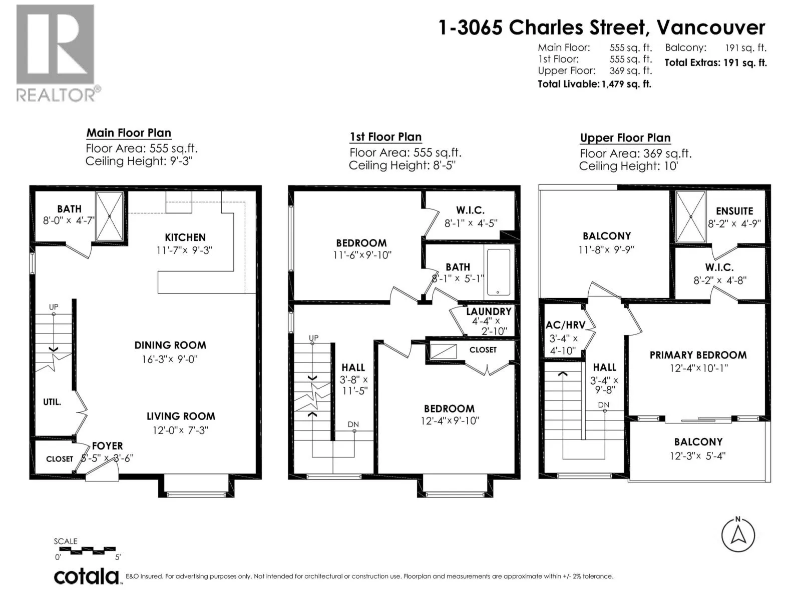 BRAND NEW 3-level FRONT UNIT in a quality-built multiplex by an experienced builder, located on a wide street in desirable Renfrew East Vancouver. Thoughtfully designed with high-end finishes and covered by 2-5-10 new home warranty. Main floor features a spacious living room with custom cabinetry, dining area, 2-tone kitchen with s/s appliances, and a FULL BATHROOM. Upstairs offers 2 generous bedrooms + full bath. Top floor features a private primary bedroom with walk-in closet, ensuite, and 2 large balconies for summer enjoyment. Includes A/C, security cameras, quartz counters, and custom tile work. Quick routes to highways and downtown. Don´t miss this one-call your realtor today! OPEN HOUSE: SATURDAY, NOVEMBER 15th ( 1-3PM). (id:27476)