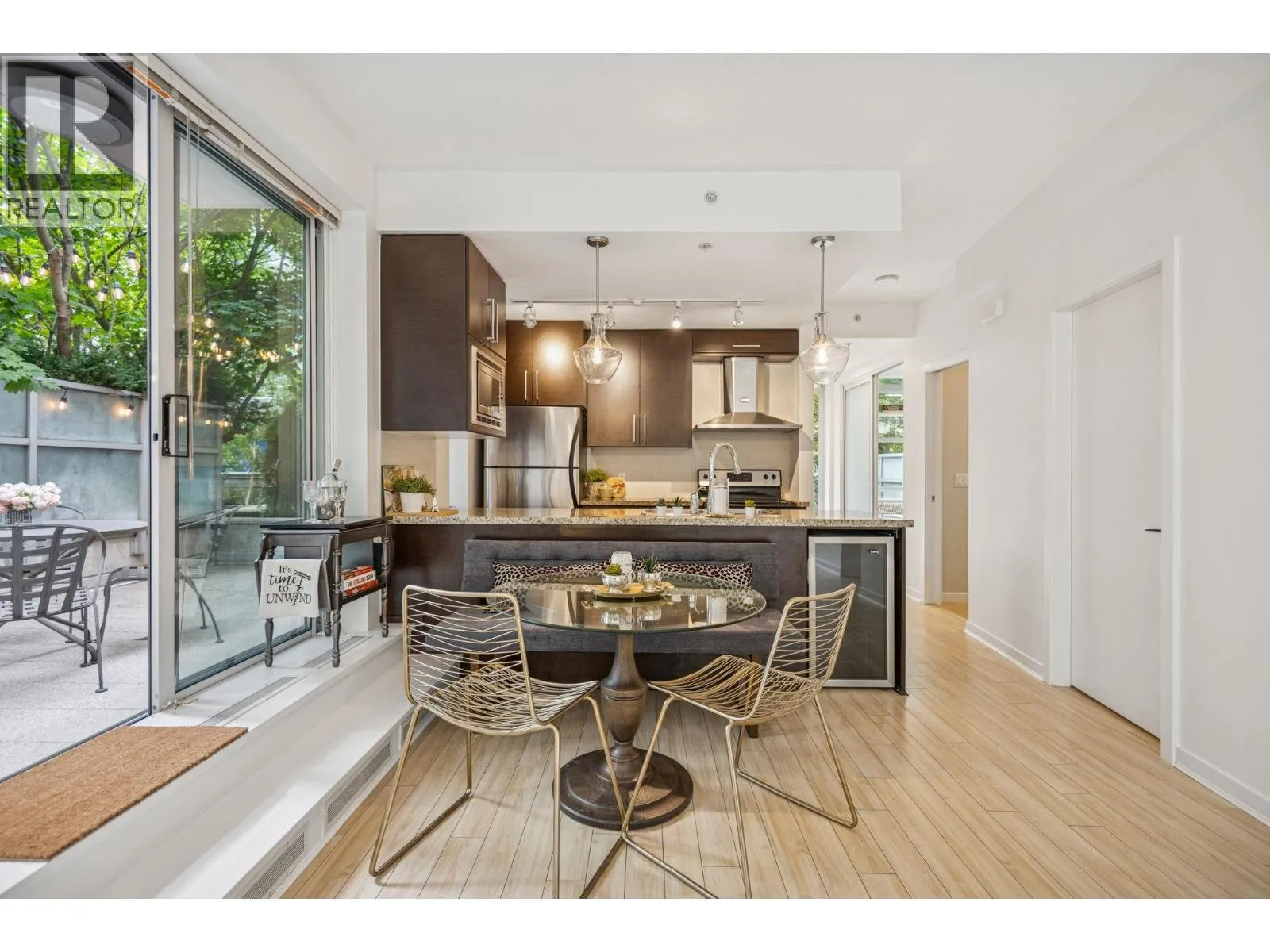 One of a kind townhouse situated on a beautifully landscaped & secure second floor park amid the Espana Complex. Enjoy over 1500sqft private & tranquil outdoor spaces, nestled between the magnolia trees & canals. This large 2 bedroom + den + office, 3 bath home boasts 4 patios plus a huge rooftop deck. Granite countertops; stainless steel appliances & wine cooler. Resort-like amenities: large gym, indoor pool, hot tub, theatre room, meetings rooms, library, party rooms, playroom & concierge. All of Vancouver at your fingertips: Grocery, theatres, concerts, hockey & shopping are steps away. Pets and rentals are welcome! 2 parking & 2 large storage lockers. These homes rarely come available, come see for yourself! (id:27476)