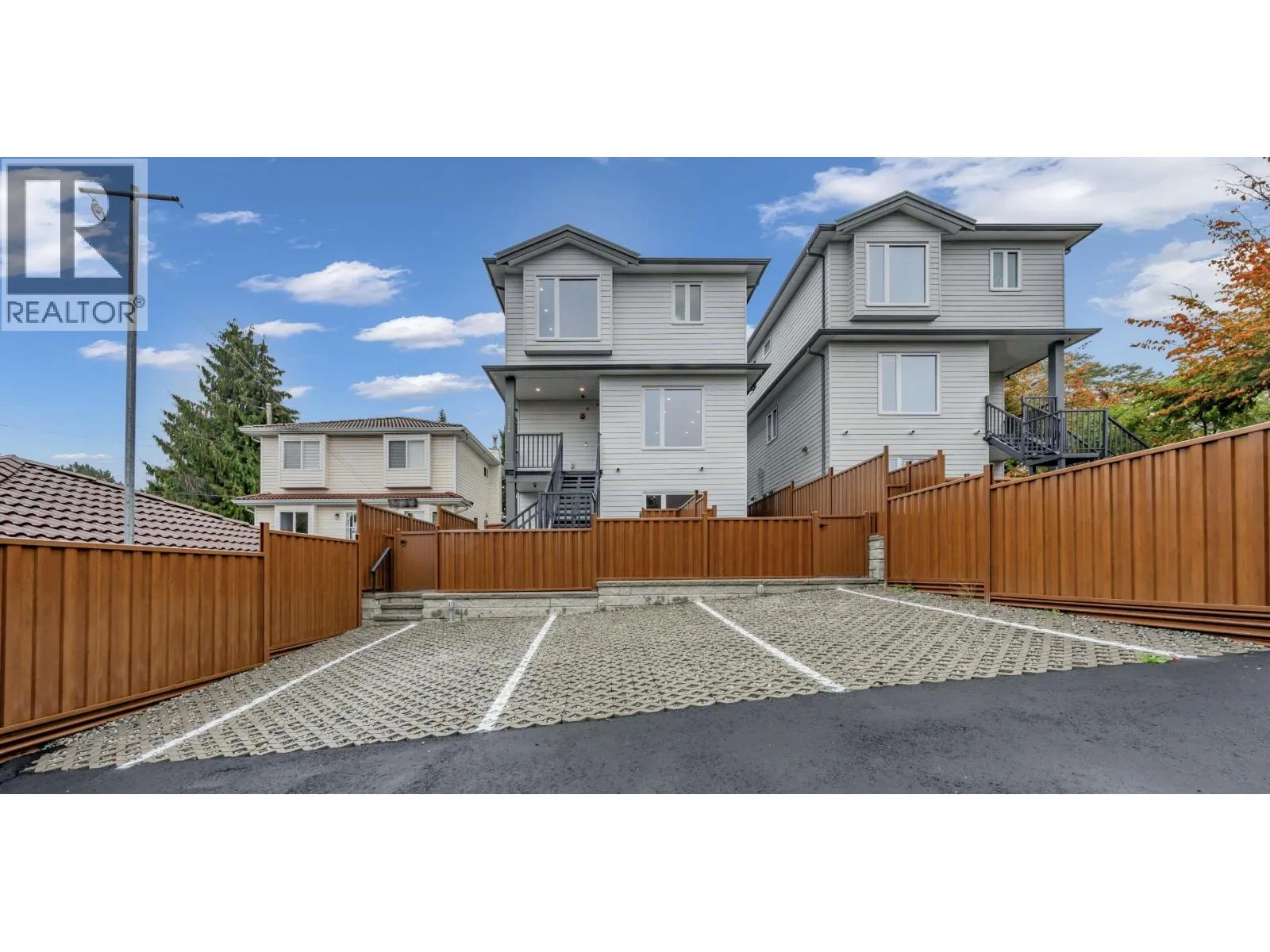 NO STRATA FEE! Modern back-unit home in a brand-new triplex in Joyce-Collingwood. This 2-storey home features 3 spacious bedrooms and 3 full baths, with views on the upper level and lots of natural light throughout. Enjoy a stylish living room with custom TV cabinet, sleek kitchen with S/S appliances and large island, plus A/C, HRV, heat pump, security system, EV-ready parking, and a private fenced backyard. Includes ensuite laundry, ample storage, and 2/5/10 new home warranty. Convenient location near schools, parks, and SkyTrain stations. Built by a reputable builder. Easy to show! OPEN HOUSE Saturday Nov 15. 11:30-1pm (id:27476)