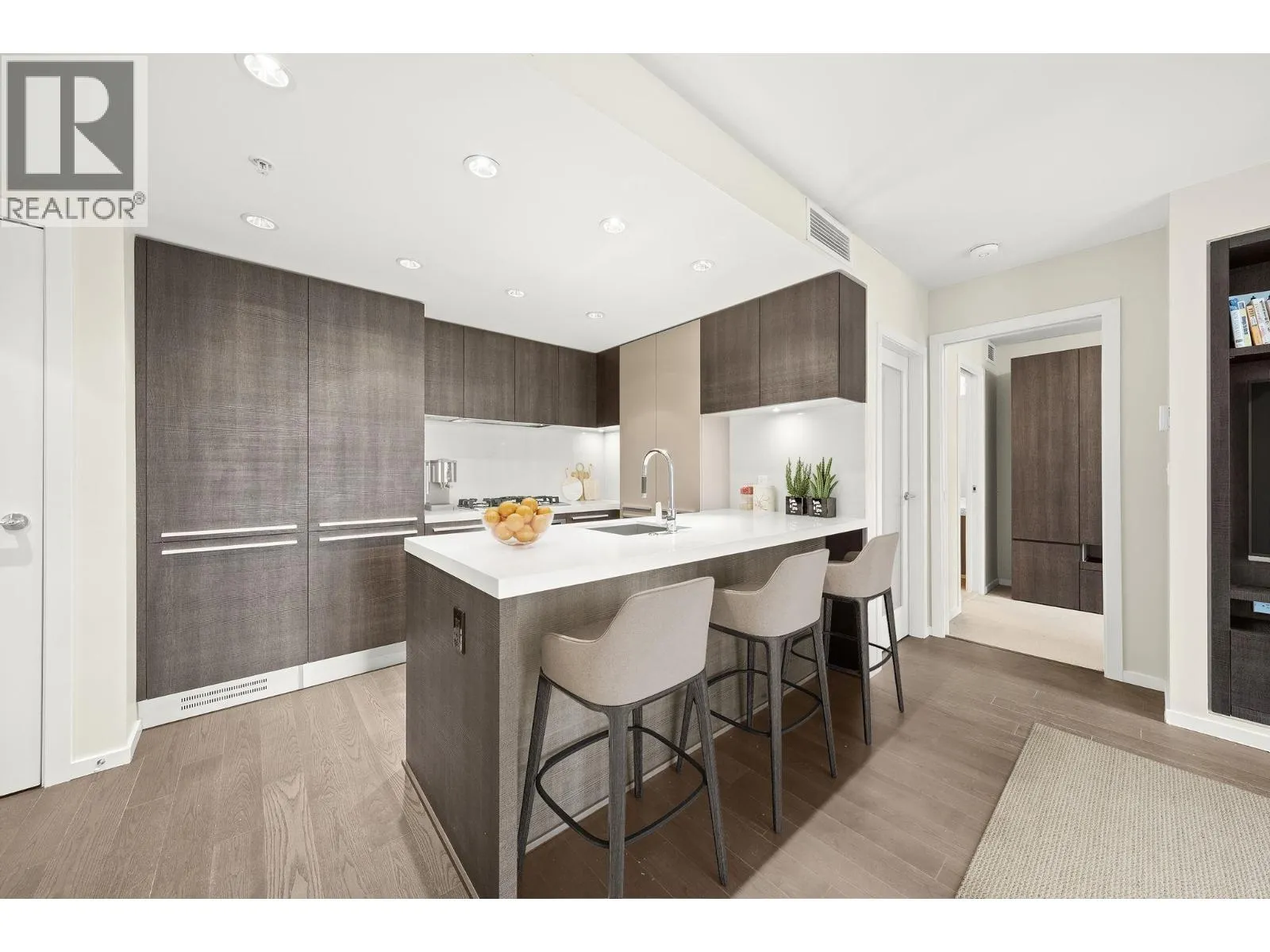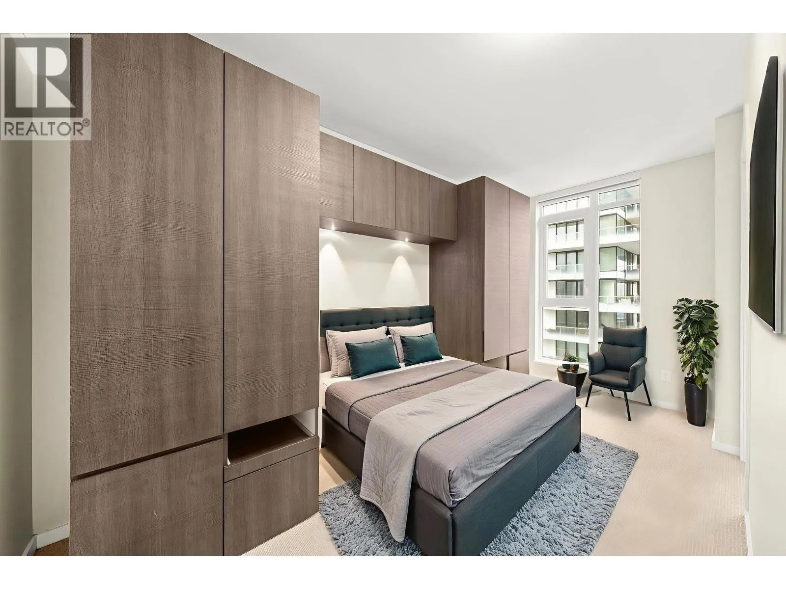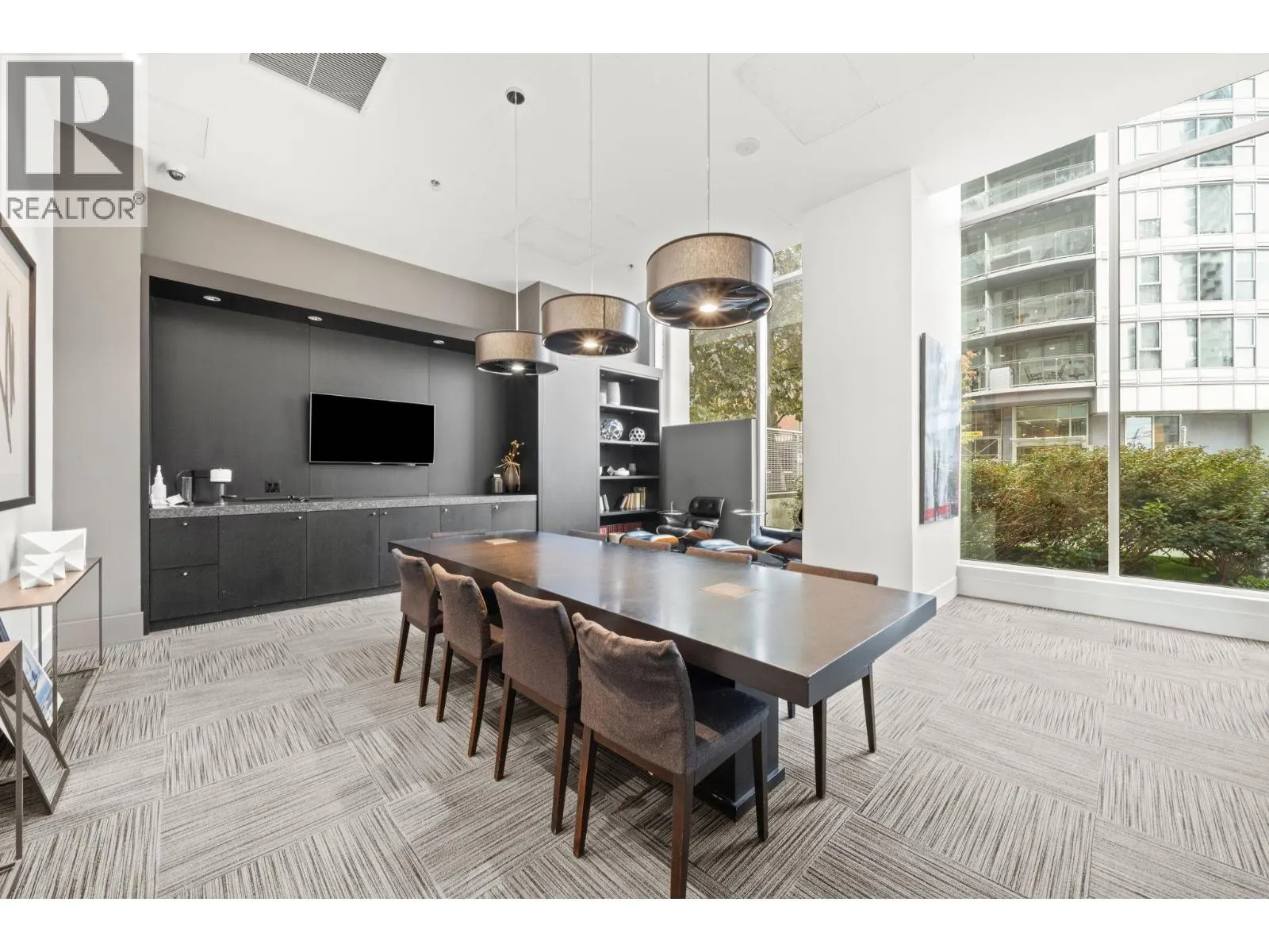 Welcome to Maddox by renowned local developer Cressey. This thoughtfully designed 1-bedroom + den home offers an efficient layout with the signature Cressey KitchenTM, integrated appliances, quartz countertops, built-in bedroom cabinetry, air conditioning, and engineered hardwood floors. Residents enjoy a state-of-the-art fitness centre, steam room, meeting room, and 24-hour concierge. Located steps to Yaletown, the Seawall, and downtown´s best dining and shopping. Includes 1 parking stall and 1 storage locker-an ideal home for professionals or investors seeking quality and convenience in downtown Vancouver. Please schedule your viewing. (id:27476)